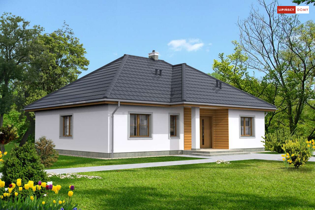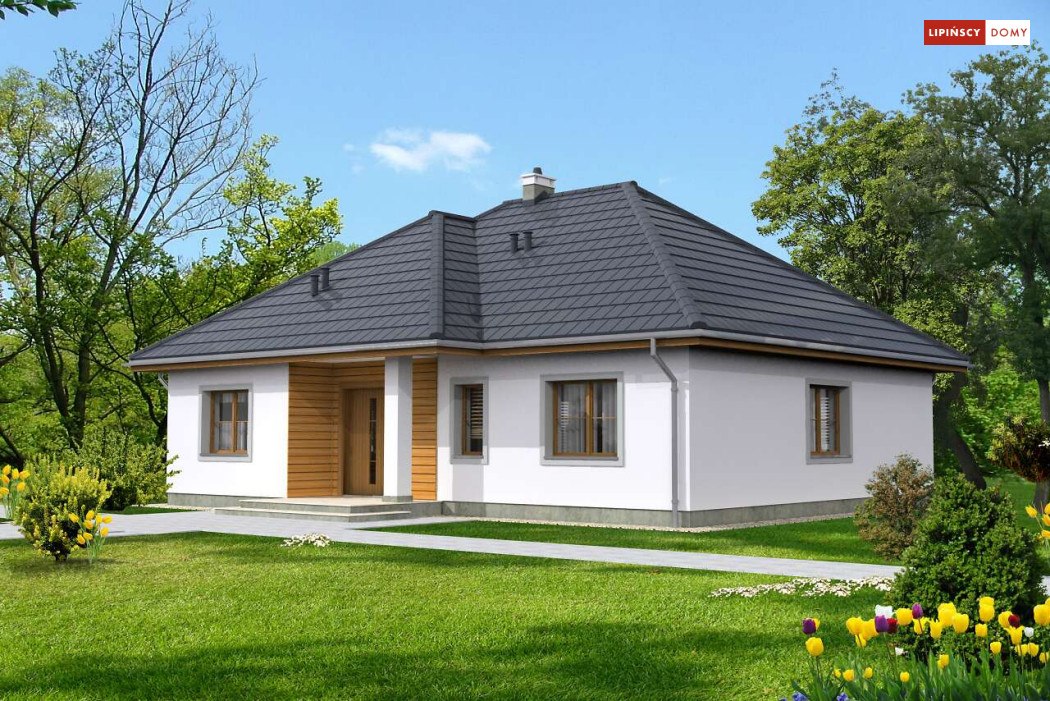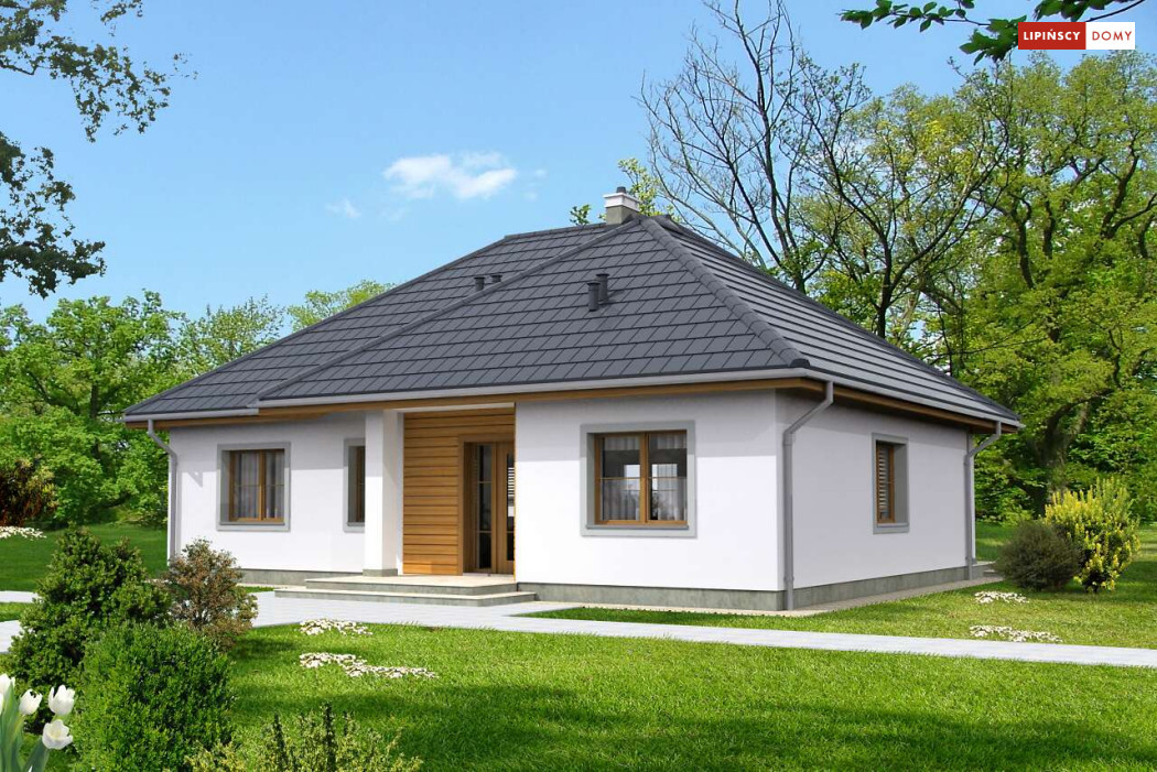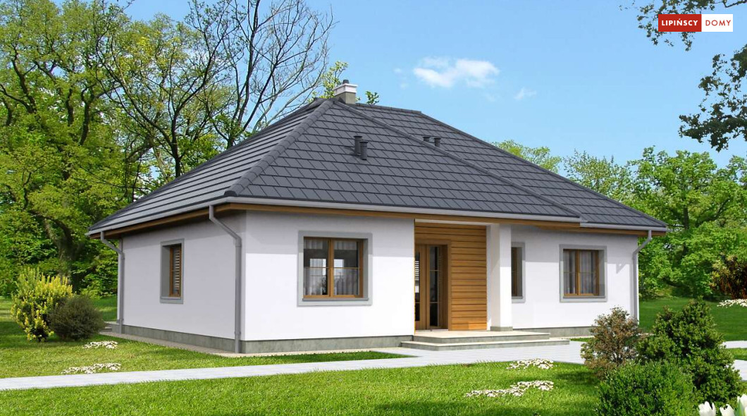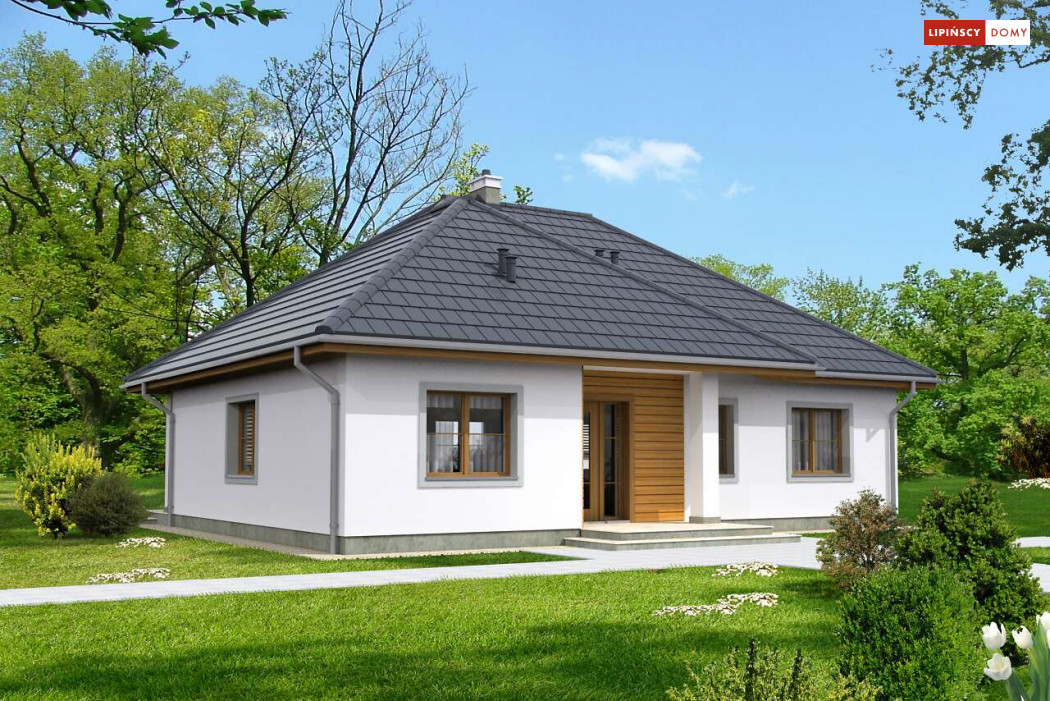 Kolejna wersja niedużego, wygodnego domu parterowego, tym razem z 35 stopniowym kątem nachylenia dachu, co pozwoliło wygospodarować nieco miejsca na stryszek na poddaszu. Funkcjonalnie dom się nie zmienił - wnętrze kryje obszerny salon z kominkiem, połączony z kuchnią, cztery sypialnie, łazienkę, wc i pomieszczenie gospodarcze. Ozdobą domu jest częściowo zadaszony taras, na który można wyjść z salonu przez duże, oszklone drzwi. Prosta bryła i konstrukcja gwarantują niewysokie koszty budowy. W projekcie przewidziano ogrzewanie kotłem na gaz. Możliwa jest zmiana ogrzewania na pompę ciepła.