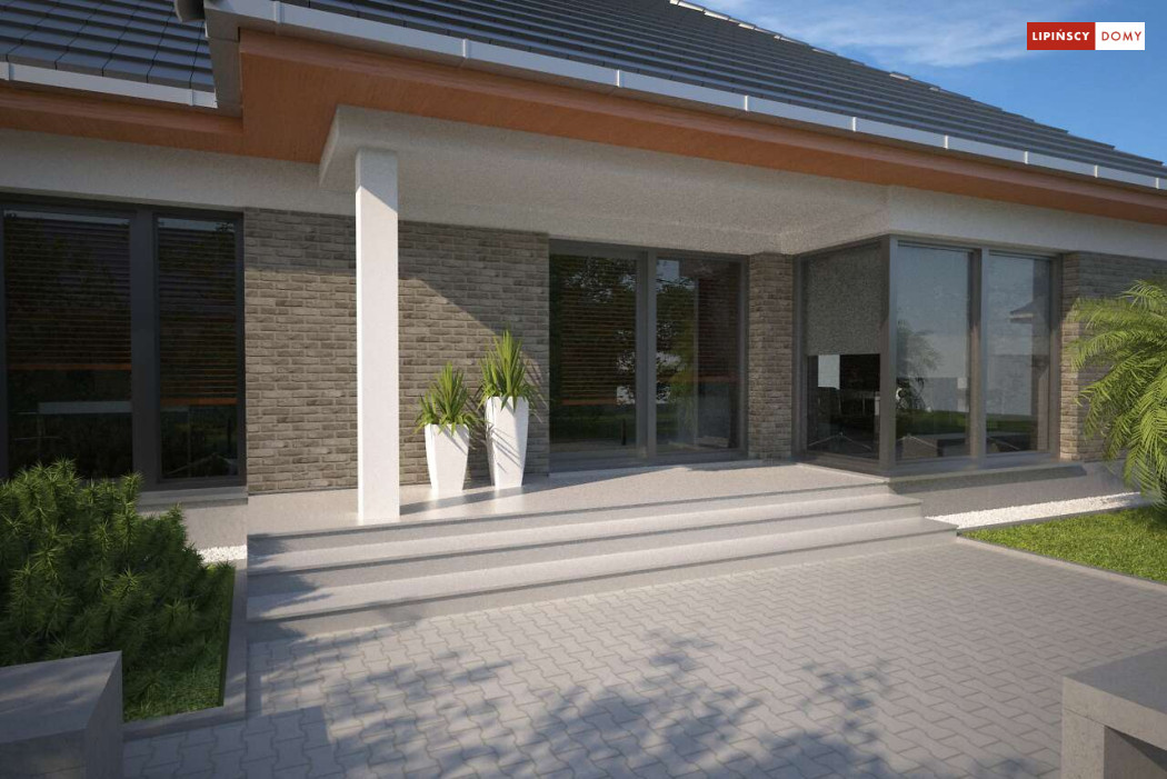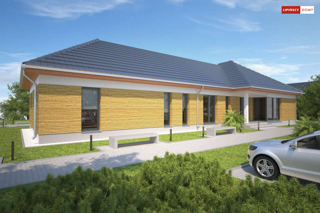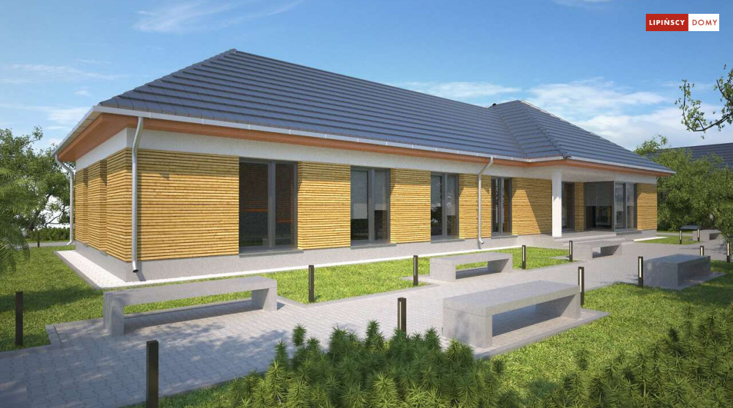 Budynek w standardzie energooszczędnym, przeznaczony na działalność biurową lub usługową. Przestrzeń podzielona została na część, gdzie można zlokalizować recepcję z poczekalnią, dwie większe sale biurowe, salę konferencyjną, cztery gabinety, zaplecze gospodarcze, archiwum, pomieszczenie socjalne (kuchnię), łazienkę i toaletę. Uwagę zwraca atrakcyjna bryła, o nowoczesnym rysie, z drewnianymi elementami elewacji. W projekcie przewidziano ogrzewanie kotłem na gaz. Możliwa jest zmiana ogrzewania na pompę ciepła.