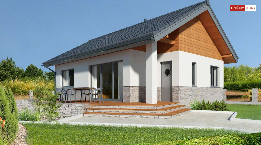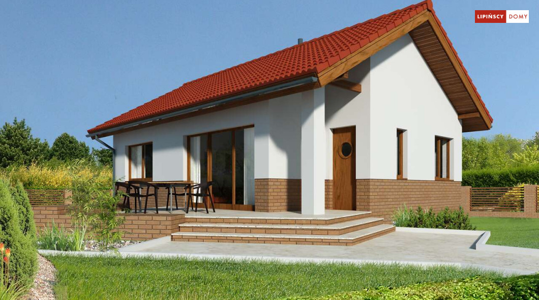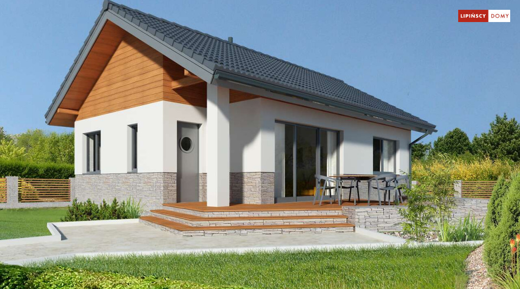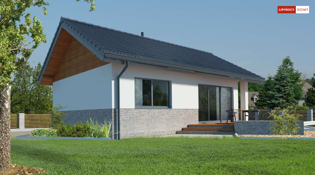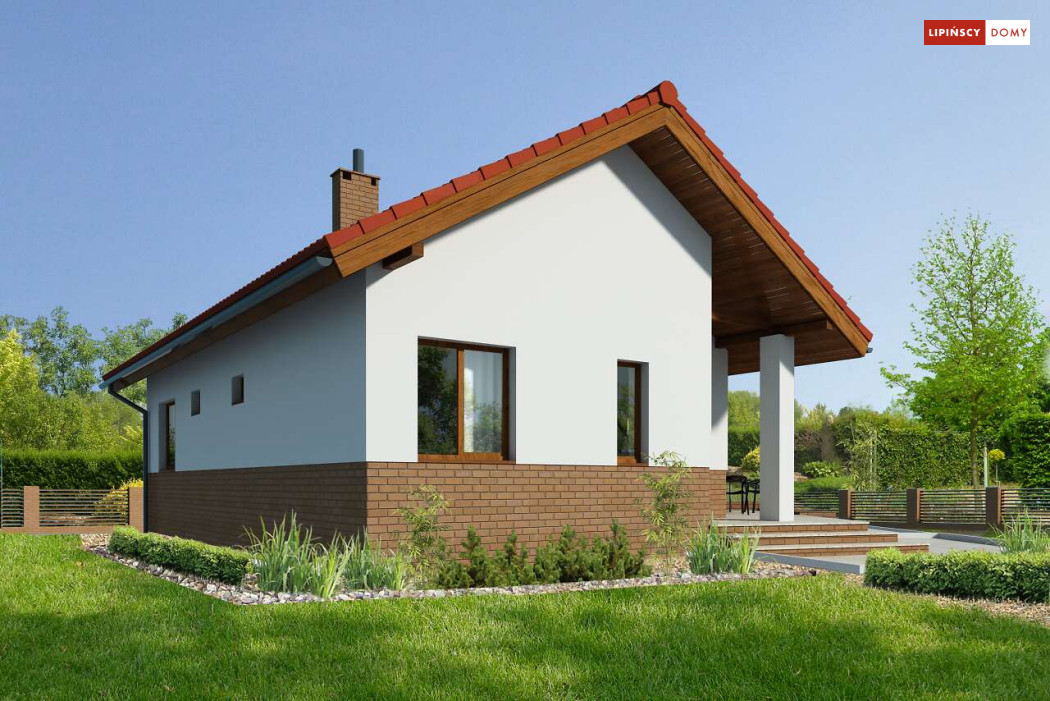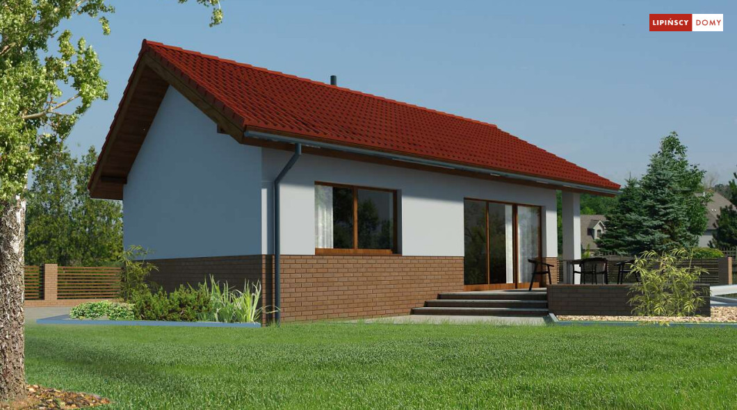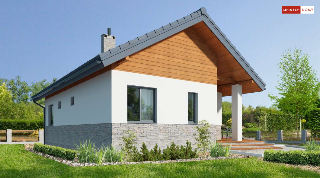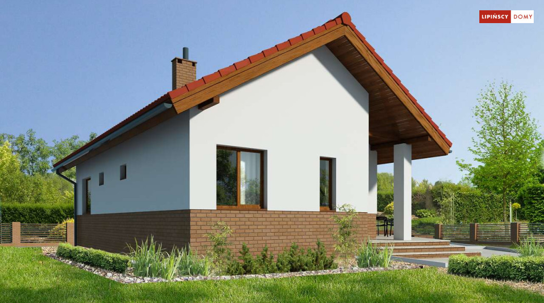 Kolejna odsłona popularnego projektu niewielkiego domku parterowego Lucca, bazująca na wersji B, w której okna narożne zastąpiono oknami zwykłymi. Ten mały, parterowy dom to doskonała propozycja dla Inwestorów, szukających domu taniego w budowie, a jednocześnie o funkcjonalnie zaplanowanym wnętrzu. Mieszkańcy mają do dyspozycji salon z kominkiem, dwie sypialnie, kuchnię, łazienkę i pomieszczenie gospodarcze. Ozdobą domu jest taras, na który można wyjść z salonu. Ciekawie zaaranżowane zadaszone wejście jest nie tylko praktyczne, ale również zdobi budynek.
