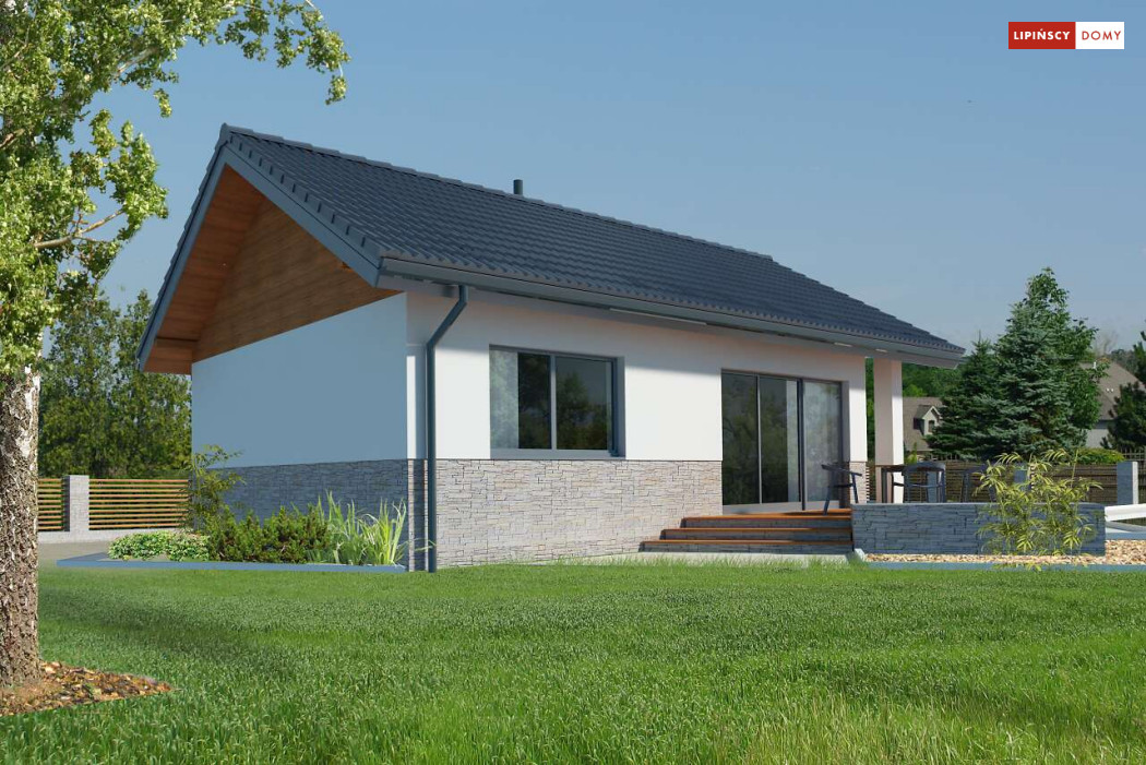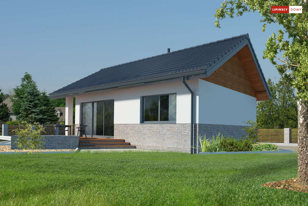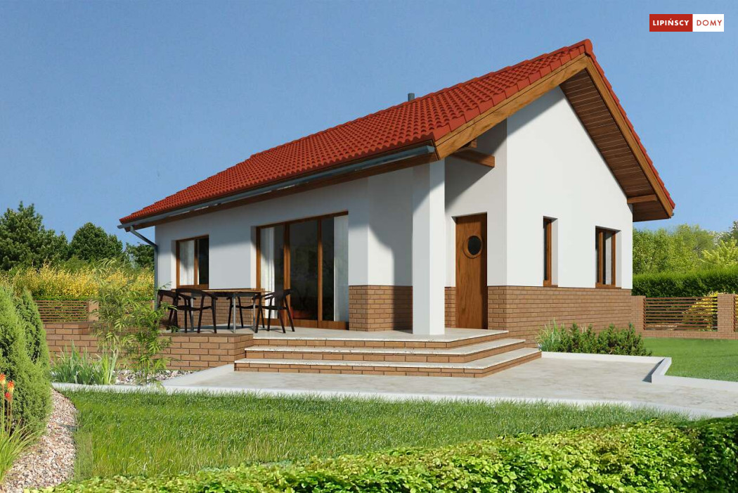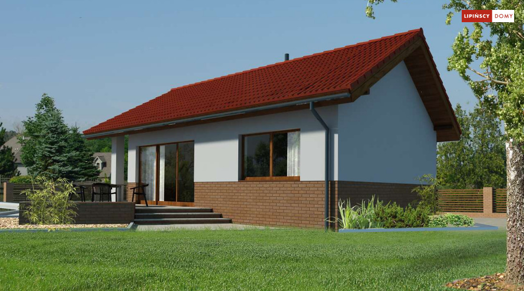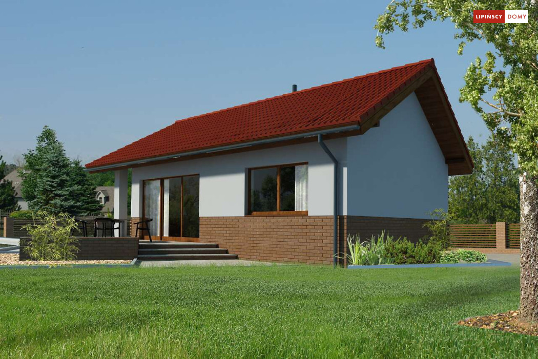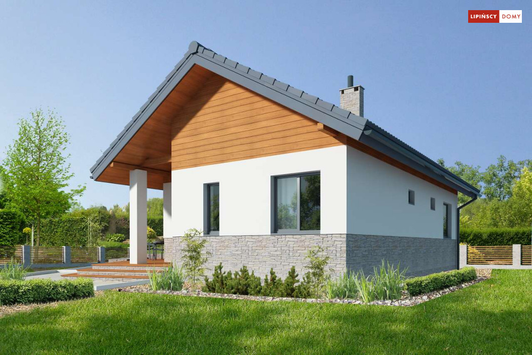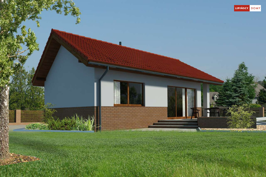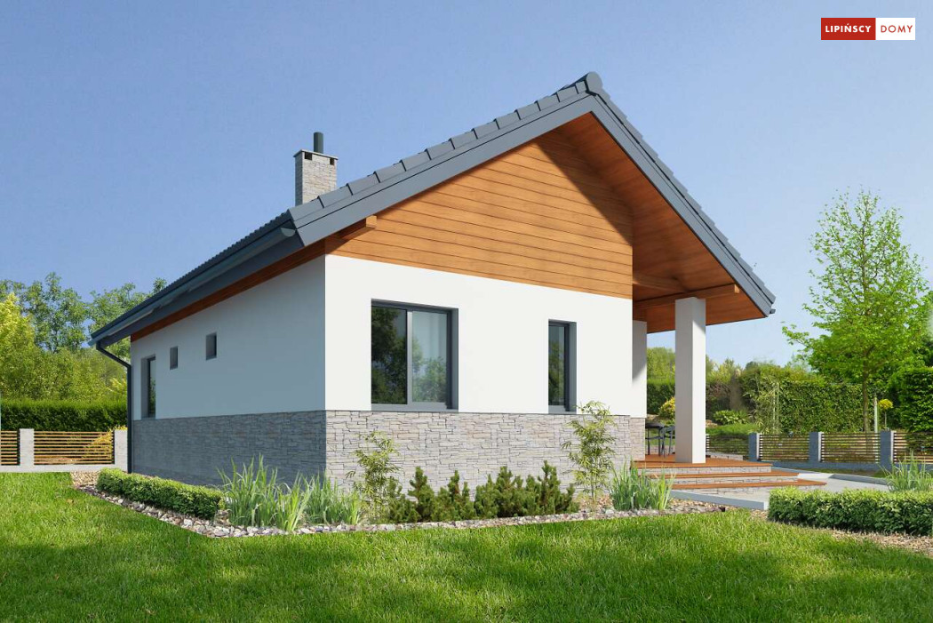 Kolejna odsłona popularnego projektu niewielkiego domku parterowego Lucca, bazująca na wersji B, w której okna narożne zastąpiono oknami zwykłymi. Ten mały, parterowy dom to doskonała propozycja dla Inwestorów, szukających domu taniego w budowie, a jednocześnie o funkcjonalnie zaplanowanym wnętrzu. Mieszkańcy mają do dyspozycji salon z kominkiem, dwie sypialnie, kuchnię, łazienkę i pomieszczenie gospodarcze. Ozdobą domu jest taras, na który można wyjść z salonu. Ciekawie zaaranżowane zadaszone wejście jest nie tylko praktyczne, ale również zdobi budynek.