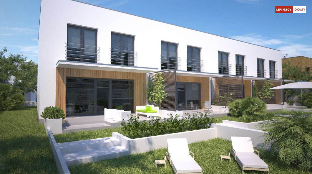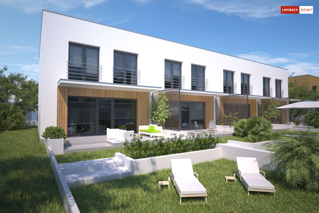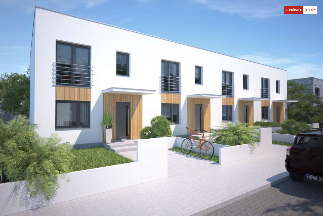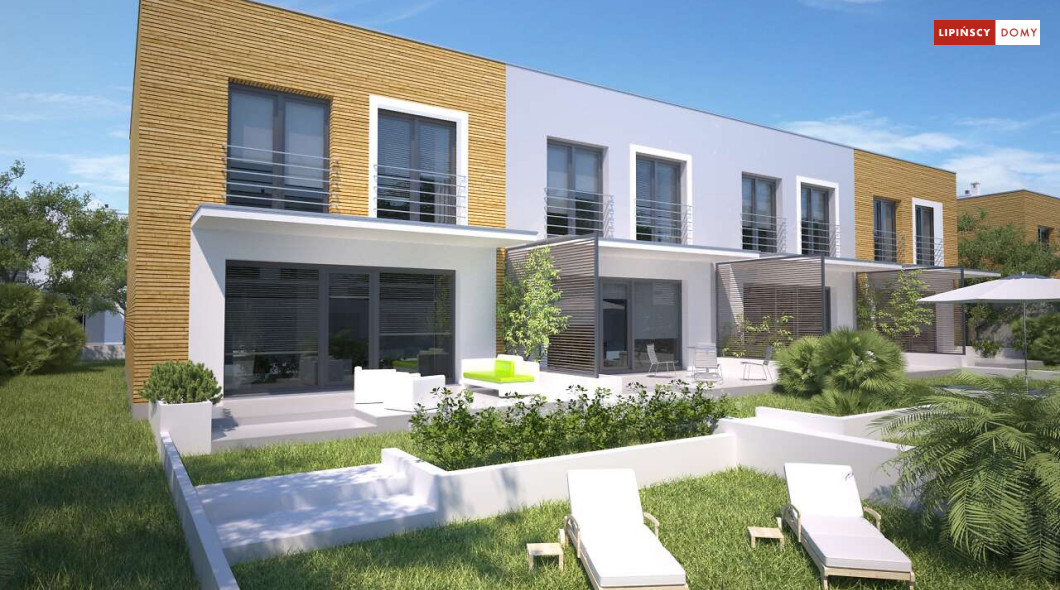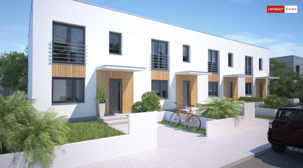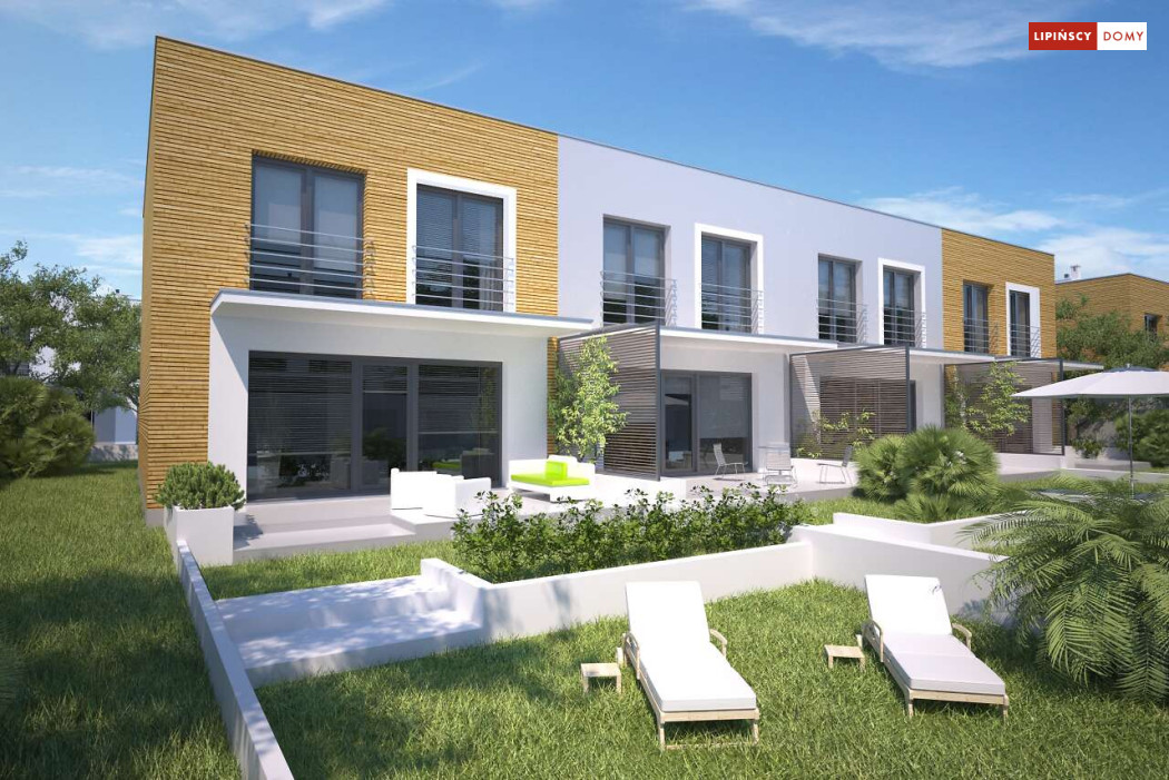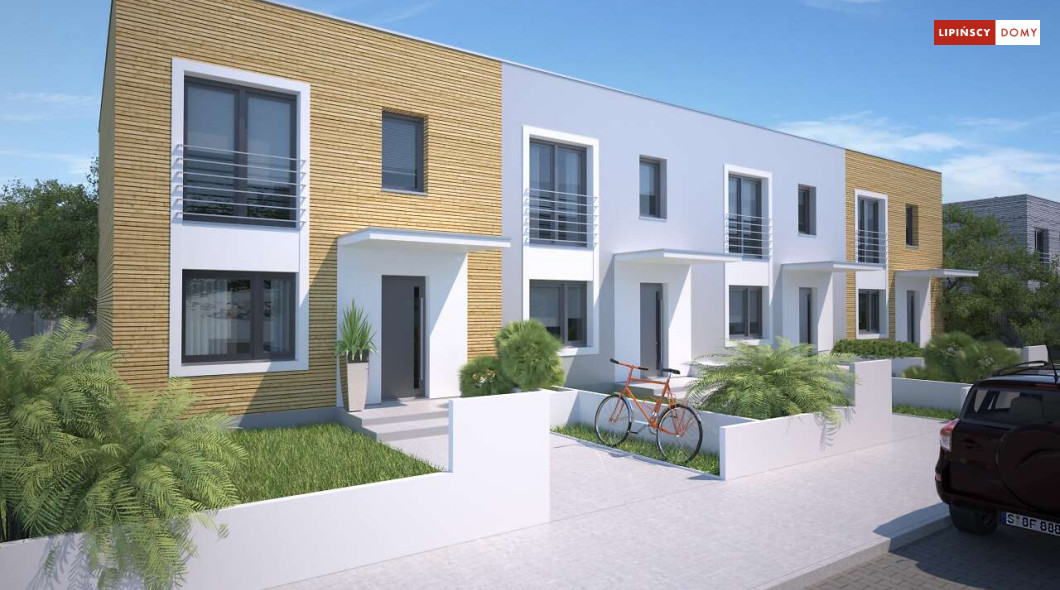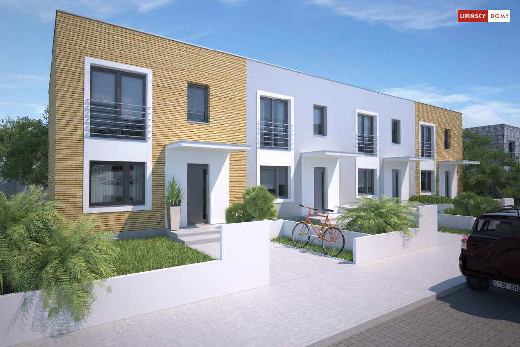 Nowoczesny dom w zabudowie szeregowej, w dwóch opcjach – z płaskim dachem lub z dachem dwuspadowym (Clermont LMS24). Parter stanowi część wspólną. Salon z kuchnią, jadalnią oraz kącikiem do pracy. Niewielka łazienka z piecem c.o. znajduje się tuż przy wejściu. Na poddaszu, w strefie nocnej, wydzielono trzy sypialnie oraz wygodną łazienkę. Klatkę schodową doświetla świetlik tunelowy. Prosta bryła, funkcjonalnie rozwiązane wnętrze korzystnie wpływają na koszty budowy. Do projektu można dobrać garaż jednostanowiskowy.