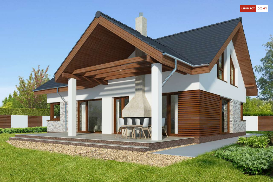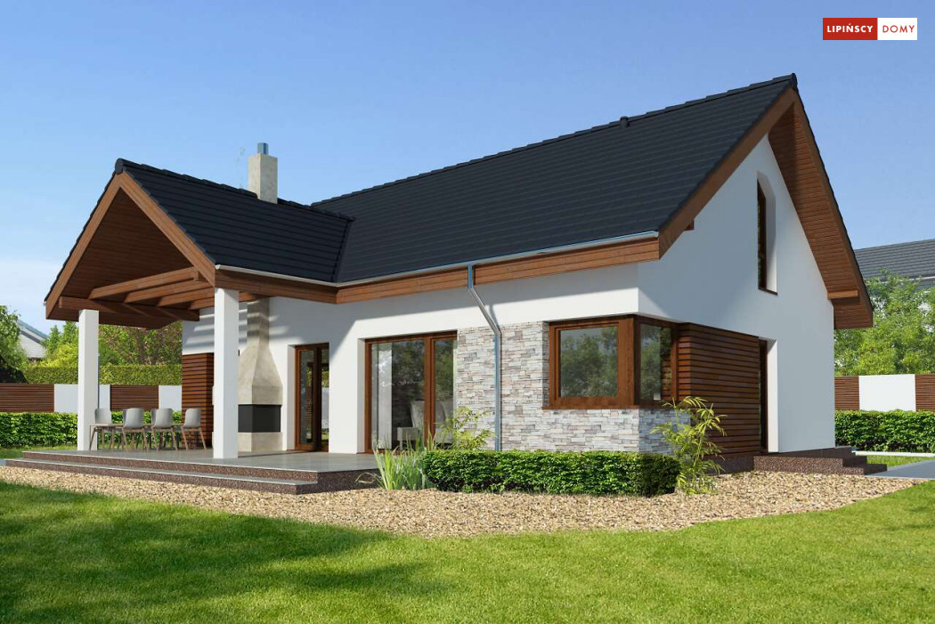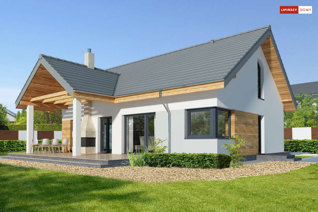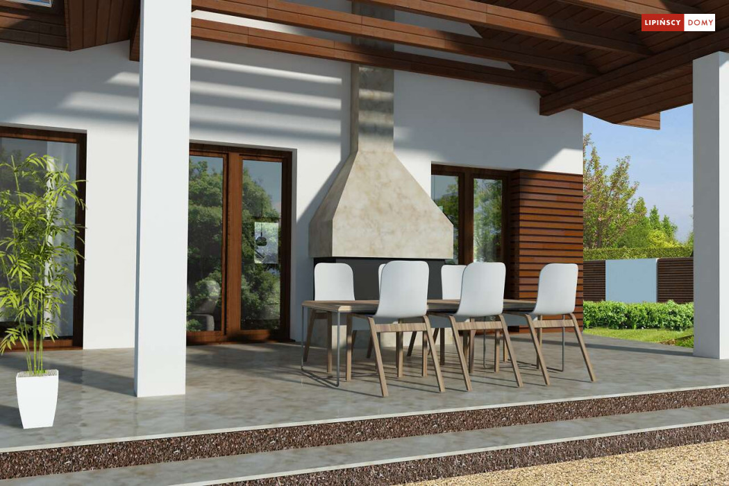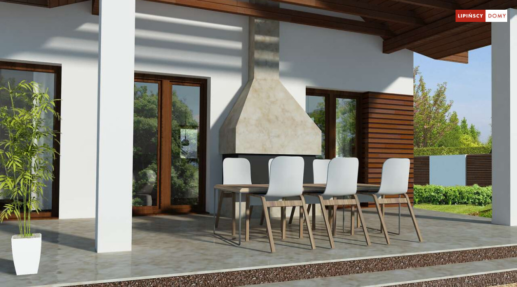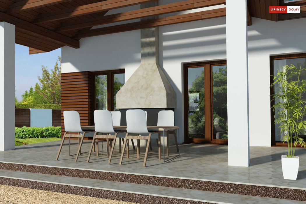 Parterowy dom pasywny, o zwartej bryle i przemyślanym układzie funkcjonalnym. Serce domu stanowi duży pokój dzienny, z wyjściem na taras, którego ozdobą jest kominek zewnętrzny. Os strony frontowej znajduje się kuchnia wraz z przylegającym do niej pomieszczeniem technicznym. Do dyspozycji mieszkańców jest także dodatkowy pokój oraz wygodna, duża łazienka. Poddasze to strefa prywatna, z dwiema sypialniami, garderobami i komfortową łazienka, w której – oprócz prysznica, zmieściła się także narożna wanna. Projekt ten z pewnością spodoba się osobom szukającym domu gdzie ekonomiczną eksploatację i wygodę mieszkańców połączono z proporcjonalną i harmonijną bryłą. Do projektu domu można dokupić pasujący stylistycznie projekt <a href="/projekt/g42">garażu G42</a> o powierzchni ponad 40m².