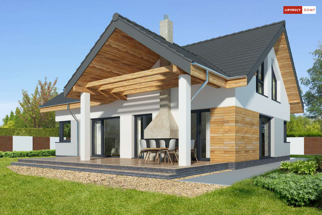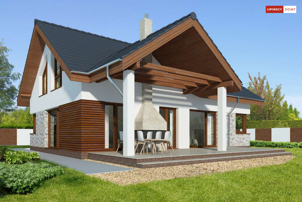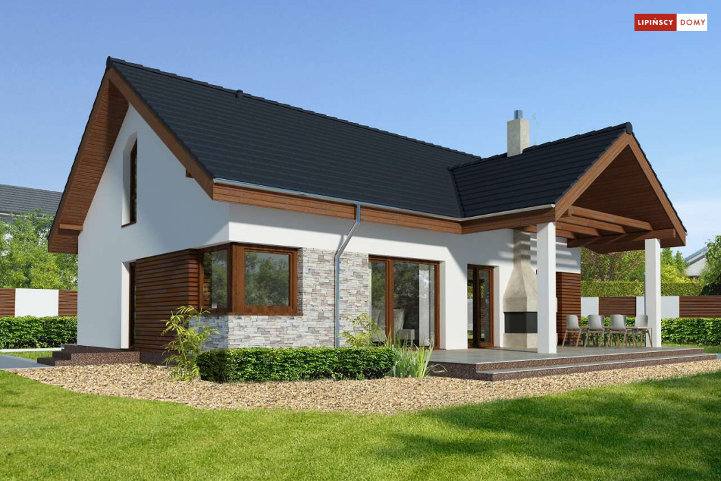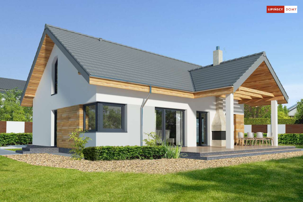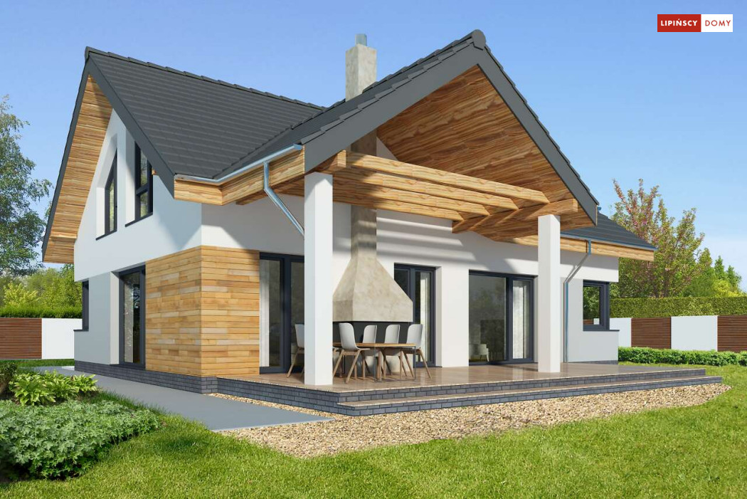 Parterowy dom pasywny, o zwartej bryle i przemyślanym układzie funkcjonalnym. Serce domu stanowi duży pokój dzienny, z wyjściem na taras, którego ozdobą jest kominek zewnętrzny. Os strony frontowej znajduje się kuchnia wraz z przylegającym do niej pomieszczeniem technicznym. Do dyspozycji mieszkańców jest także dodatkowy pokój oraz wygodna, duża łazienka. Poddasze to strefa prywatna, z dwiema sypialniami, garderobami i komfortową łazienka, w której – oprócz prysznica, zmieściła się także narożna wanna. Projekt ten z pewnością spodoba się osobom szukającym domu gdzie ekonomiczną eksploatację i wygodę mieszkańców połączono z proporcjonalną i harmonijną bryłą. Do projektu domu można dokupić pasujący stylistycznie projekt <a href="/projekt/g42">garażu G42</a> o powierzchni ponad 40m².
