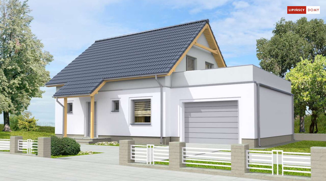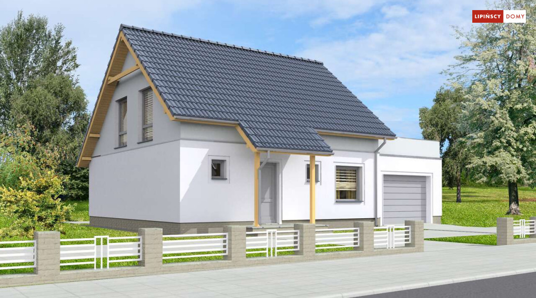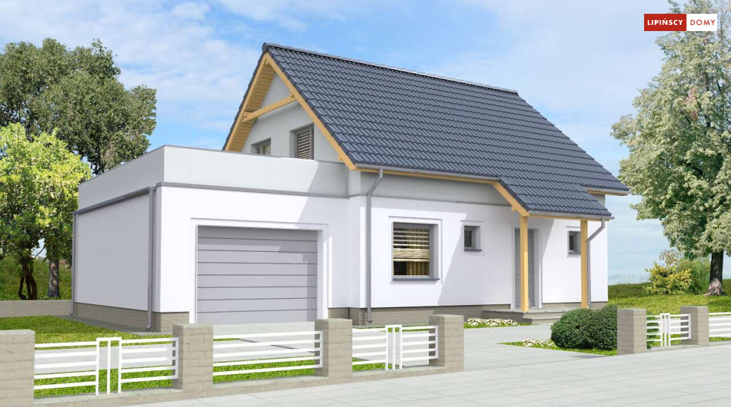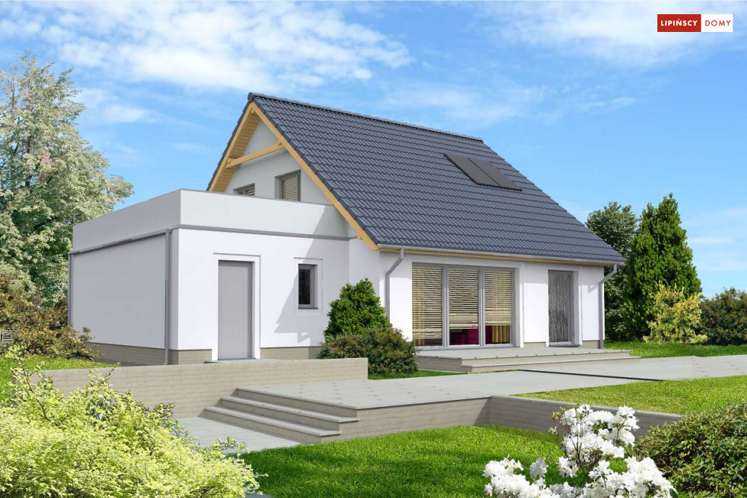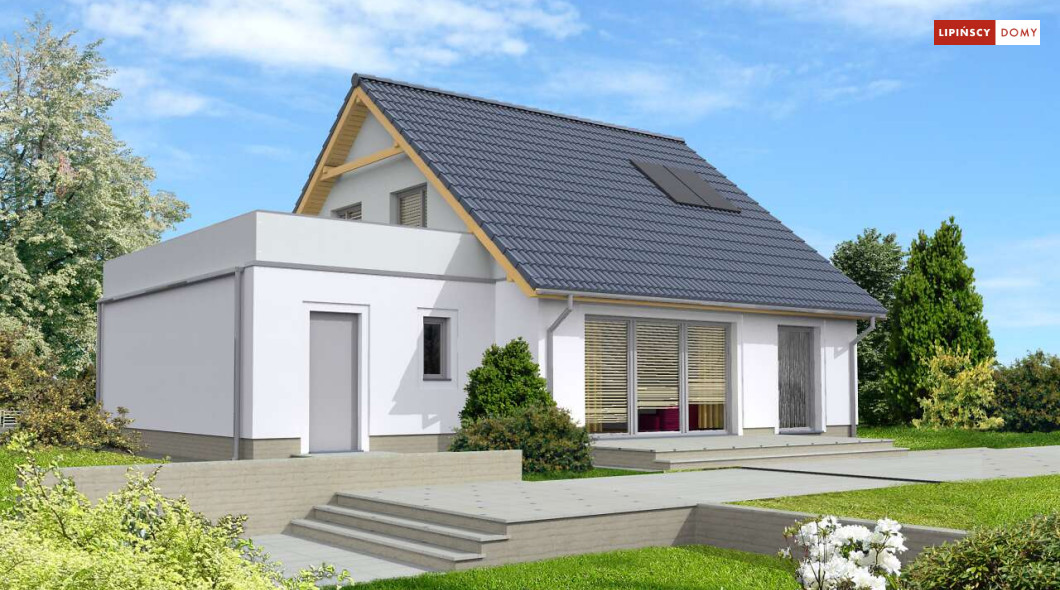Nieduży dom z użytkowym poddaszem, w standardzie pasywnym. Przejrzysty i przemyślany układ funkcjonalny to wielki atut tego projektu, a prosta bryła i dwuspadowy dach korzystnie wpływają na koszty budowy. Na parterze znajduje się salon, z wydzieloną częścią na rodzinny stół. Zamknięta kuchnia ucieszy zwolenników takiego rozwiązania – wyraźnego oddzielenia tego pomieszczenia od salonu. Obok kuchni przewidziano przydatną spiżarnię. Dodatkowy pokój na parterze doskonale sprawdzi się jako gabinet lub pokój gościnny. Poddasze to część prywatna domu, z trzema sypialniami, wygodną łazienką i niedużą pralnią. W projekcie przewidziano garaż na jedno stanowisko, z tarasem na dachu, który – z racji pasywności części mieszkalnej, został wyraźnie wydzielony termicznie od budynku.
