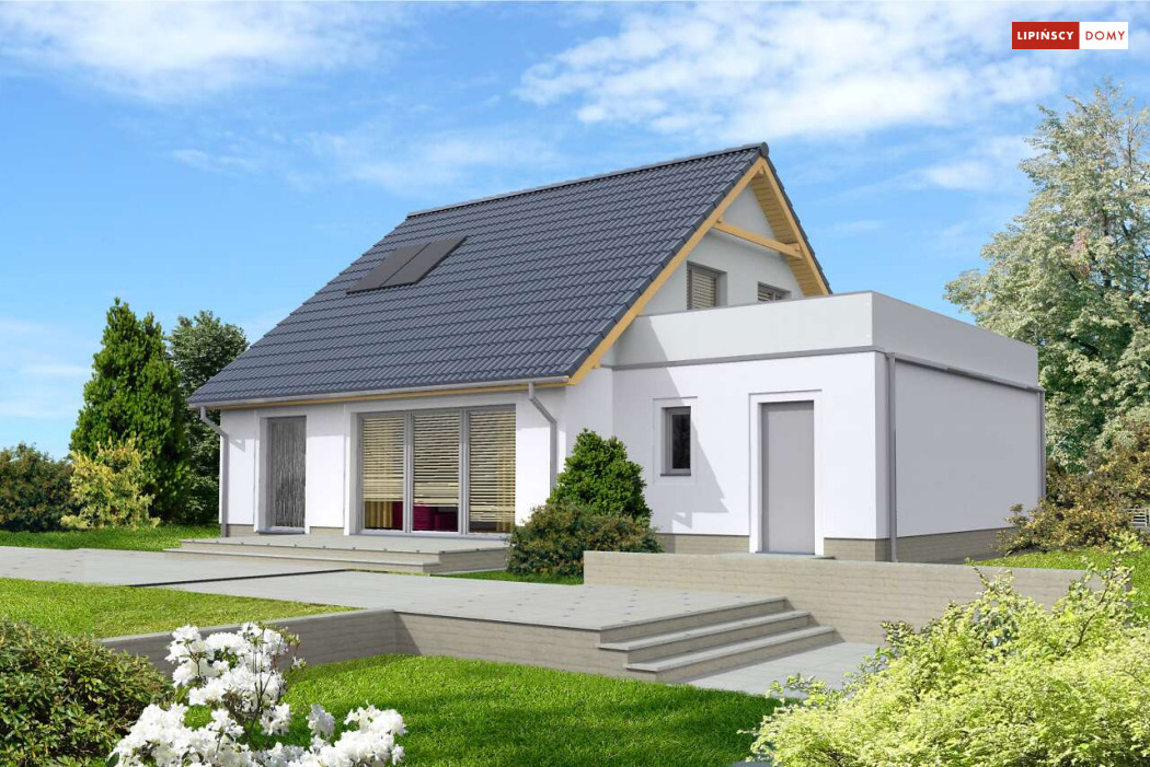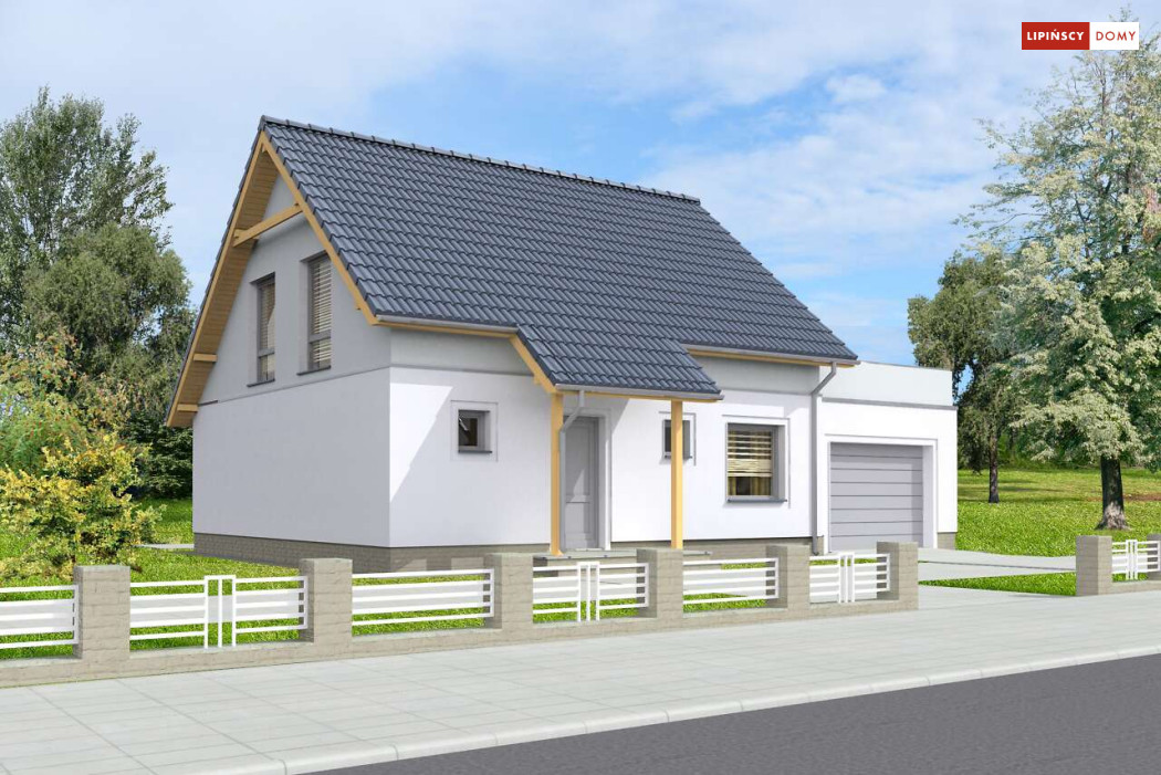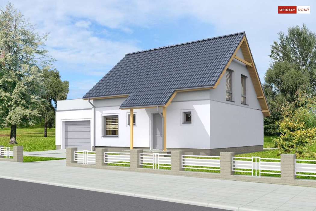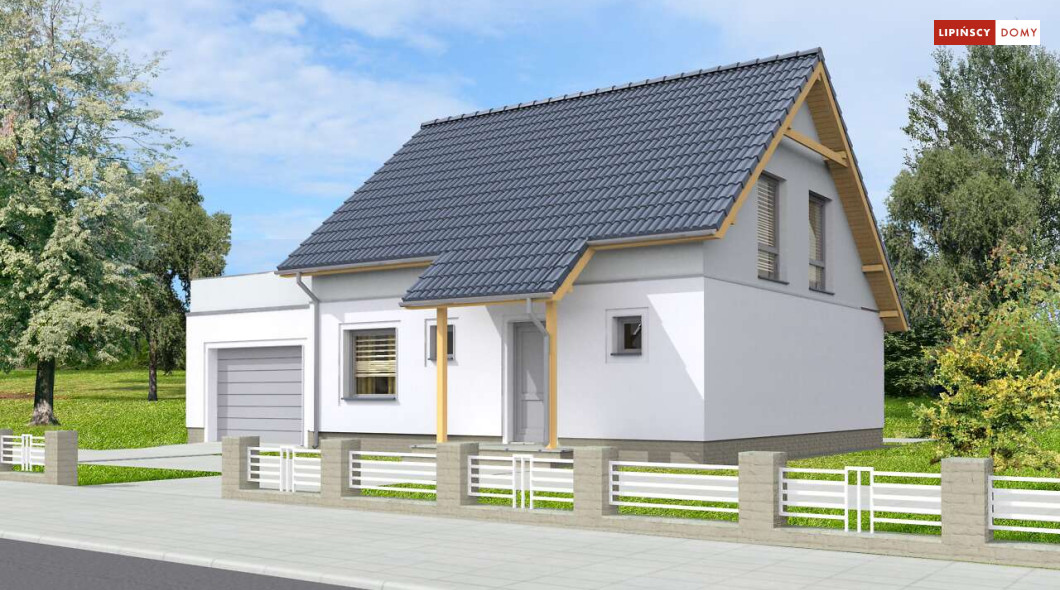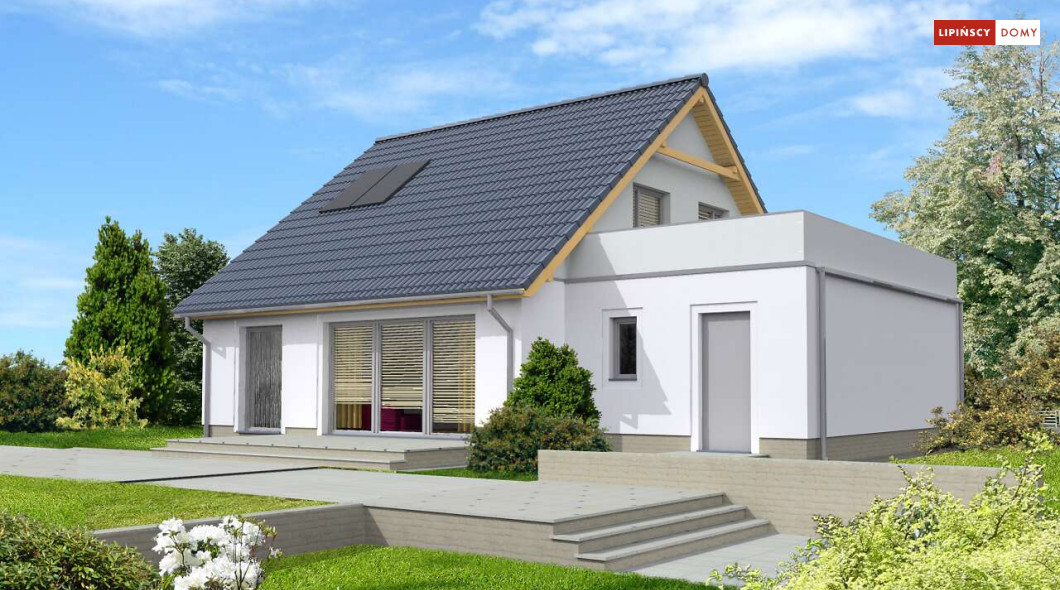 Nieduży dom z użytkowym poddaszem, w standardzie pasywnym. Przejrzysty i przemyślany układ funkcjonalny to wielki atut tego projektu, a prosta bryła i dwuspadowy dach korzystnie wpływają na koszty budowy. Na parterze znajduje się salon, z wydzieloną częścią na rodzinny stół. Zamknięta kuchnia ucieszy zwolenników takiego rozwiązania – wyraźnego oddzielenia tego pomieszczenia od salonu. Obok kuchni przewidziano przydatną spiżarnię. Dodatkowy pokój na parterze doskonale sprawdzi się jako gabinet lub pokój gościnny. Poddasze to część prywatna domu, z trzema sypialniami, wygodną łazienką i niedużą pralnią. W projekcie przewidziano garaż na jedno stanowisko, z tarasem na dachu, który – z racji pasywności części mieszkalnej, został wyraźnie wydzielony termicznie od budynku.