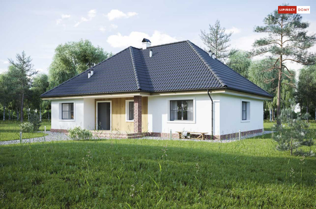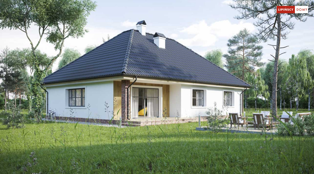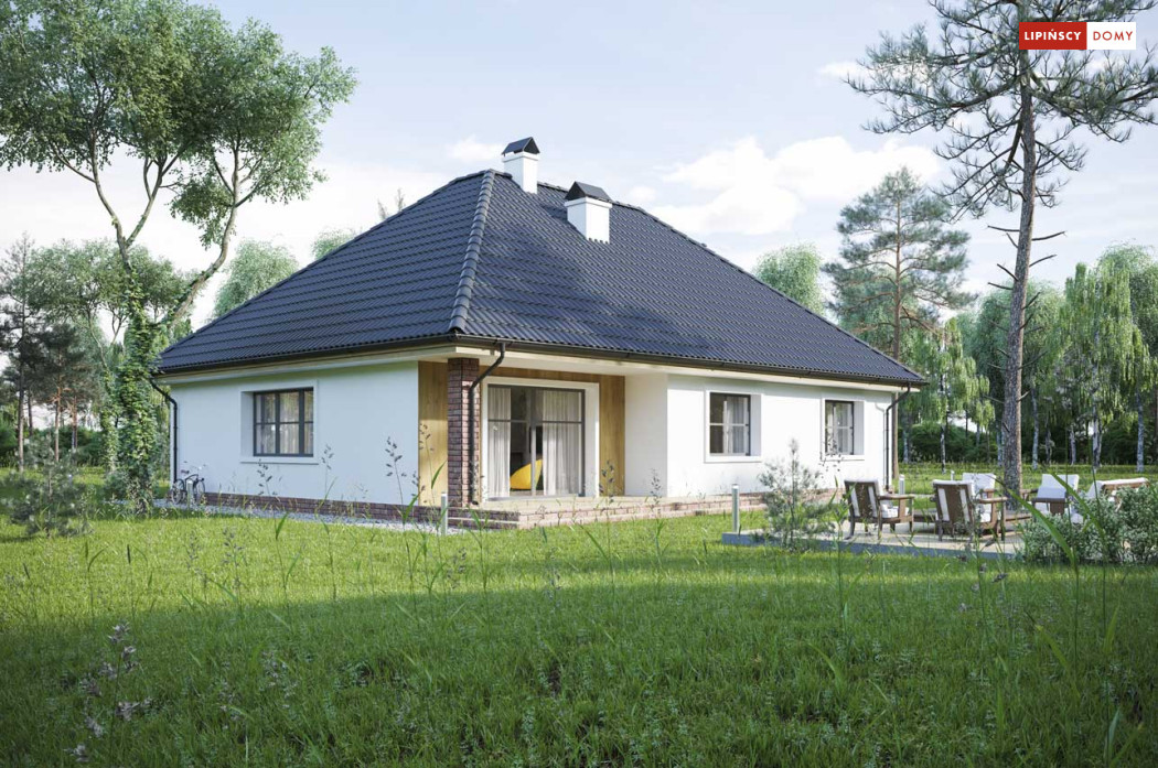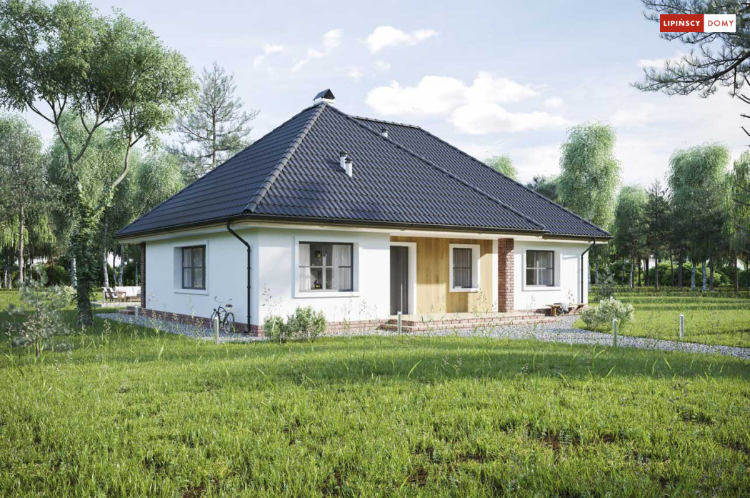Uroczy dom parterowy o tradycyjnej formie z czterospadowym dachem o dużym kącie nachylenia i przestronnym wnętrzu. Idealny dla cztero-osobowej rodziny. Trzy duże pokoje, wygodna łazienka, dodatkowa toaleta i przestronny salon z kominkiem i półotwartą kuchnią czynią ten śliczny domek wyjątkowo wygodnym i przytulnym. W projekcie zastosowano tradycyjne ogrzewanie gazowe i wentylację grawitacyjną. Jeśli podoba Ci się forma domu i metraż jest wystarczający, a potrzebujesz dla swojej rodziny więcej pokoi to proponujemy gotową wersje projektu Saga III z czterema sypialniami.