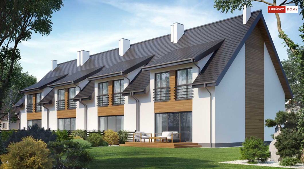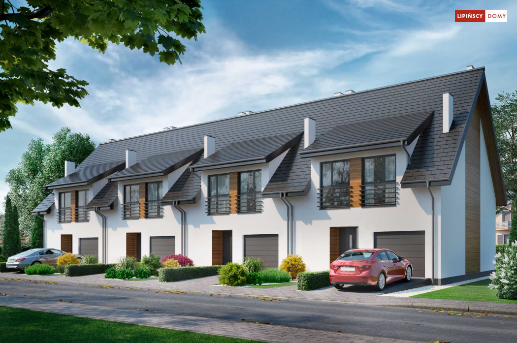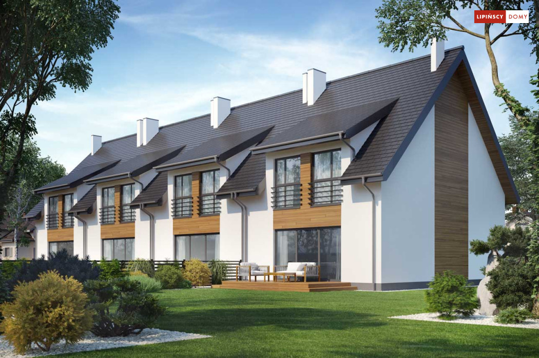Tromso III to idealna propozycja szeregówki dla dewelopera, dom funkcjonalny i ekonomiczny w realizacji, na małe miejskie działki. To projekt niewielkiego, ale pojemnego domu szeregowego, ładnego, prostego w realizacji, z nowoczesnymi elementami. Posiadamy w kolekcji również domy bliźniacze o podobnym układzie, które idealnie komponują się w małe ekonomiczne zespoły mieszkaniowe, chętnie wybierane przez inwestorów (Tromso i Tromso II). Dom charakteryzuje prosta konstrukcja, niewielka powierzchnia i efektowny wygląd. Parter to wbudowany garaż, jednoprzestrzenna bardzo ustawna przestrzeń dzienna: pokój dzienny z miejscem na wygodną sofę, stół jadalni, otwartą kuchnię oraz łazienka, pomieszczenie gospodarcze. Na poddaszu są trzy przestronne sypialnie (z możliwością podziału na cztery pokoje) wraz z obszerną łazienką. Szeregi tych domów będą idealnie prezentowały się na małych podmiejskich działkach jako uzupełnienie istniejącej zabudowy i w nowopowstających założeniach zespołów mieszkaniowych. W każdym segmencie zaproponowaliśmy kominek, ale można oczywiście z niego zrezygnować na etapie adaptacji do warunków miejscowych. W projekcie przewidziano ogrzewanie kotłem na gaz. Możliwa jest zmiana ogrzewania na pompę ciepła.