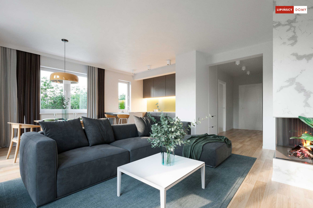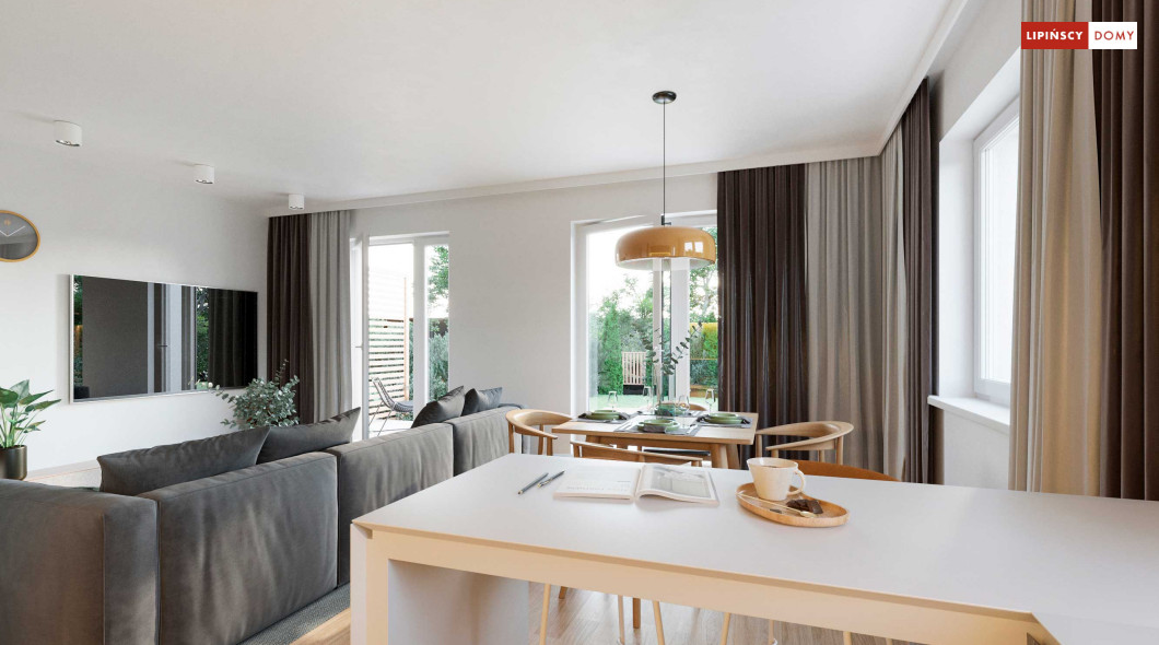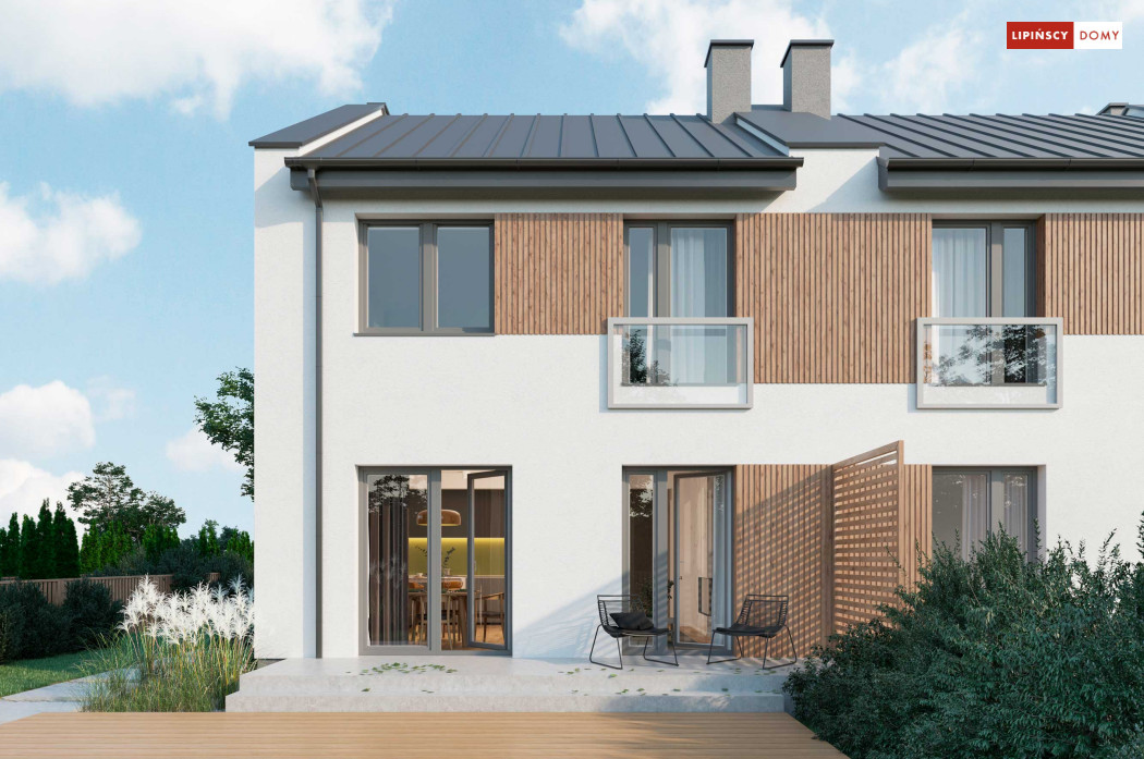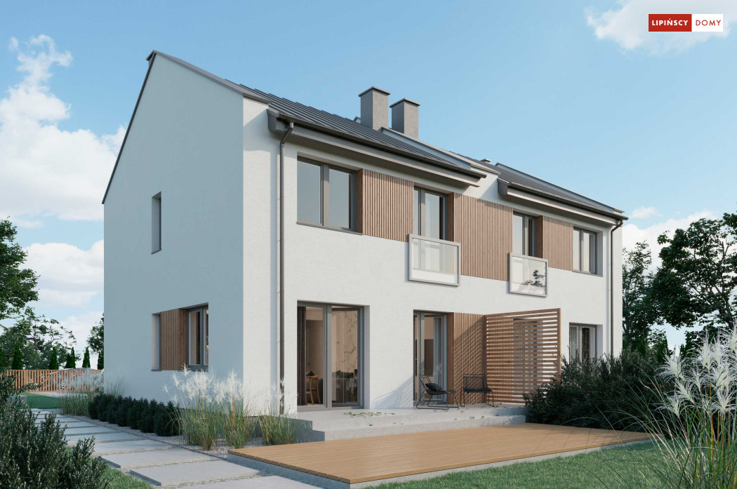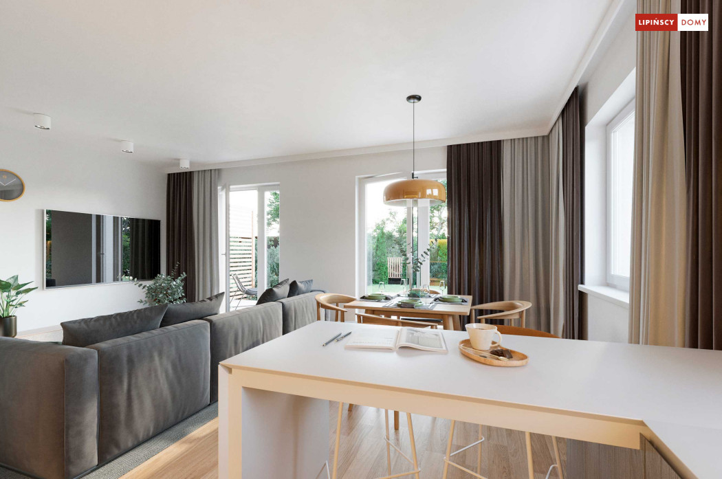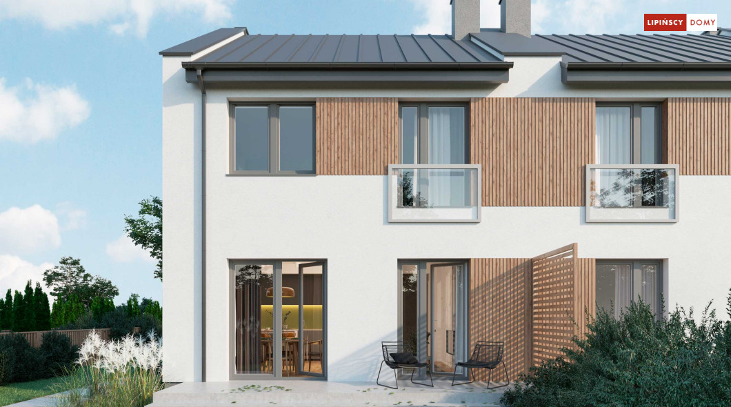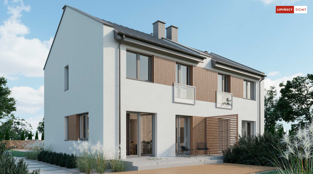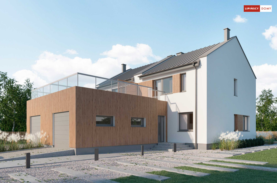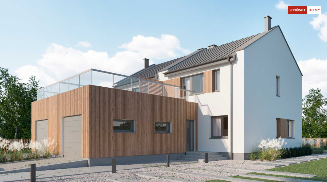 Projekt domu Norwich II to nowoczesny dom dwukondygnacyjny w zabudowie bliźniaczej z dwuspadowym dachem. Wysunięty do przodu garaż umożliwi usytuowanie domu na wąskiej działce. Wejście do domu jest osłonięte i wygodnie schowane pod dachem, i łączy się w wiatrołapie z wejściem do garażu. Wnętrze domu jest przestronne i oferuje ponad 30-sto metrową przestrzeń dzienną, dodatkowy pokój na parterze oraz 3 sypialnie, w tym jedną z garderobą i łazienkę na poddaszu. W projekcie przewidziano ogrzewanie kotłem na gaz. Możliwa jest zmiana ogrzewania na pompę ciepła.