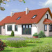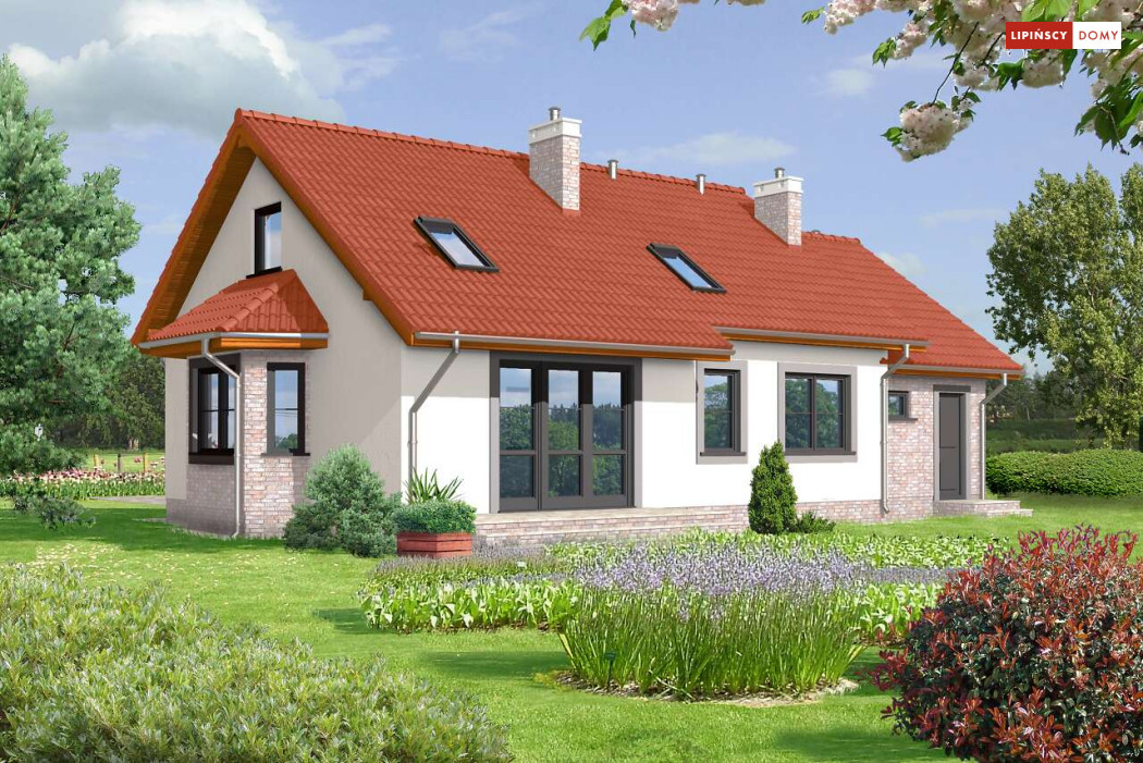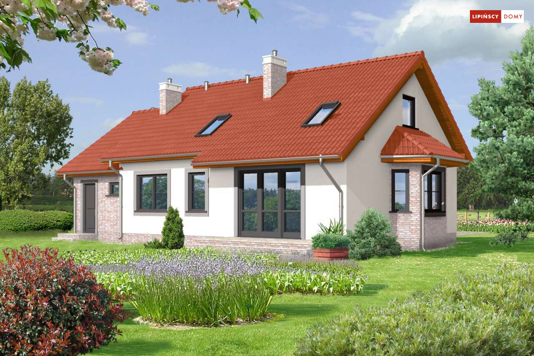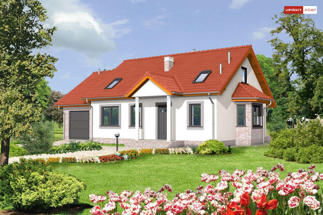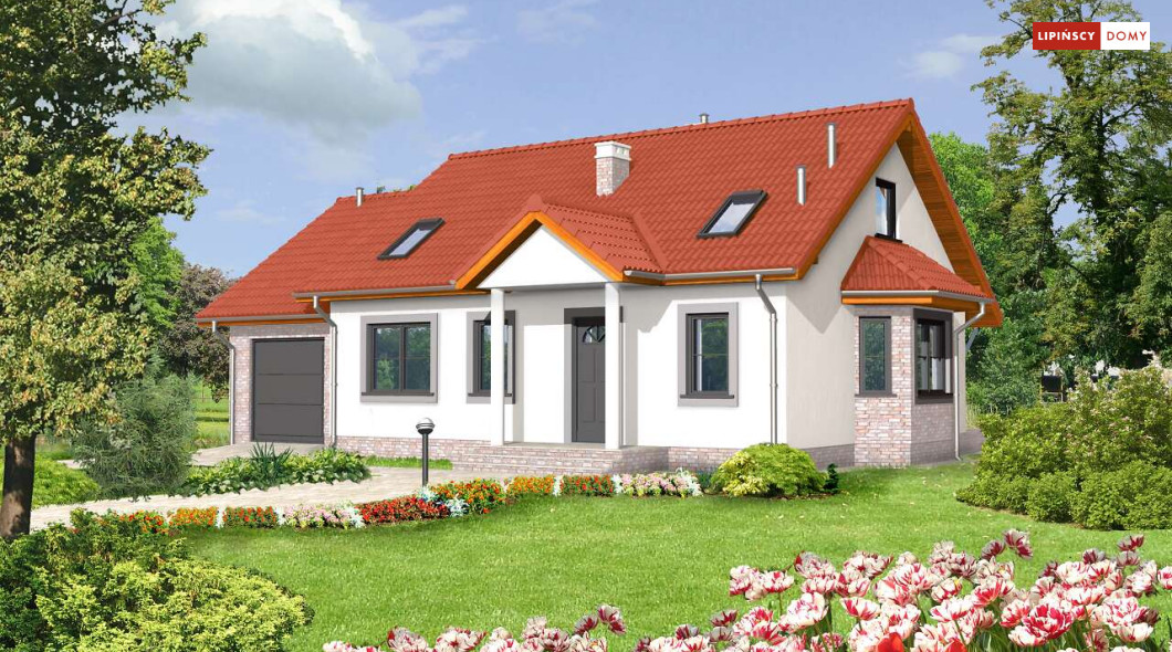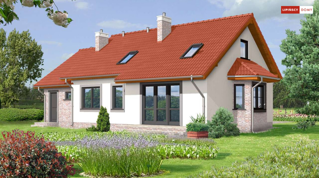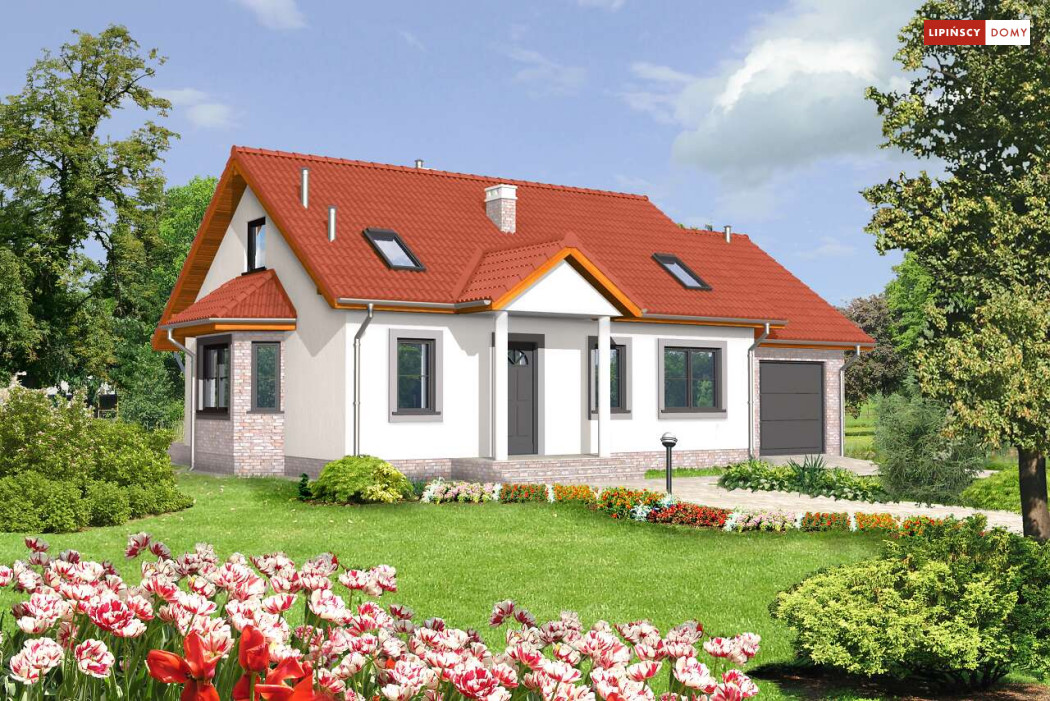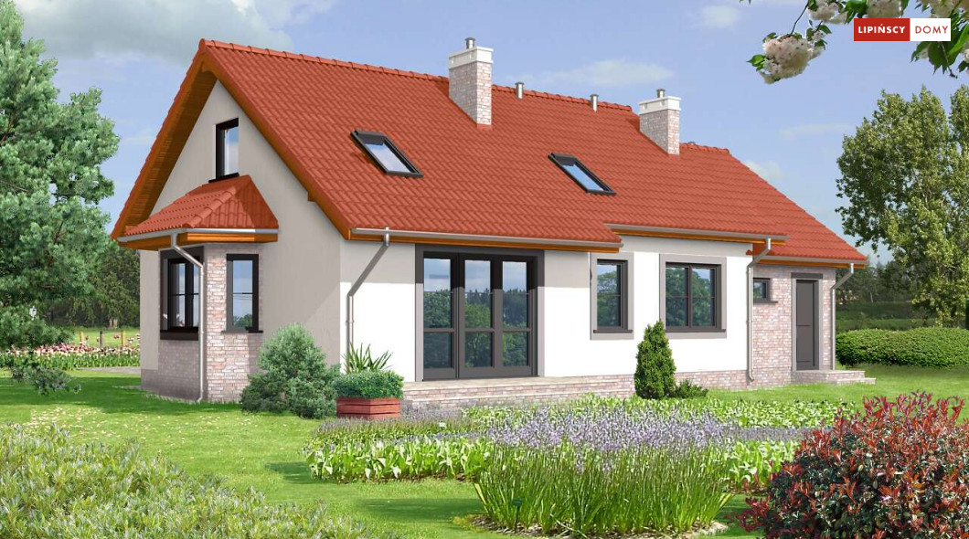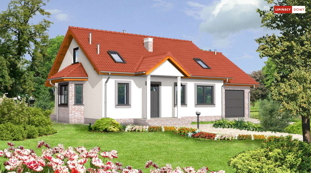 Dom Drezno idealnie nadaje się do budowy dwuetapowej. Na początek można zrealizować parter, gdzie znajdują się dwie sypialnie idealne na start. Poddasze może być wykończone później i dostępne przez schody umieszczone przy wiatrołapie. Na poddaszu znajdują się także dwie sypialnie i łazienka. Tak usytuowane poddasze może także nadawać się na wynajem, lub jako osobne mieszkanie dla dorastających dzieci. Kotłownia została umieszczona za garażem, co pozwala na uwolnienie części mieszkalnej z mniej estetycznego pomieszczenia. Nad garażem jest także dostępny stryszek na rzeczy rzadziej używane. Tak dobrze rozwiązany układ funkcjonalny małego domu, to bardzo duży atut. Dodatkowym atutem jest prosta, jednak bardzo elegancka bryła, co sprawia, że dom ten jest tani w budowie.