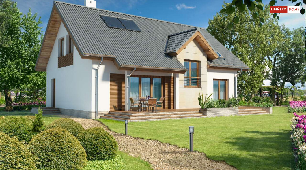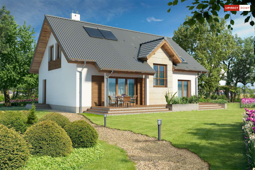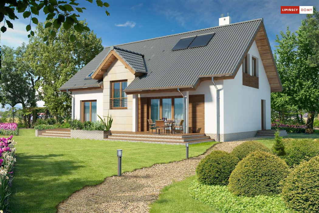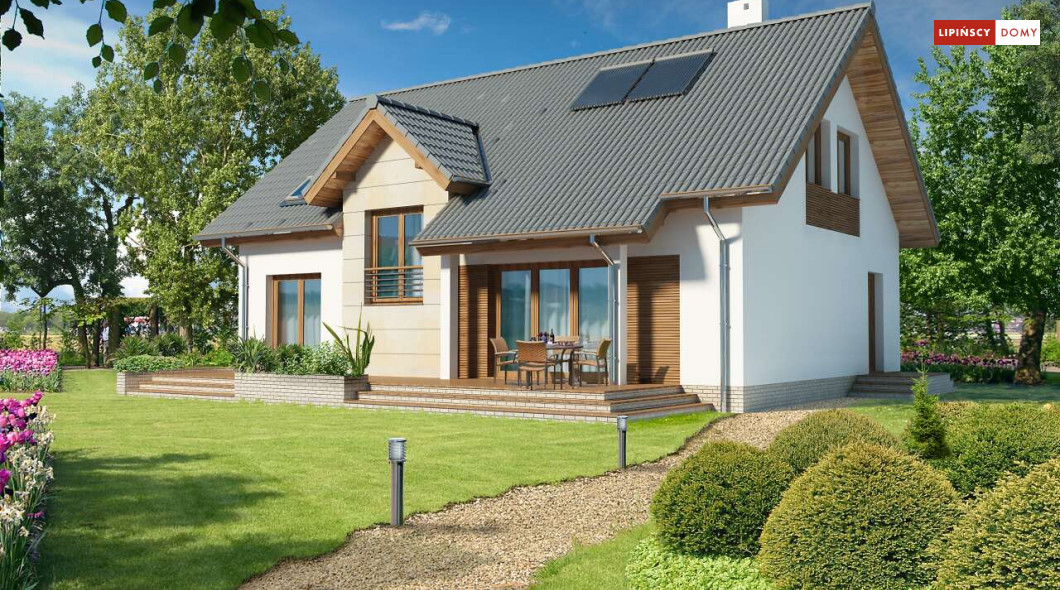 Podstawową zaletą tego energooszczędnego domu jest jego wygodny układ funkcjonalny przy zastosowaniu nowoczesnych detali. Przejawia się to w każdym aspekcie: wygodne, ładnie doświetlone sypialnie na poddaszu i dodatkowe dwa pokoje na parterze, praktyczne pomieszczenie gospodarcze obok kuchni z wyjściem do ogrodu, szerokie i bezpieczne schody. Kuchnia jest na tyle duża, że pomieści się w niej stół rodzinny. Latem posiłki będzie też można jadać na zadaszonym tarasie, a zimą rozkoszować się ciepłem kominka.