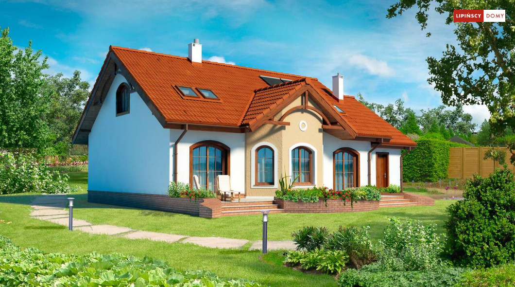 Atlanta jest pięknym domem energooszczędnym, który został zaprojektowany na życzenie Inwestorów, którym bardzo podoba się projekt Sofia II, a chcieliby móc w nim wykorzystać poddasze. Dlatego stworzyliśmy Atlantę. Bardzo zależało nam na tym, aby dom można było zrealizować etapami – najpierw parter, a w razie potrzeby – także poddasze. Stąd też taki układ pomieszczeń, aby już na początku można było mieszkać wygodnie. Duża sypialnia, w której zmieszczą się spore szafy, posiada własne wyjście na taras. Jest w niej także na tyle miejsca, aby zmieściła się także toaletka, czy komody. Drugi pokój jest mniejszy, ale wystarczająco duży, aby pomieściło się w nim łóżko, biurko i regały. Może także pełnić rolę gabinetu, a w razie przyjazdu gości, będzie można ich w nim wygodnie umieścić. Ważne dla nas było także to, aby łazienka na parterze była na tyle duża, aby zmieściła wannę (lub jeśli ktoś woli prysznic) i pralkę. Kuchnia w Atlancie zyskała także spiżarnię, a w korytarzu, pod schodami jest miejsce na dużą szafę gospodarczą. Dla tych, którzy będą w ramach adaptacji chcieli zrobić piwnicę, w tym miejscu będzie można zrobić wejście do niej. Salon jest przestronny i jest w nim miejsce na duży stół jadalniany. Zaproponowane usytuowanie kanap pozwala na jednoczesne korzystanie z kominka i oglądanie telewizji. Okna w wykuszu mają parapety na wysokości około 50 cm, co sprawia, że siedząc na kanapach mamy widok na ogród. Na poddasze wchodzimy po schodach usytuowanych w wiatrołapie. Dzięki temu poddasze może być przeznaczone dla dorastających dzieci, a nawet na wynajem. Na górze znajdują się dwie wygodne sypialnie. W projekcie są przewidziane ścianki kolankowe z płyt gipsowo – kartonowych do wysokości 1,2 m. Można je także z powodzeniem zrobić mniejsze, np.: do 90 cm. Każda z sypialni ma własne identyczne garderoby. Jest także zaprojektowany schowek dostępny z korytarza, który może się nadawać na składzik bielizny, lub jakże wygodne miejsce do prasowania. Z sypialni można także zrobić przejście nad stryszek nad garażem. Nie ma tam zbyt wiele miejsca, ale taka dodatkowa przestrzeń zawsze się przyda, zwłaszcza jeśli zamontujemy dodatkowe okno połaciowe. Atlanta to dom energooszczędny, więc jego utrzymanie będzie nawet trzykrotnie tańsze.