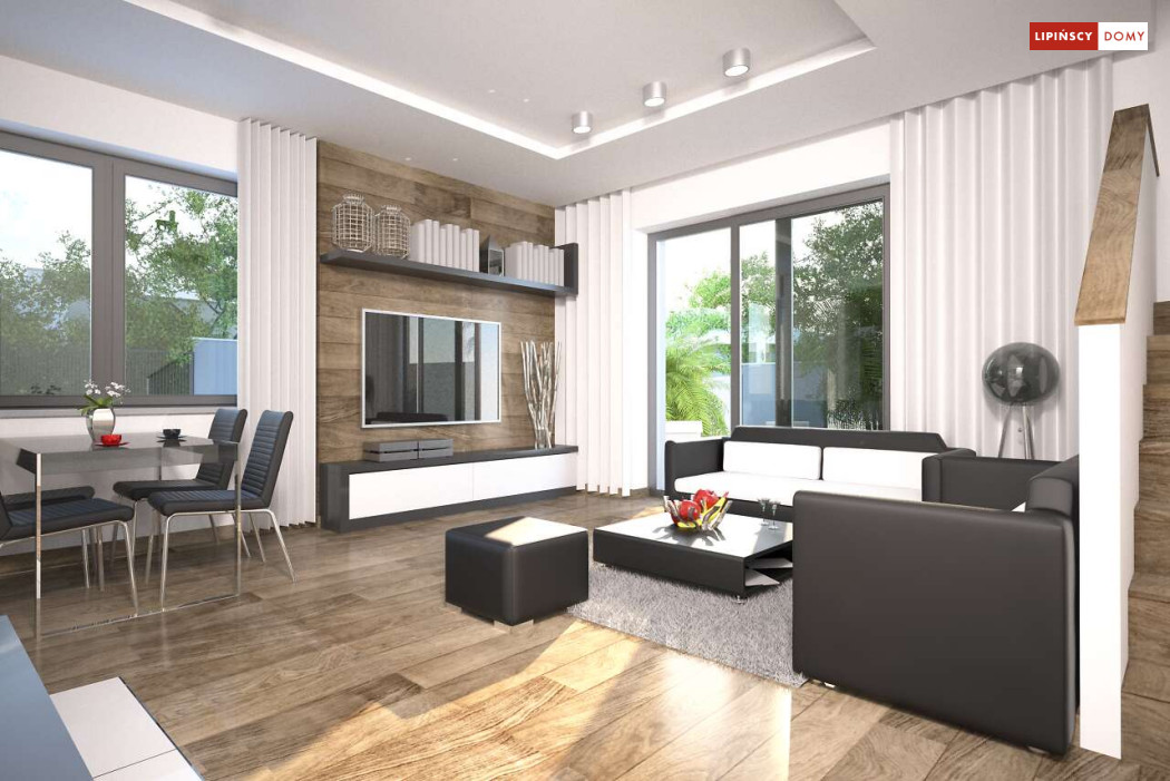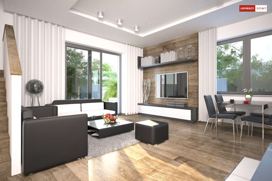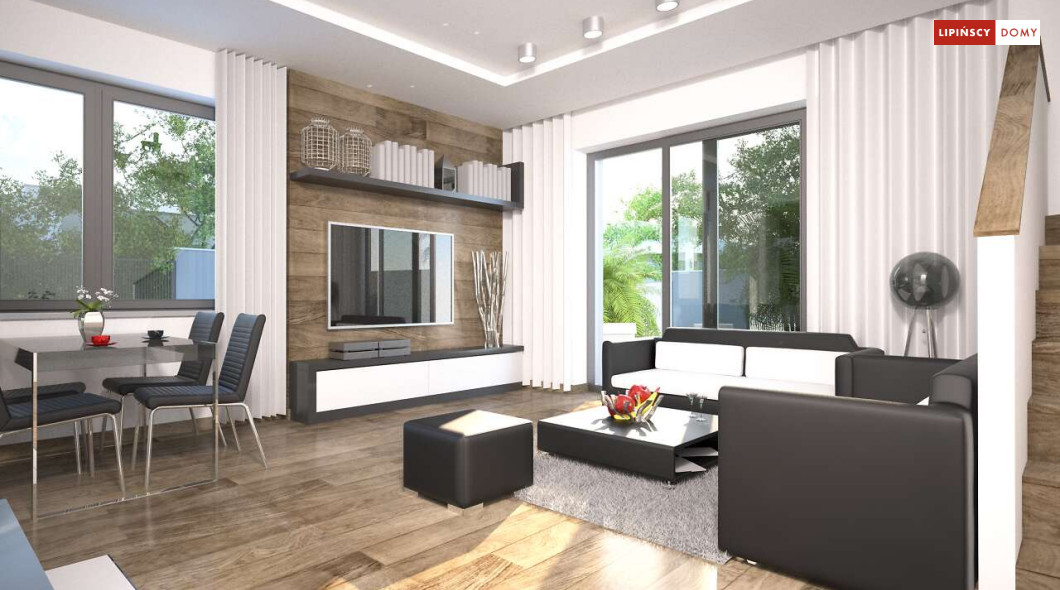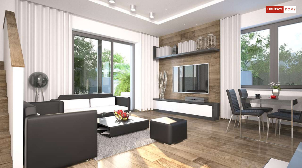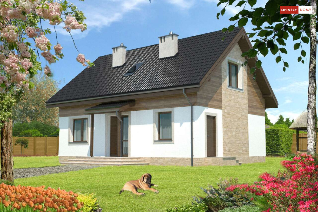 Elegancki dom z użytkowym poddaszem, który poprzez proste rozwiązania gwarantuje niskie koszty wykonania. Ciekawy detal wykończenia elewacji dodaje budynkowi charakteru. Do wnętrza zaprasza duży hall z widokiem na schody i salon z kominkiem. Nieco wydzielony został dodatkowy pokój z łazienką. Ze sporej kotłowni prowadzi niezależne wyjście na zewnątrz, co pozwala na zastosowanie kotła c.o. na paliwo stałe. Dwie duże sypialnie na poddaszu mają własne garderoby, a wygodna łazienka pomieści zarówno wannę narożnikową, jak i prysznic. Takie rozplanowanie strefy prywatnej zapewnia domownikom komfort przy zachowaniu niezbędnej intymności.