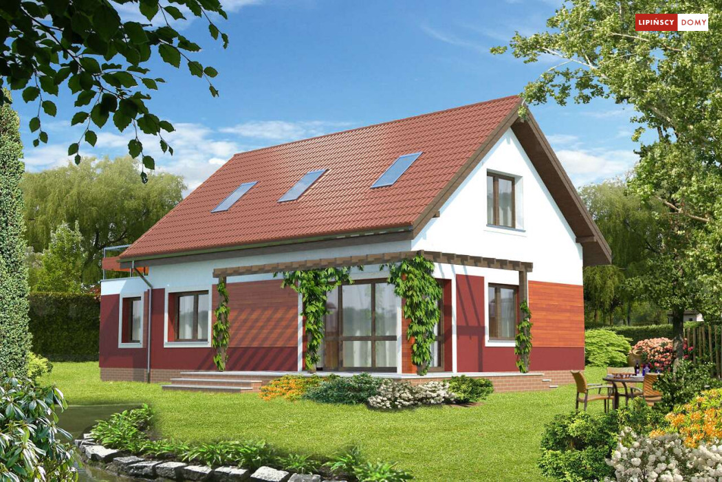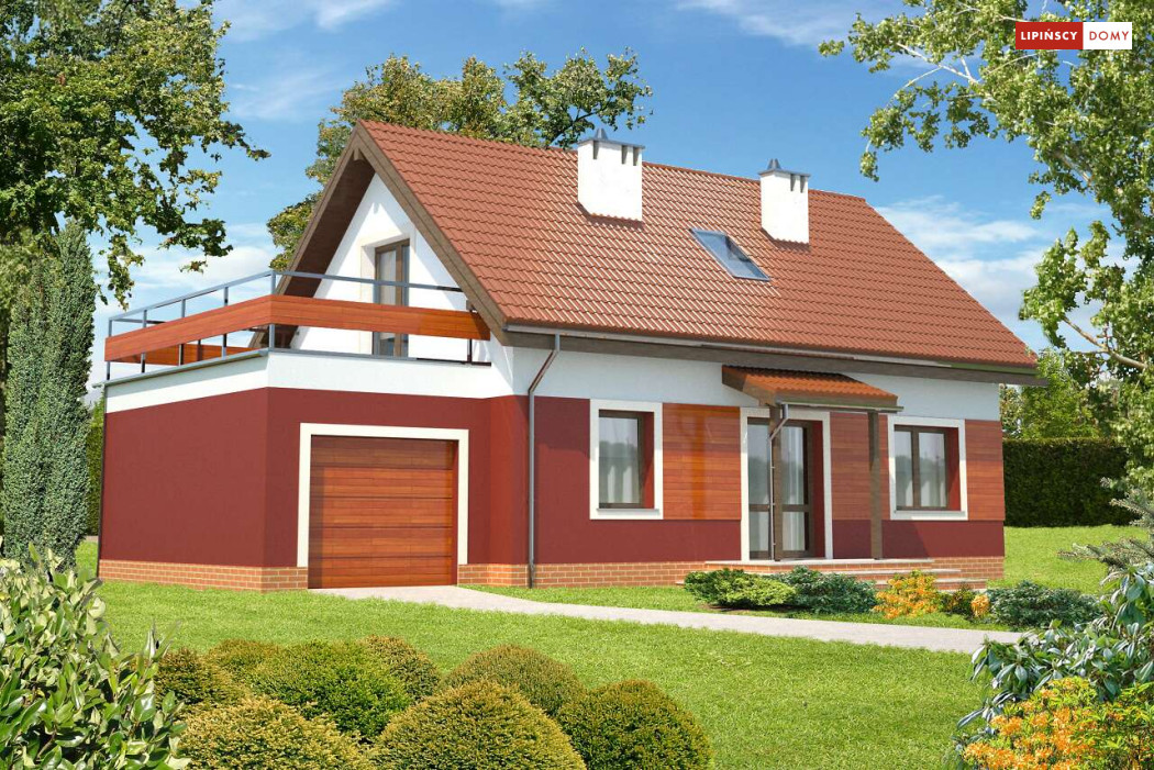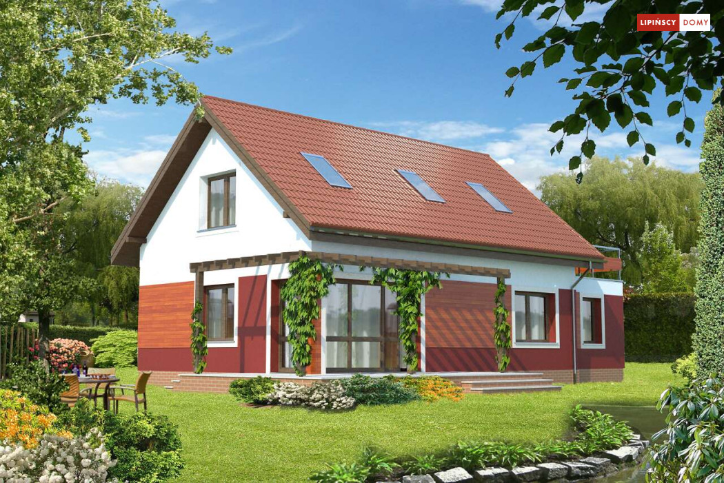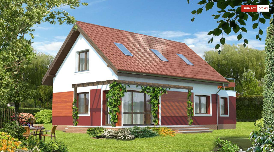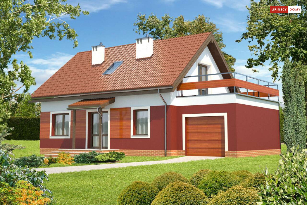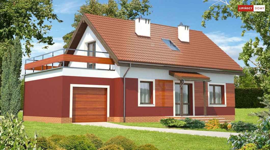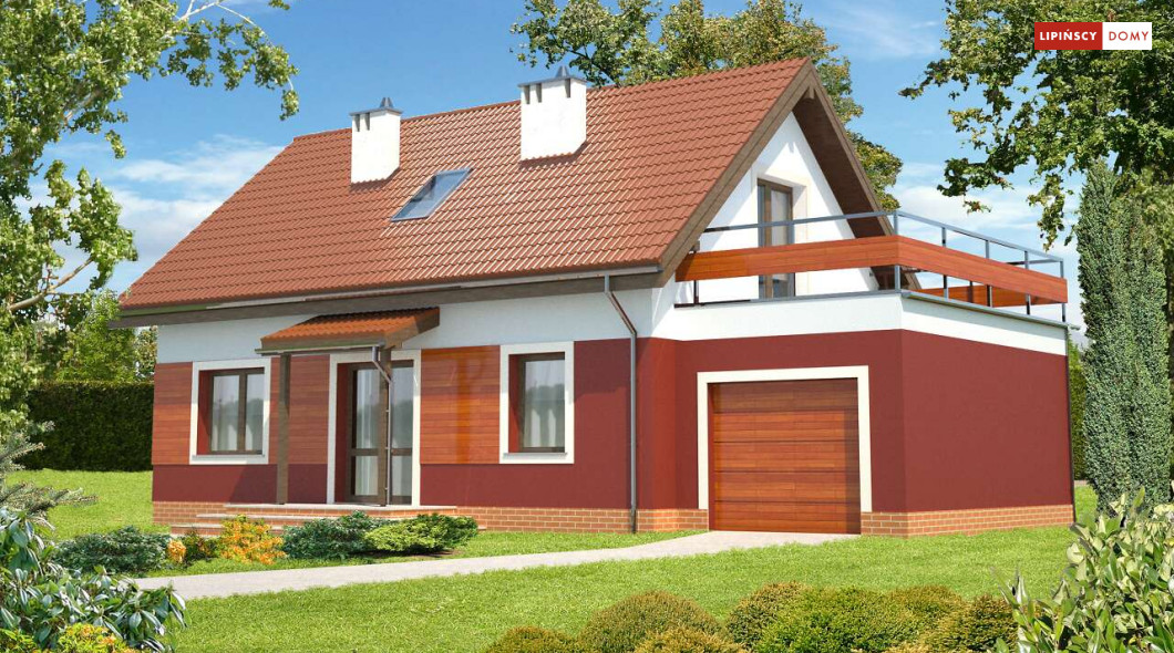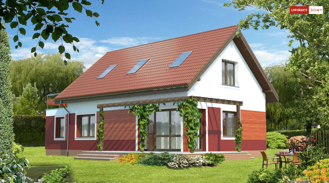 Wygodny, prosty i tani w realizacji dom z użytkowym poddaszem. Funkcjonalność została zapewniona poprzez doskonałe rozplanowanie przestrzeni. Salon połączonym z kuchnią, z centralnie umieszczonym kominkiem pełni funkcję reprezentacyjną. Dodatkowy pokój z łazienką w odosobnionym miejscu za schodami zapewni trochę intymności, czy to rodzicom, czy też odwiedzającym gościom. Z kotłowni zaplanowano wygodne przejście do garażu. Poddasze to dwie duże sypialnie, z których każda ma własną garderobę, a jedna dodatkowo własny taras oraz ustawna łazienka. Takie rozplanowanie strefy prywatnej zapewnia mieszkańcom pełną wygodę.