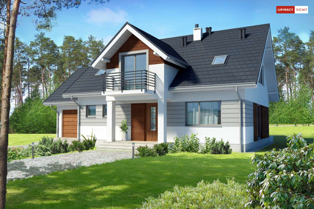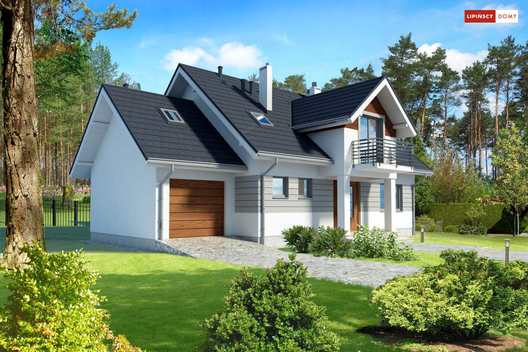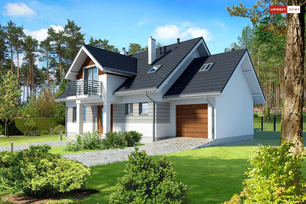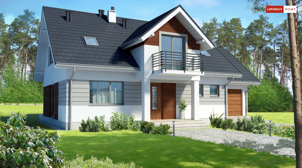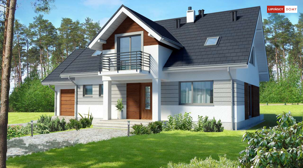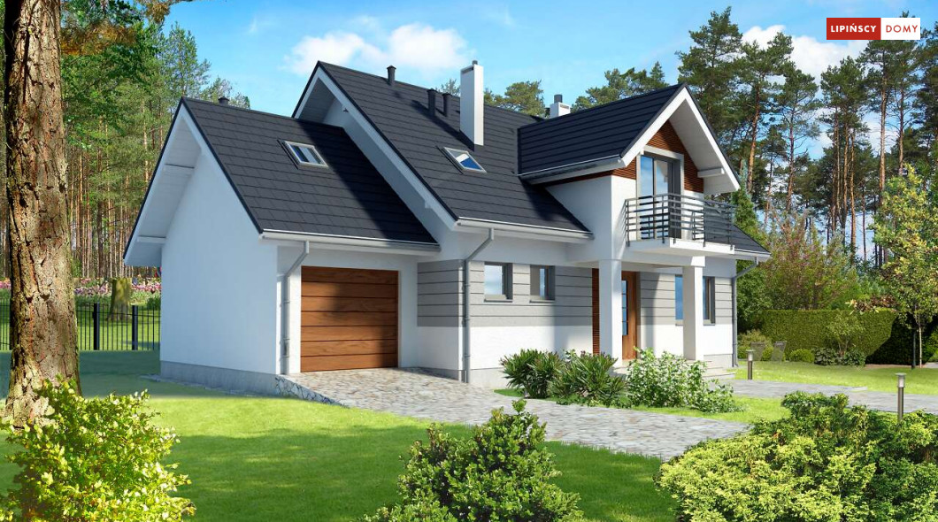 Piękny dom, o ciekawej bryle i funkcjonalnym wnętrzu, w którym wygodnie może zamieszkać kilkuosobowa rodzina. Na parterze uwagę zwraca bardzo przestronny salon, na środku którego umieszczono kominek. Znalazło się też miejsce na aneks jadalny, z którym graniczy półotwarta kuchnia. Jest także dodatkowy pokój. Na poddaszu są 4 sypialnie, w tym jedna z garderobą i osobną łazienką oraz dodatkowa wygodna łazienka dla całej rodziny. Do budynku dostawiony jest jednostanowiskowy garaż, nad którym jest dostępny z głównej łazienki strych, idealnie nadający się na suszarnię i składzik.<br>
