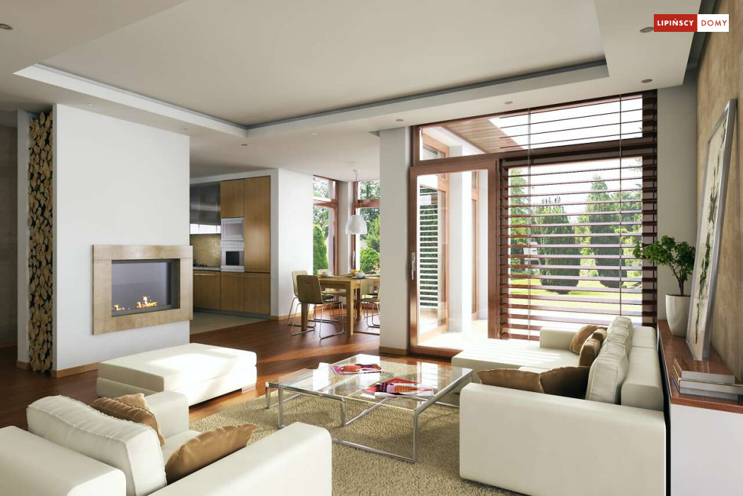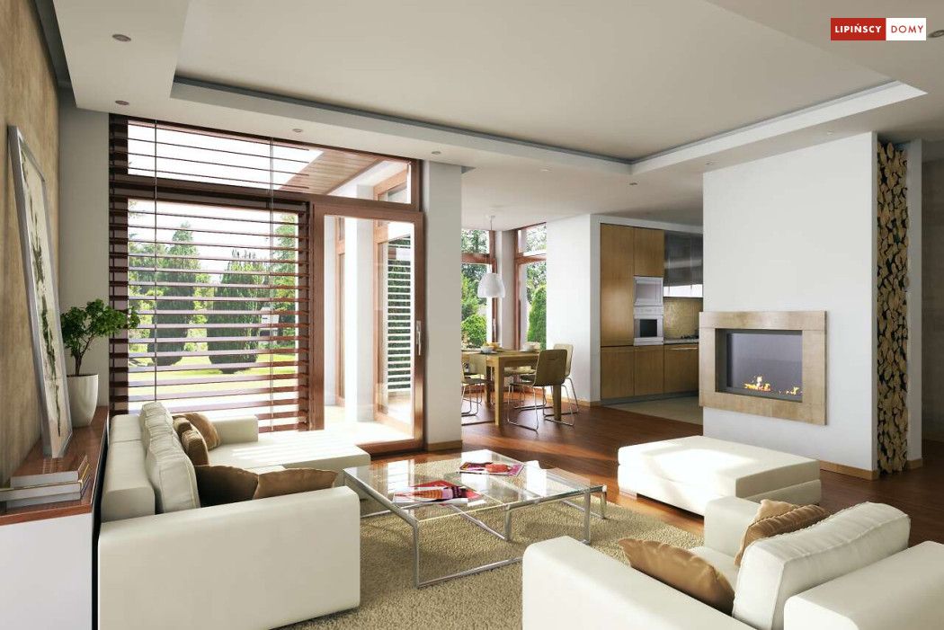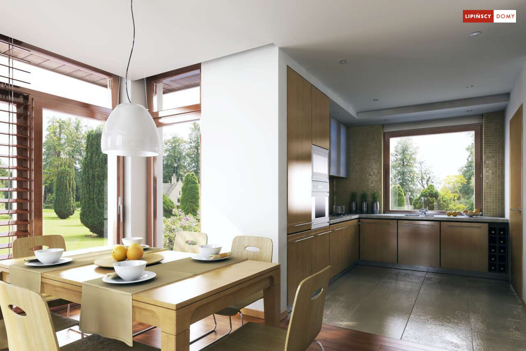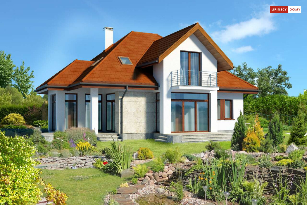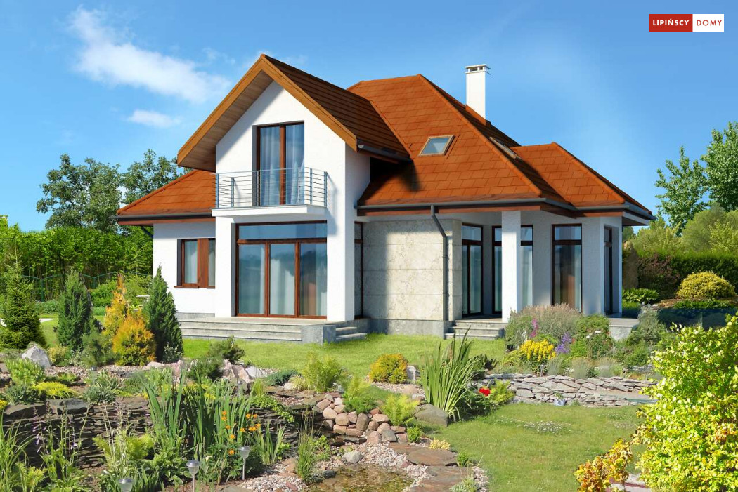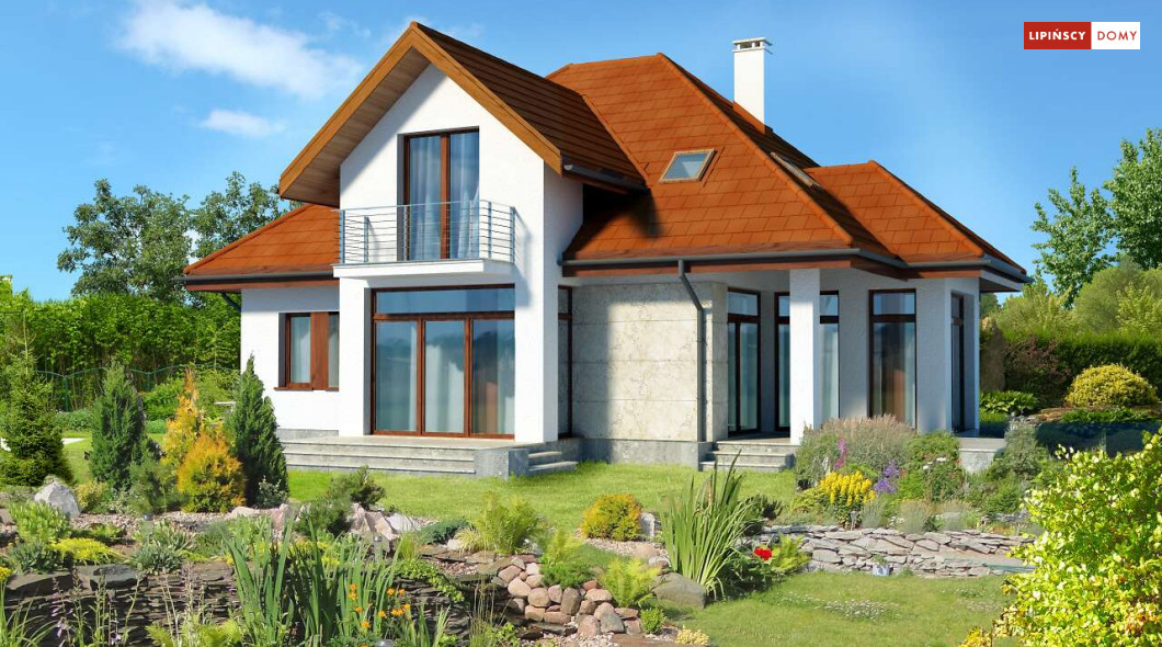 Piękny dom z użytkowym poddaszem, w którym wygodnie może zamieszkać kilkuosobowa rodzina. Elegancka bryła kryje bardzo funkcjonalne wnętrze. Mieszkańcy mają do dyspozycji część wspólną na parterze: duży salon z reprezentacyjnym kominkiem i miejscem na rodzinny stół, pokój mogący być, w zależności od potrzeb gabinetem lub sypialnią dla gości, łazienkę i wc. Obok ustawnej kuchni przewidziano spiżarnię, a także pomieszczenie gospodarcze. Na poddaszu zlokalizowano cztery sypialnie, komfortową łazienkę oraz garderobę.