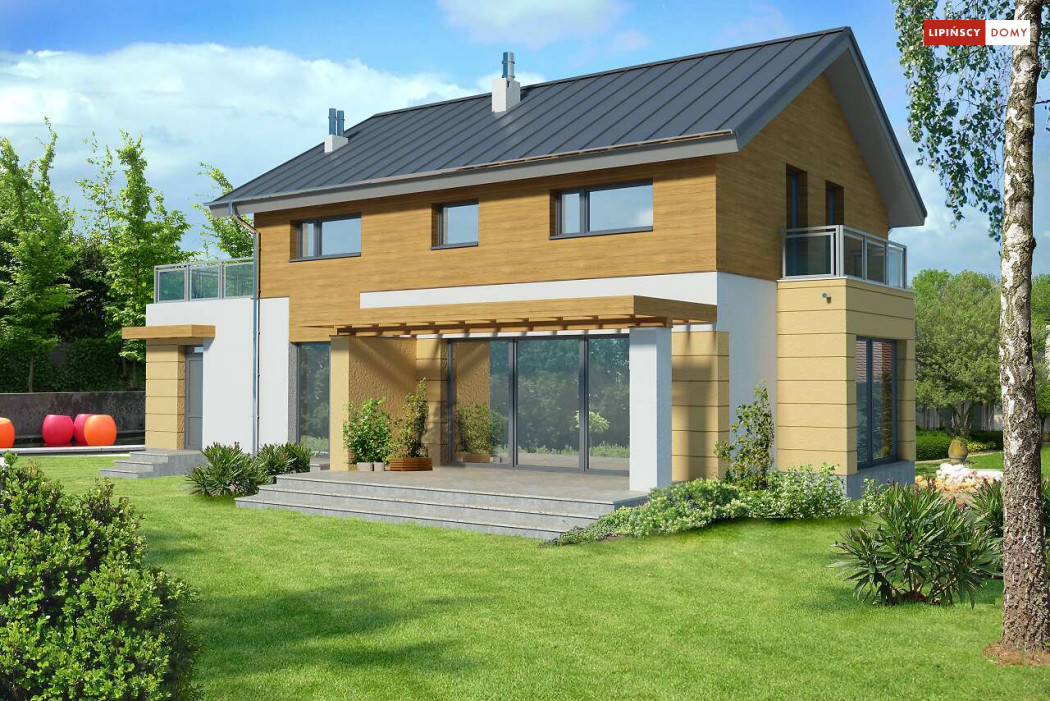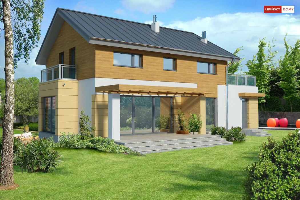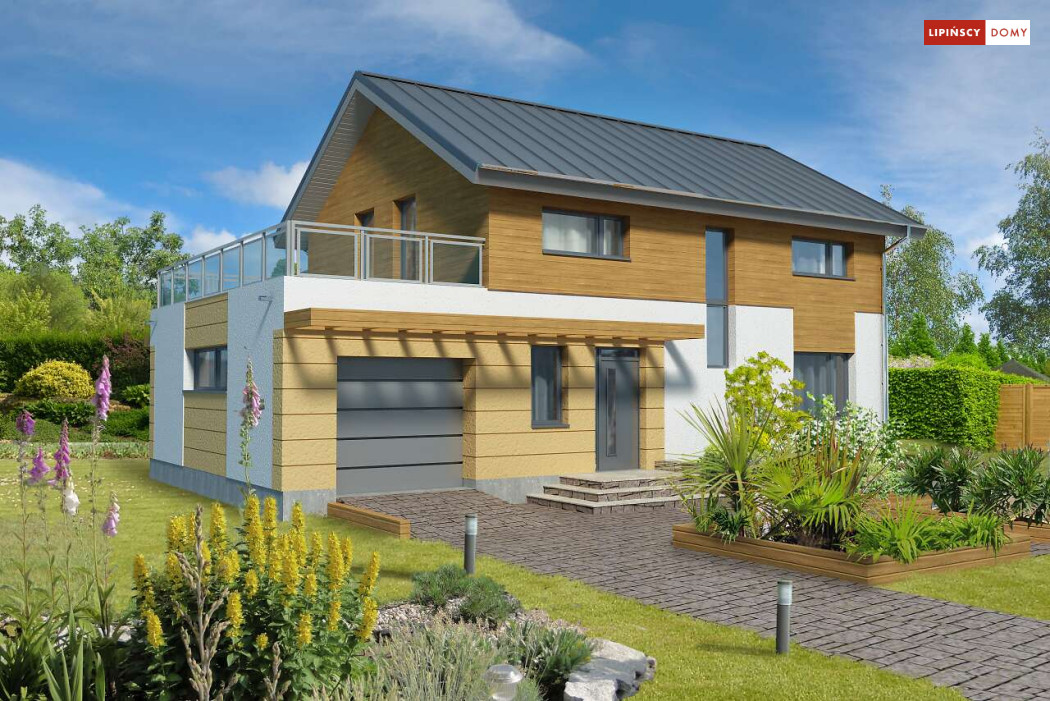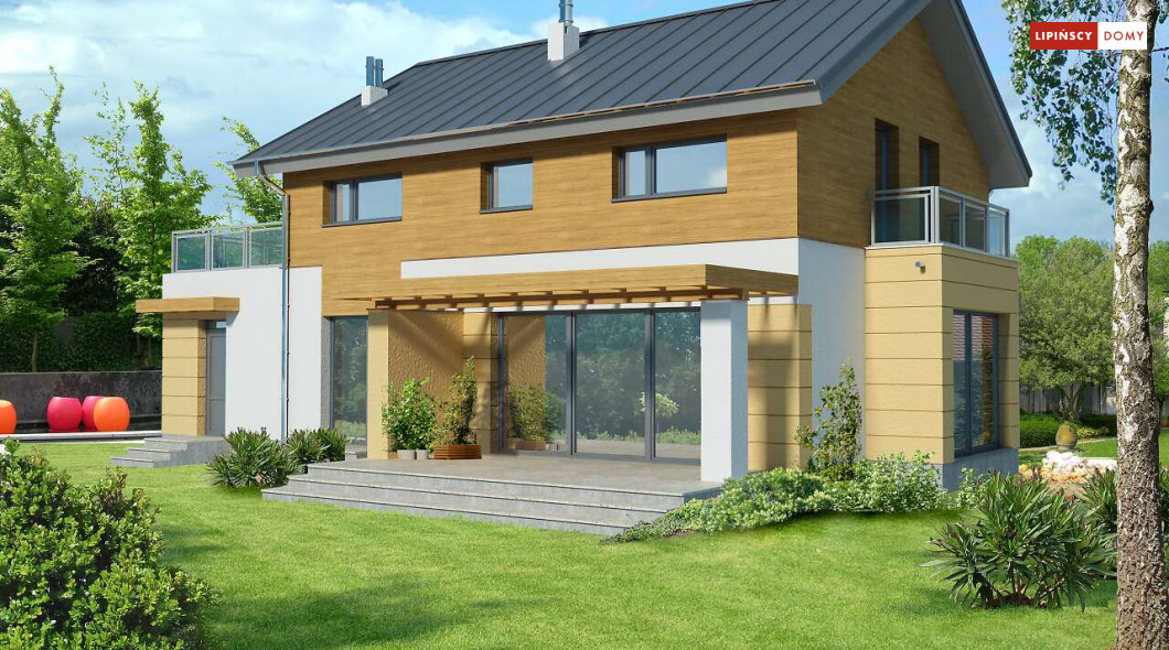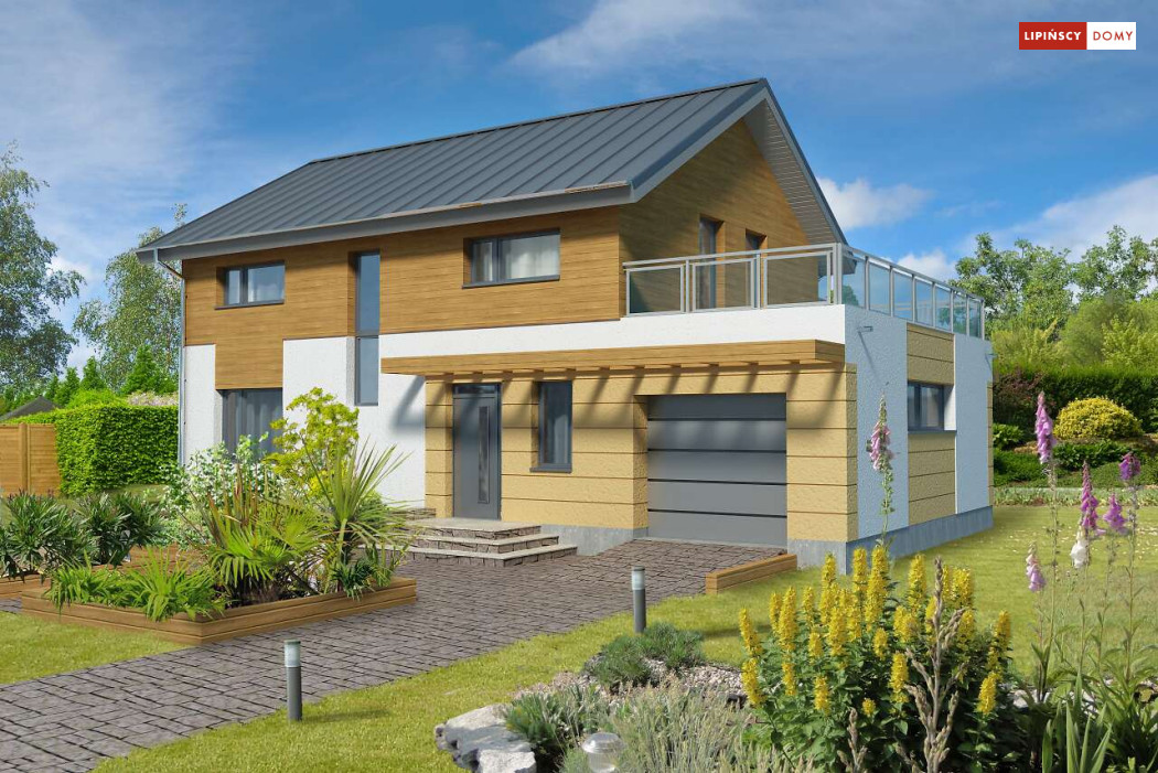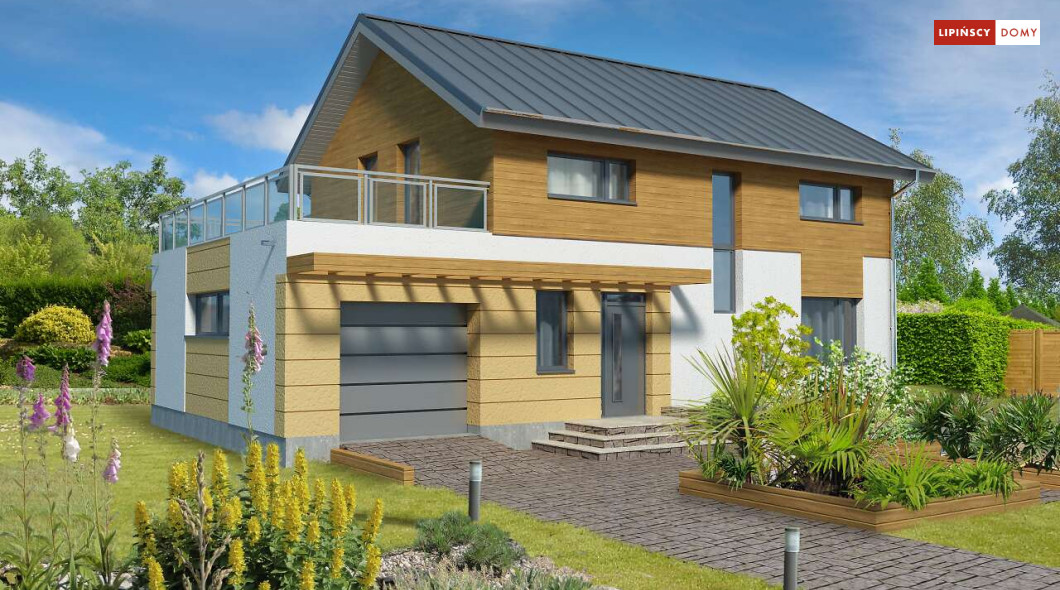Wygodny dom z użytkowym poddaszem. Mieszkańcy mają do dyspozycji część wspólną - salon z kominkiem i wykuszem oraz kuchnią, w której zmieści się wyspa, co ucieszy niejedną panią domu. Obok kuchni przewidziano spiżarkę, jest także dodatkowy pokój, łazienka i garderoba. Z salonu można wyjść na częściowo zadaszony taras, doskonałe miejsce do wypoczynku. Na poddaszu zlokalizowano trzy ustawne sypialnie, garderobę i komfortową łazienkę. Mieszkańcy mogą korzystać z tarasu, zlokalizowanego na dachu jednostanowiskowego garażu. Za garażem zaplanowano kotłownię.