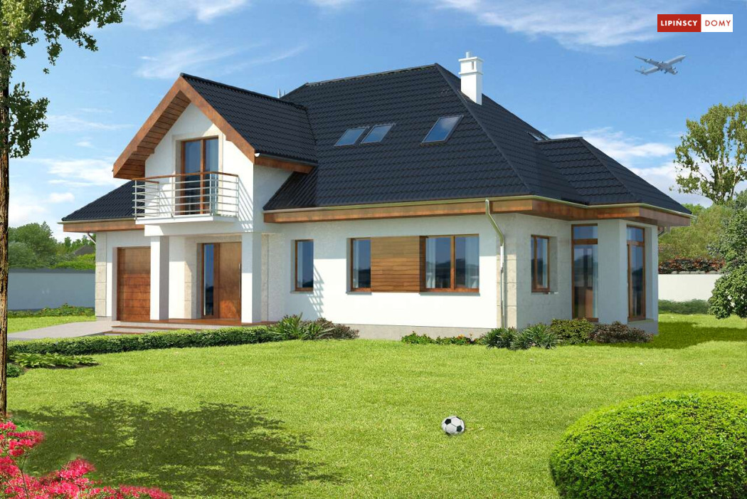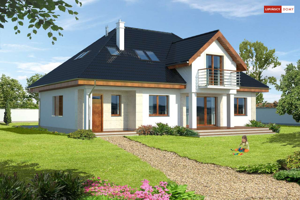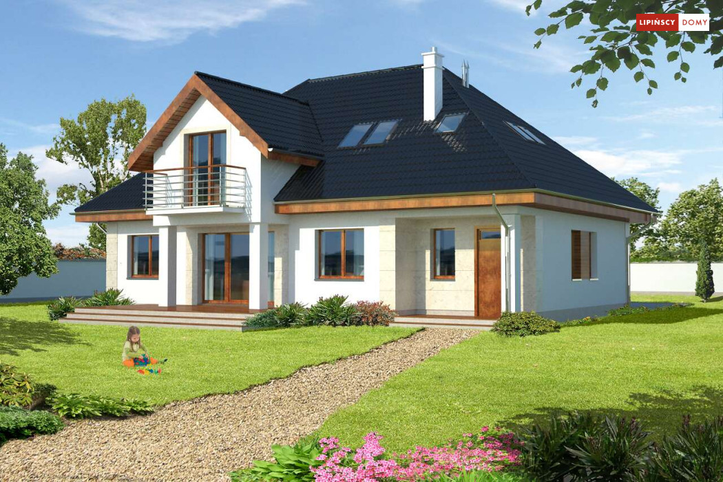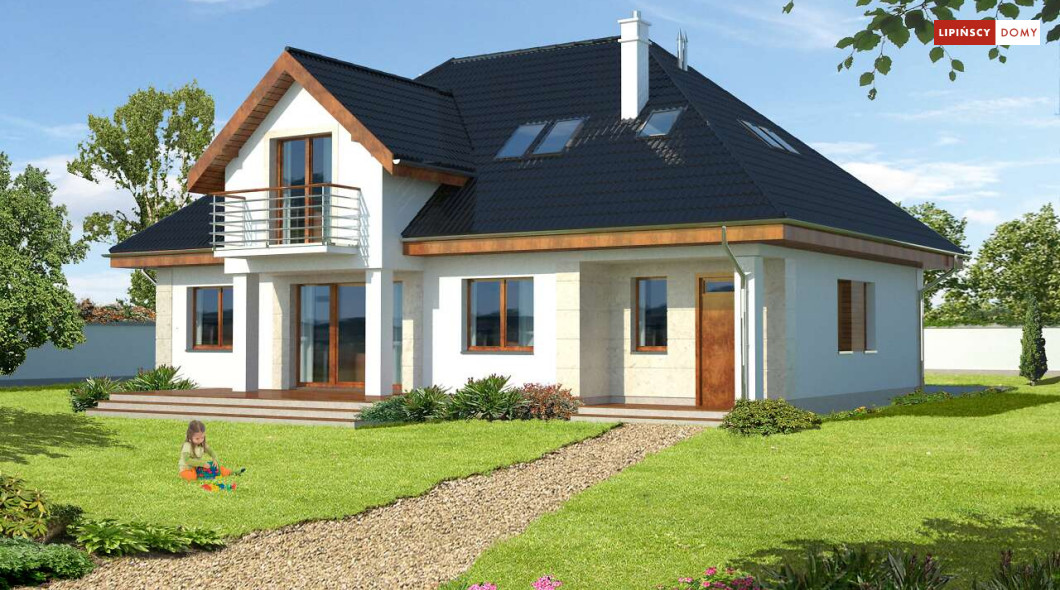 Funkcjonalny dom energooszczędny z użytkowym poddaszem, doskonały dla licznej rodziny. Ciekawa, elegancka bryła z pewnością zwraca uwagę, a funkcjonalne wnętrze gwarantuje wygodę mieszkańcom, którzy na parterze mają do dyspozycji przestronny salon z kominkiem, jadalnię, wygodną kuchnię, spiżarnię, dodatkowy pokój, pomieszczenie gospodarcze i łazienkę. Na poddaszu przewidziano cztery sypialnie, dwie garderoby, dwie łazienki i pralnię. Częściowo zadaszony taras to idealne miejsce do wypoczynku. Przewidziano także garaż, a za nim kotłownię.
