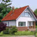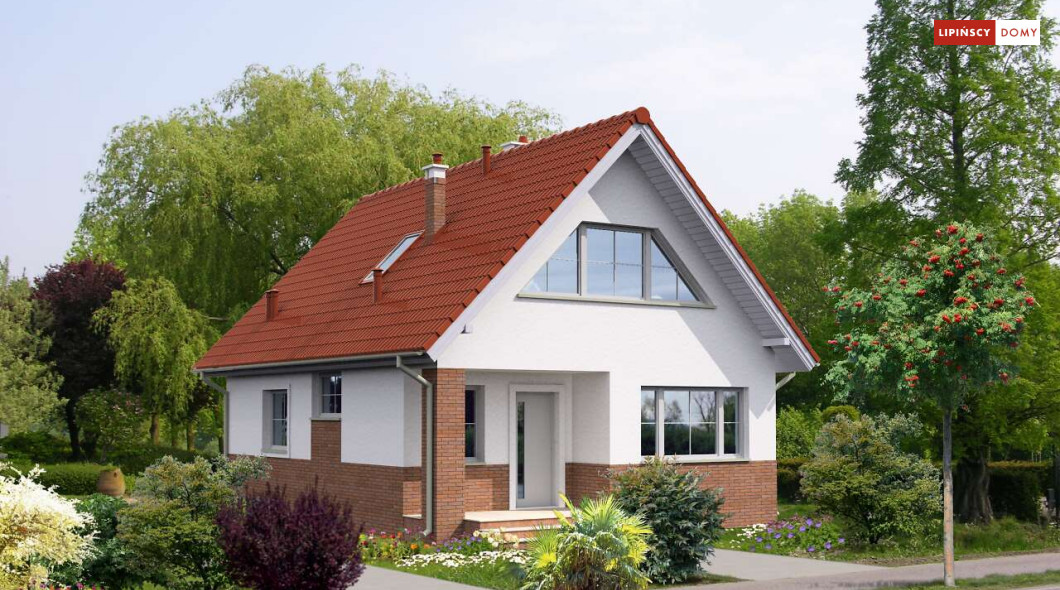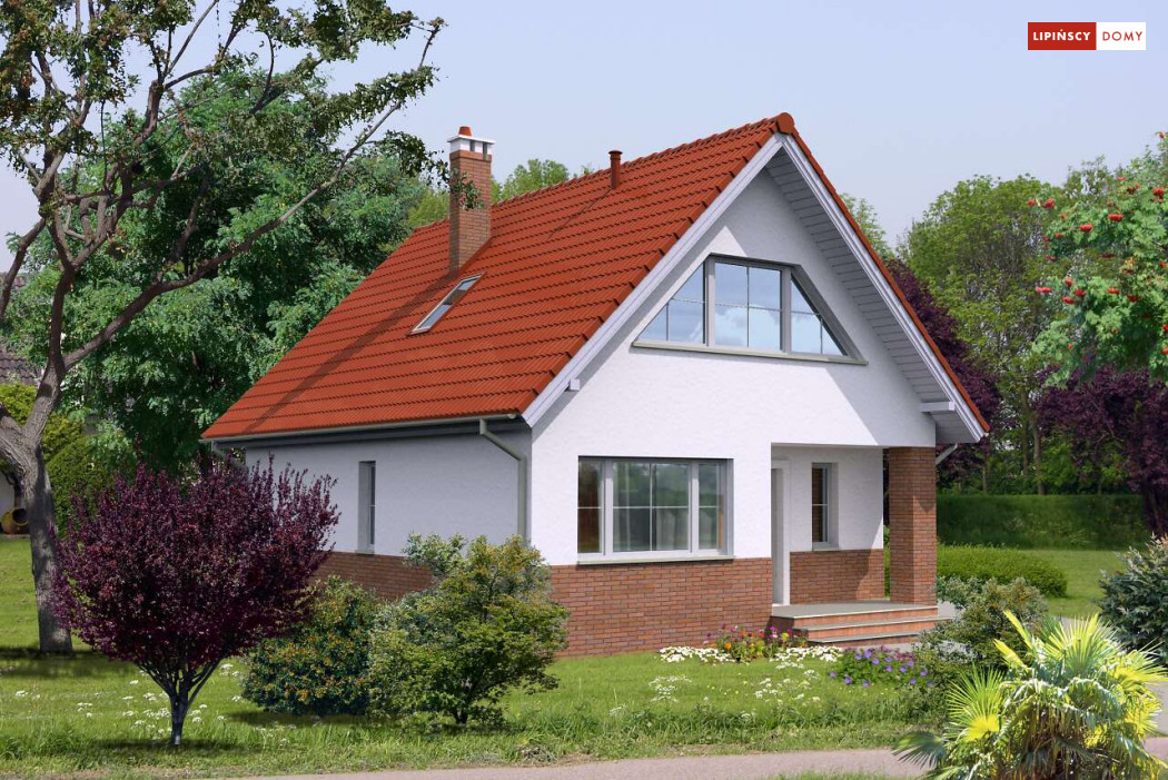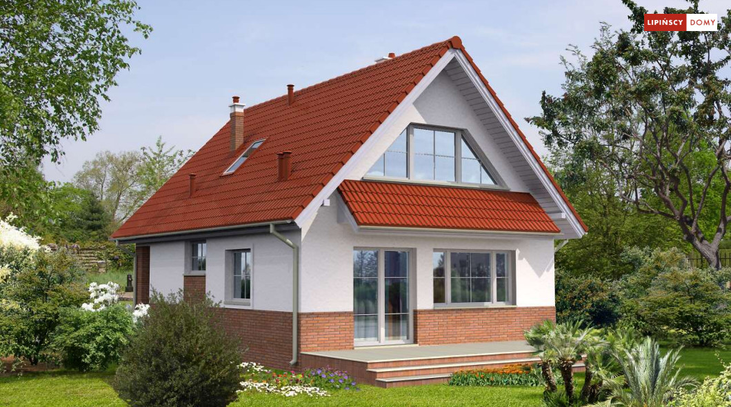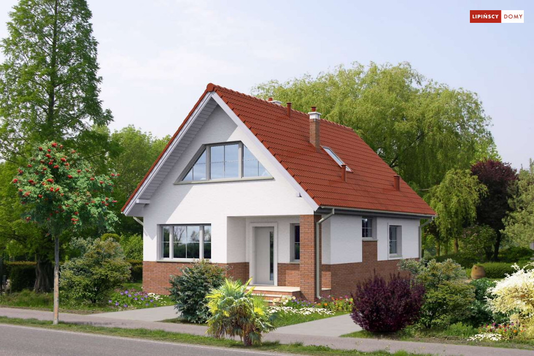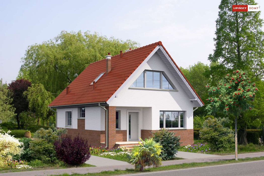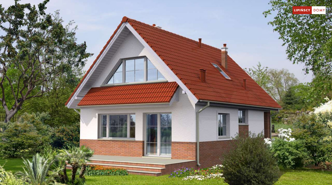 Mały zgrabny domek z dwuspadowym dachem i użytkowym poddaszem o szczytowym ustawieniu wobec drogi. Doskonała propozycja dla osób szukających wygodnego domu na niezbyt szeroką działkę. Na parterze znajduje się salon z kominkiem, aneksem kuchennym, miejscem na stół i wyjściem na częściowo zadaszony taras oraz sypialnia, łazienka i pomieszczenie gospodarcze. Poddasze kryje dwie sypialnie i wygodną łazienkę. Ozdobą domu jest wejście w podcieniu i okna o nietypowym kształcie, doskonale doświetlające oba pokoje na poddaszu. <br>