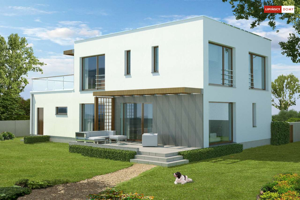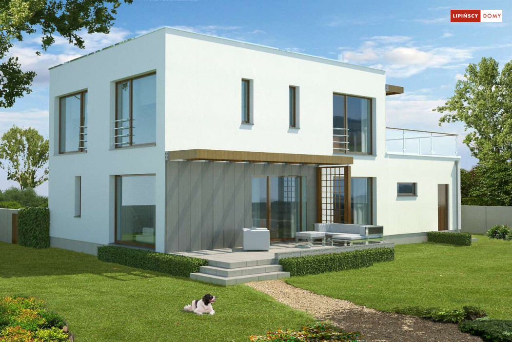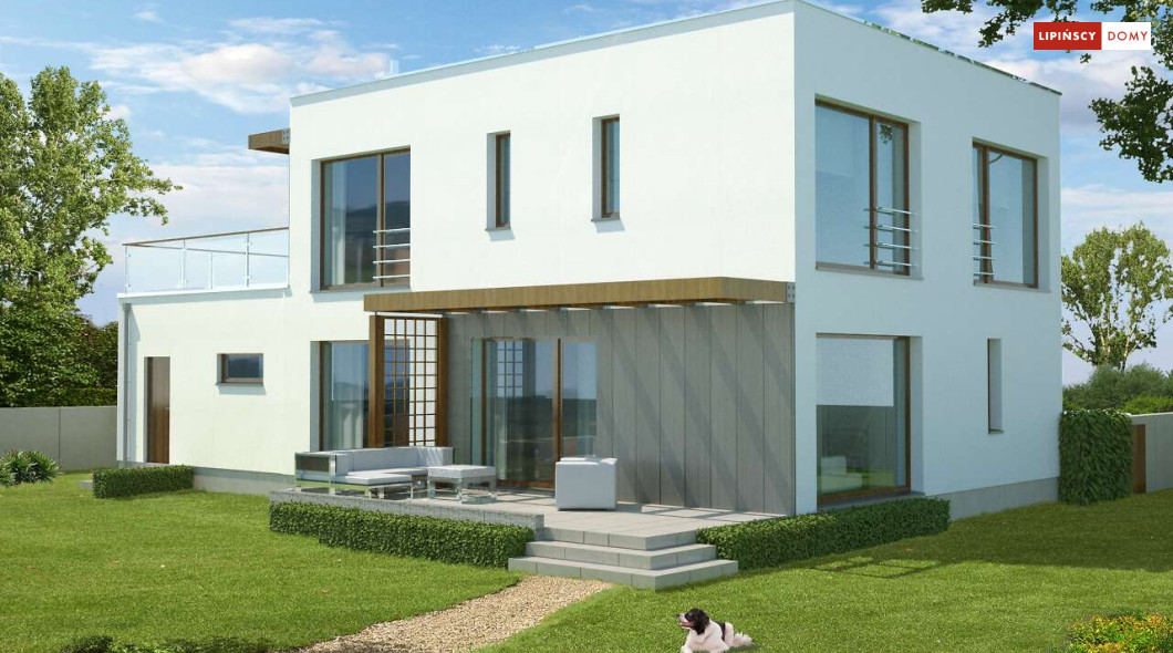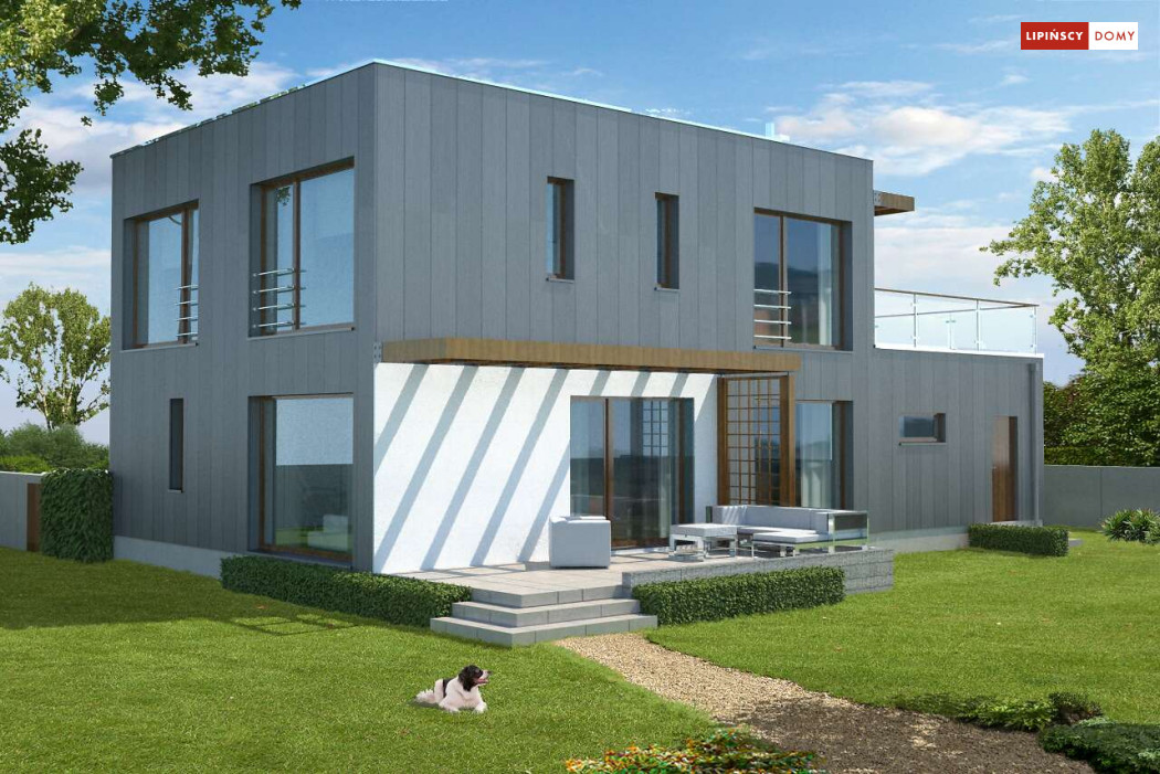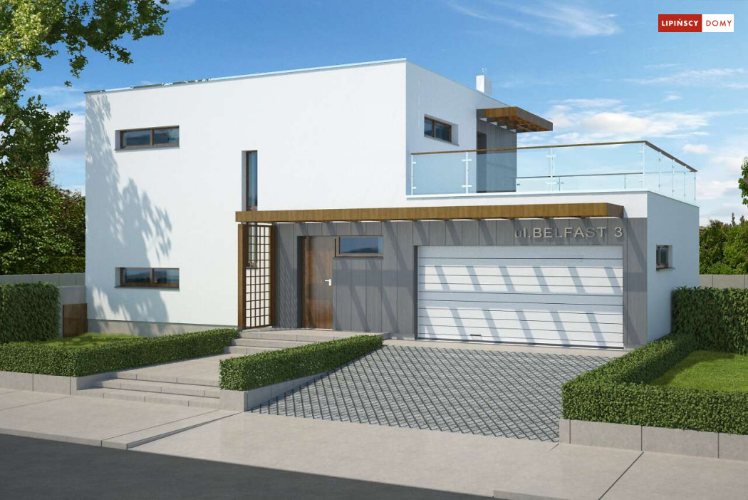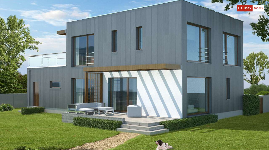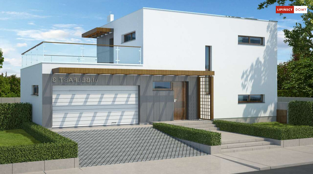 Nowoczesny dom z płaskim dachem, z dużymi przeszkleniami, nadającymi bryle lekkości i elegancji. Funkcjonalne wnętrze – parter i poddasze podzielono na strefę dzienną i nocną. Mieszkańcy mogą wspólnie spędzać czas w połączonym z kuchnią salonie, a gdy chcą nieco spokoju, mają do dyspozycji trzy zlokalizowane na parterze sypialnie. Oprócz tych pomieszczeń, jest do ich dyspozycji także osobna sypialnia na parterze, dwie łazienki, garderoba i duży, nowoczesny taras na dachu garażu.