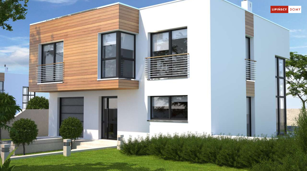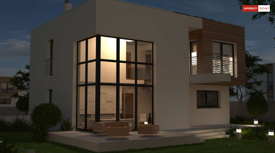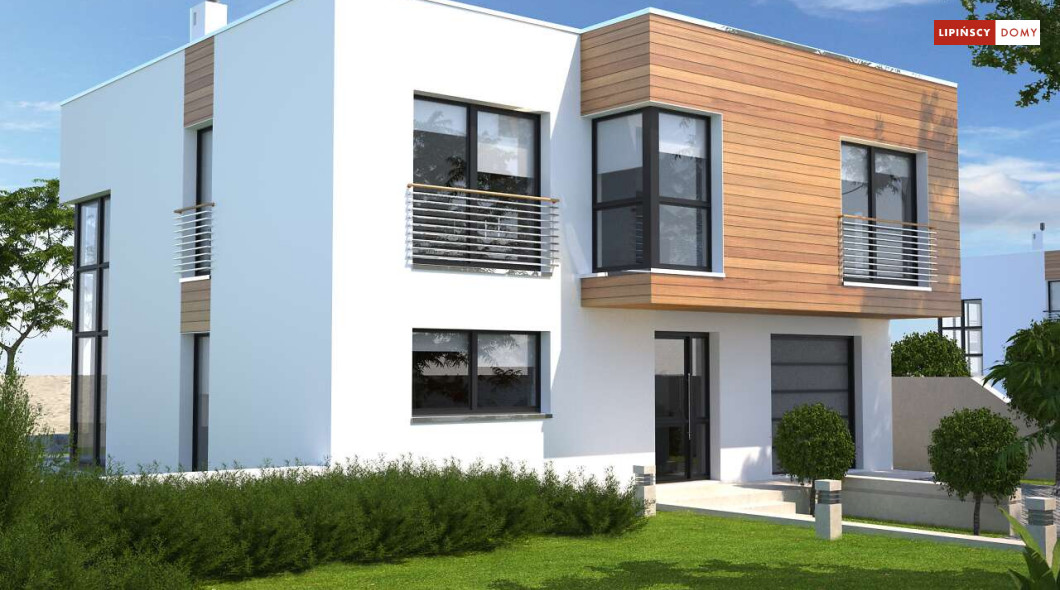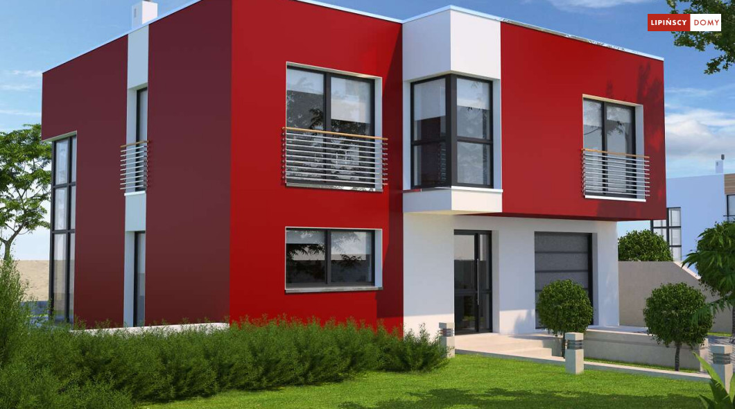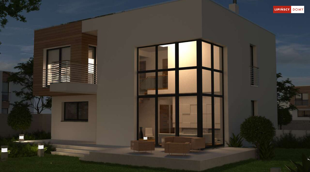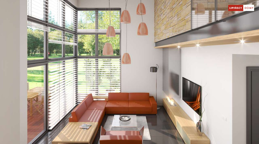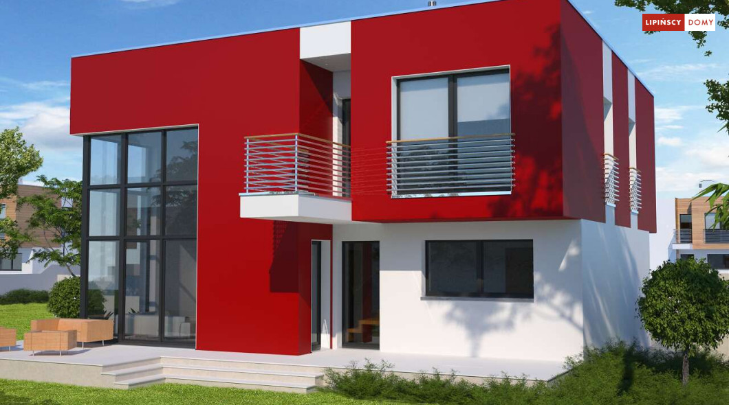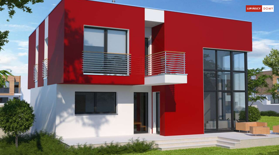 Nowoczesny, elegancki dom energooszczędny, którego bryła, dzięki zastosowaniu mocnych akcentów kolorystycznych i nowoczesnych przeszkleń, jest wyjątkowa i spodoba się miłośnikom niebanalnych rozwiązań. Dla Inwestorów, ceniących bardziej tradycyjne rozwiązania przygotowano wersję elewacji w stonowanych kolorach, z drewnianymi i metalowymi elementami. Na parterze znajduje się salon z antresolą, ustawna kuchnia z miejscem na rodzinny stół, spiżarnia i wc. Drugą kondygnację zajmują trzy sypialnie, w tym jedna z niezależną łazienką, i wspólna łazienka. Duże przeszklenia w salonie doskonale doświetlają wnętrze i są bardzo charakterystycznym elementem bryły.
