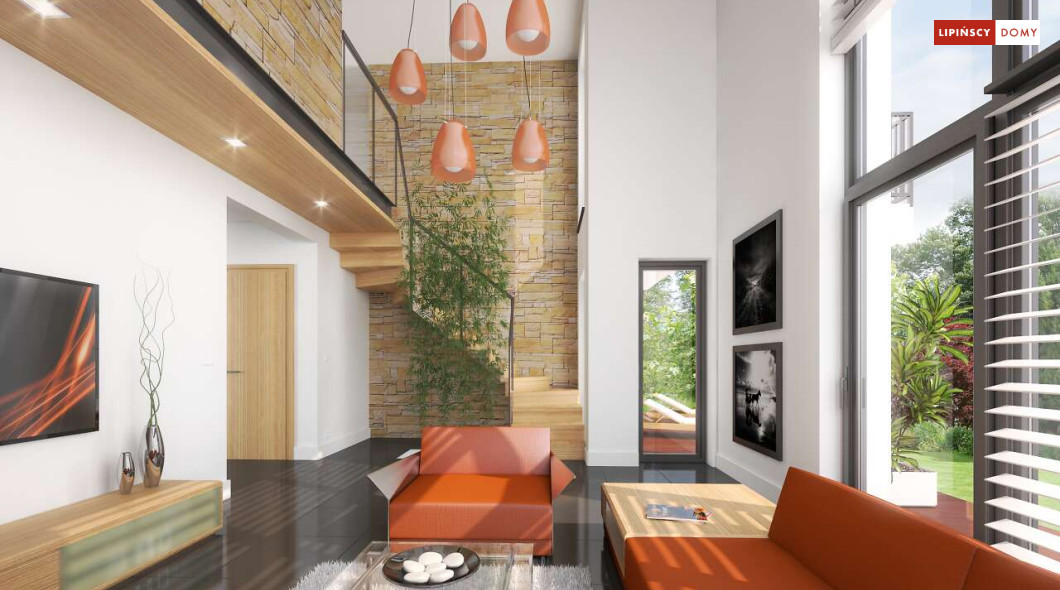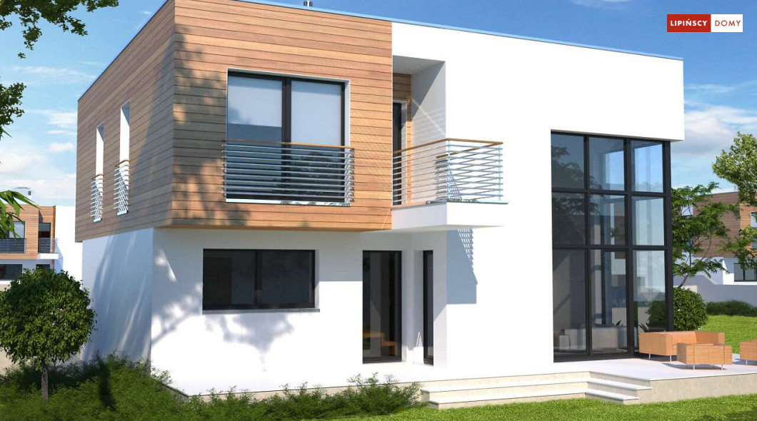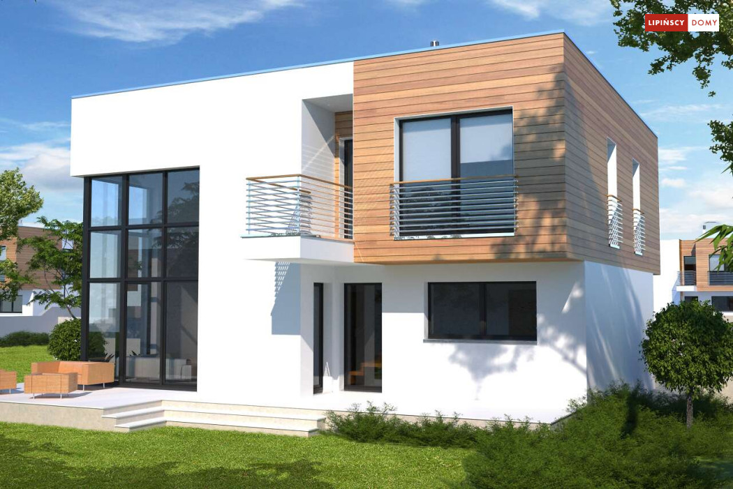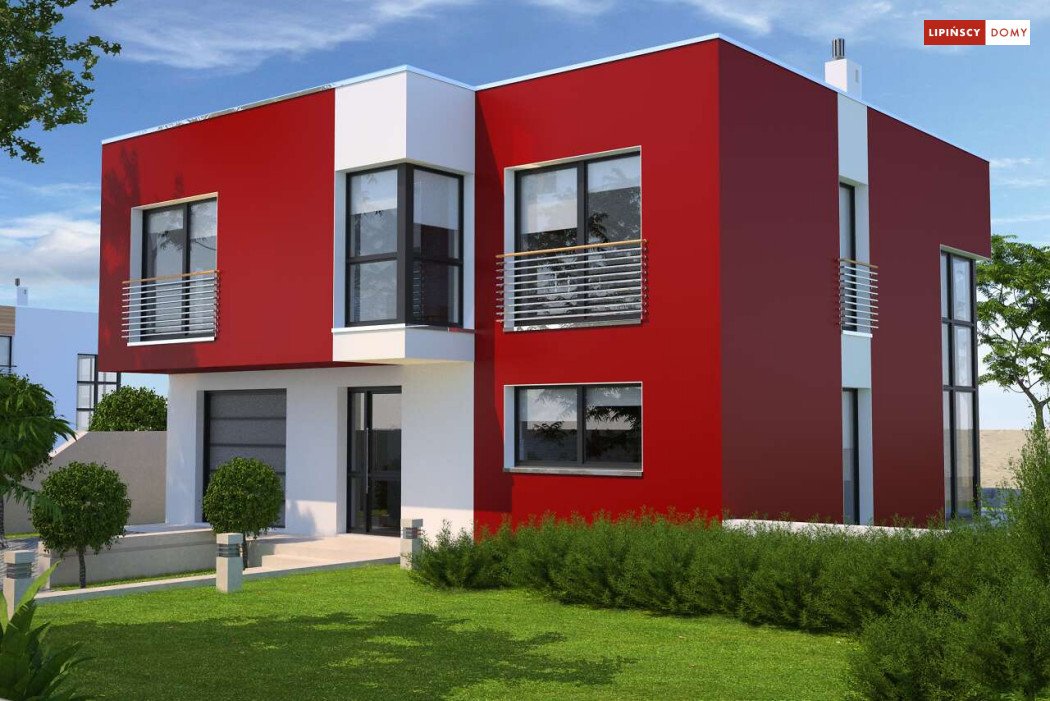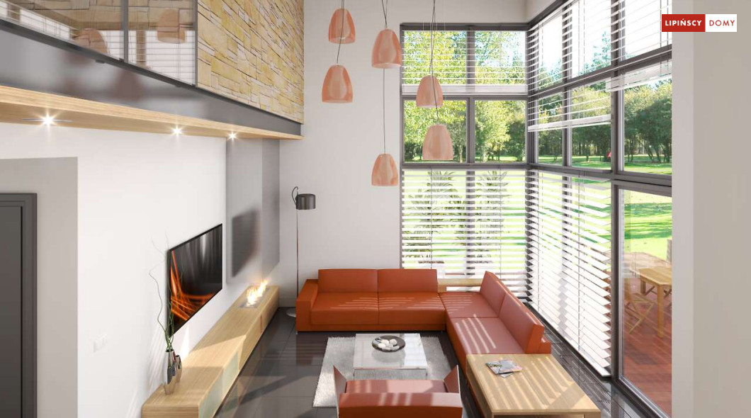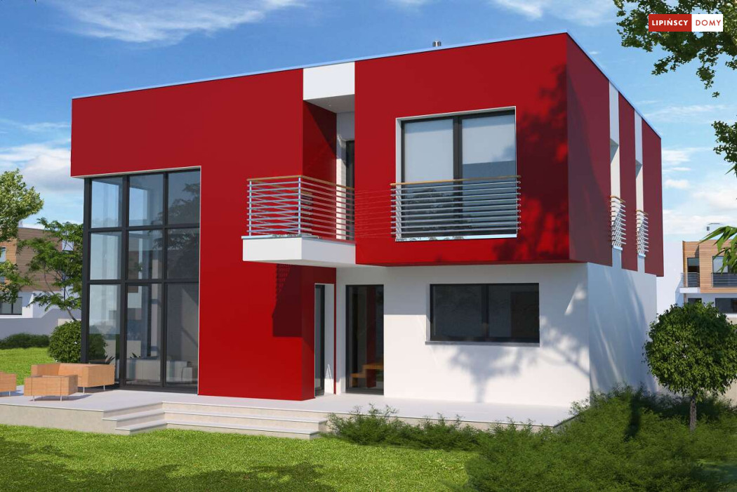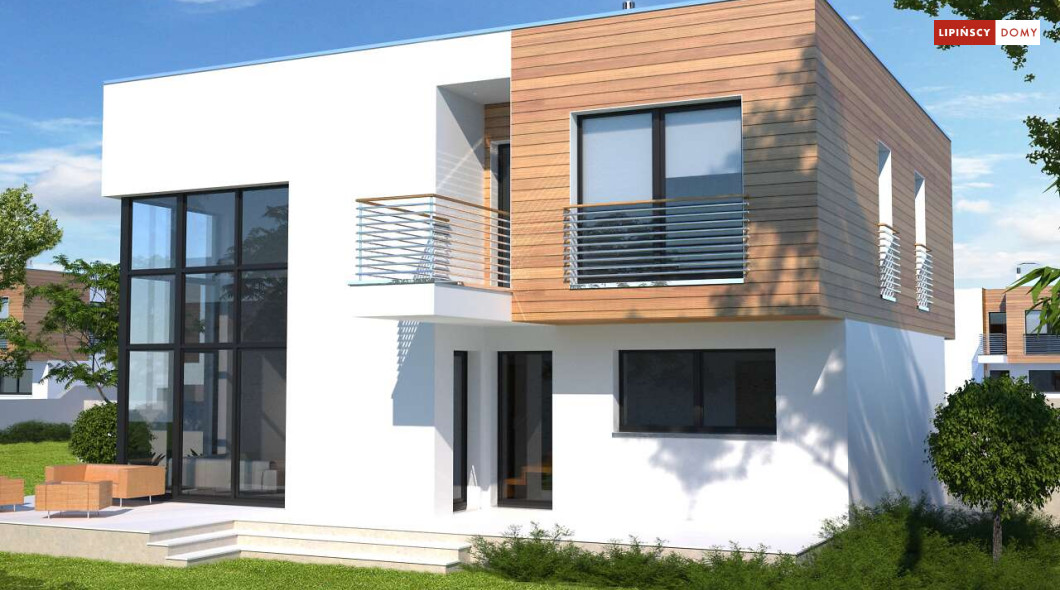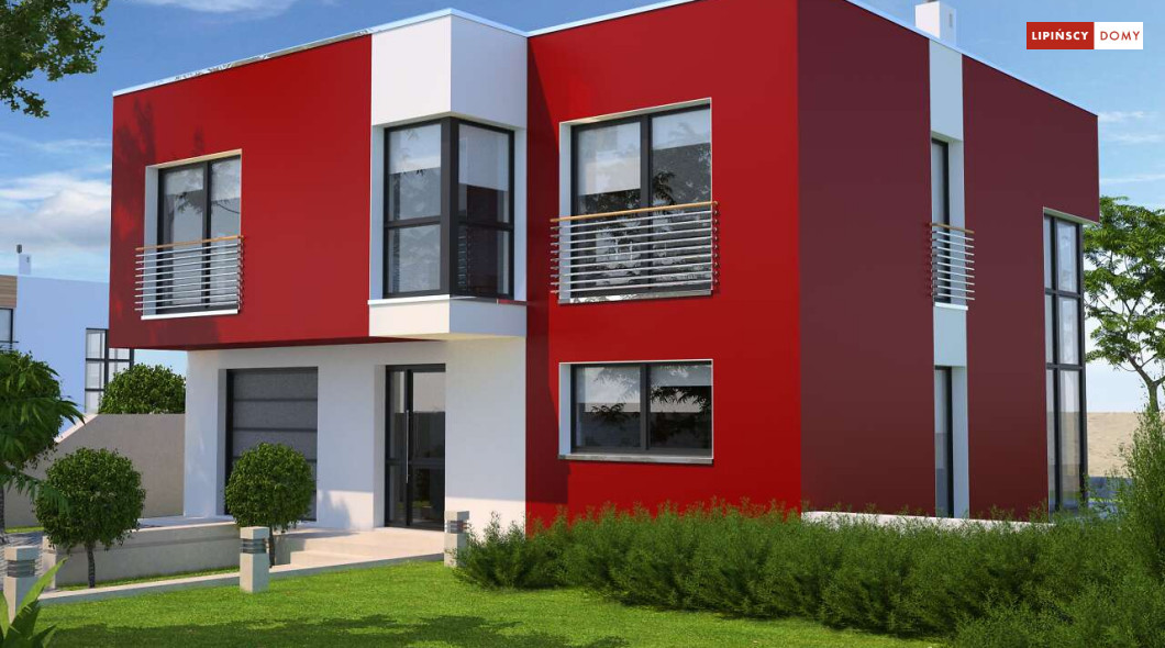 Nowoczesny, elegancki dom energooszczędny, którego bryła, dzięki zastosowaniu mocnych akcentów kolorystycznych i nowoczesnych przeszkleń, jest wyjątkowa i spodoba się miłośnikom niebanalnych rozwiązań. Dla Inwestorów, ceniących bardziej tradycyjne rozwiązania przygotowano wersję elewacji w stonowanych kolorach, z drewnianymi i metalowymi elementami. Na parterze znajduje się salon z antresolą, ustawna kuchnia z miejscem na rodzinny stół, spiżarnia i wc. Drugą kondygnację zajmują trzy sypialnie, w tym jedna z niezależną łazienką, i wspólna łazienka. Duże przeszklenia w salonie doskonale doświetlają wnętrze i są bardzo charakterystycznym elementem bryły.