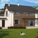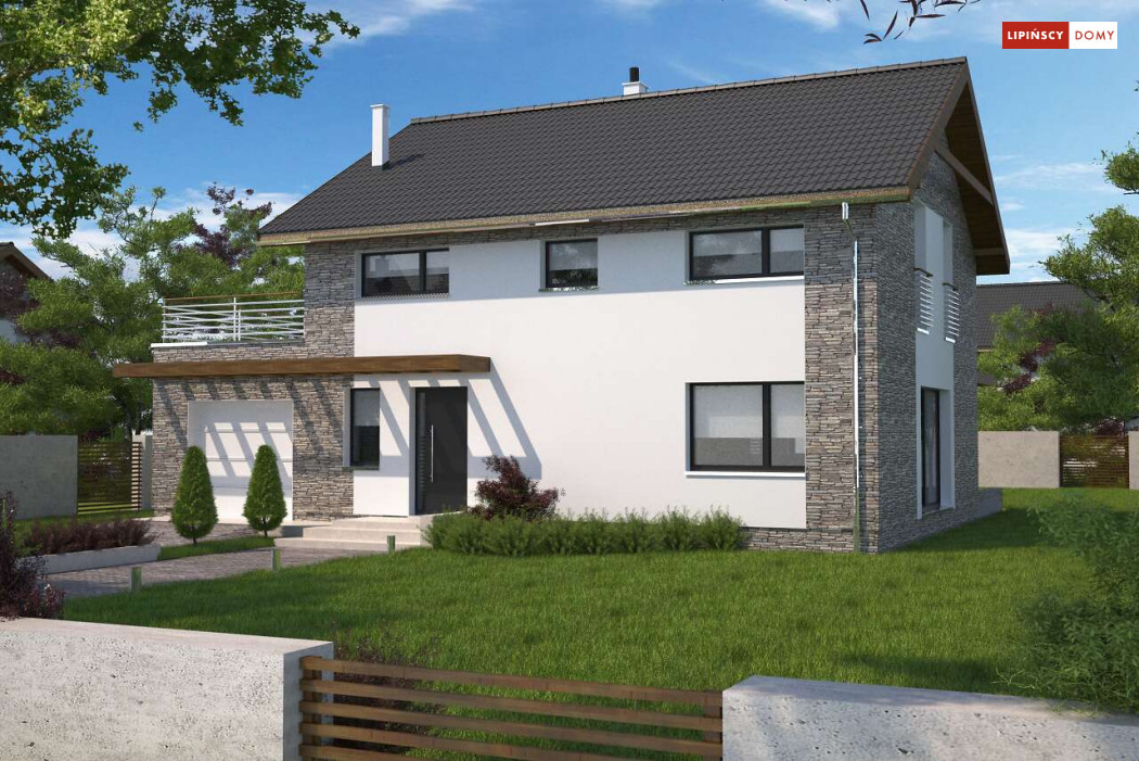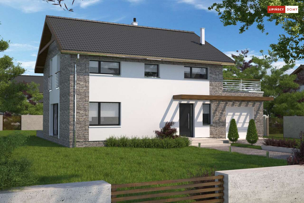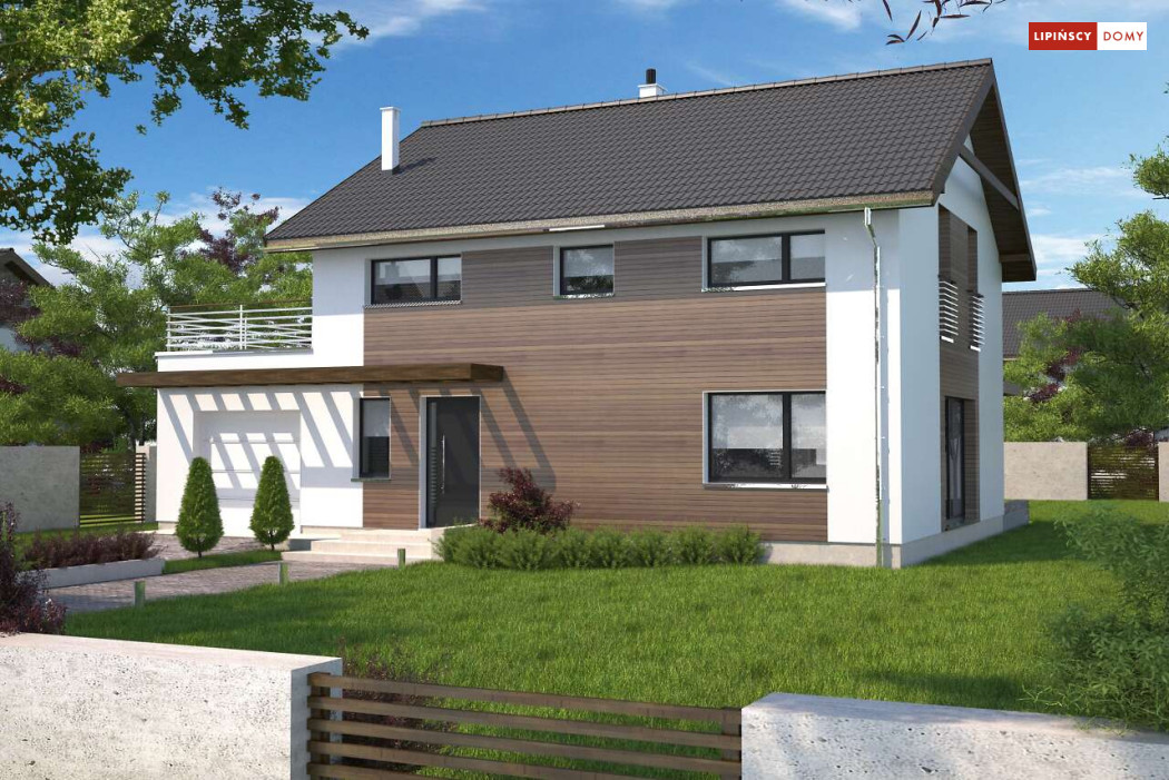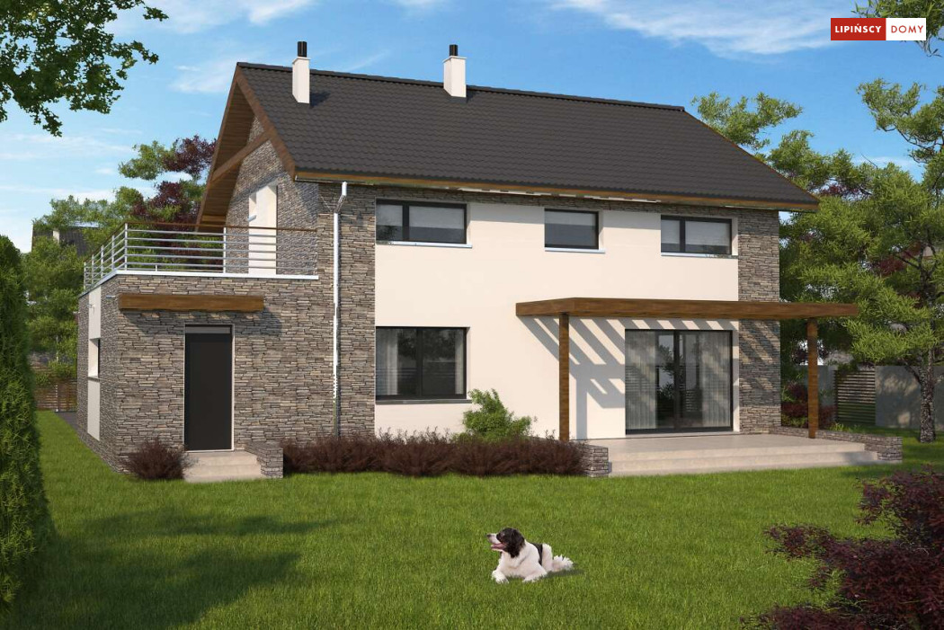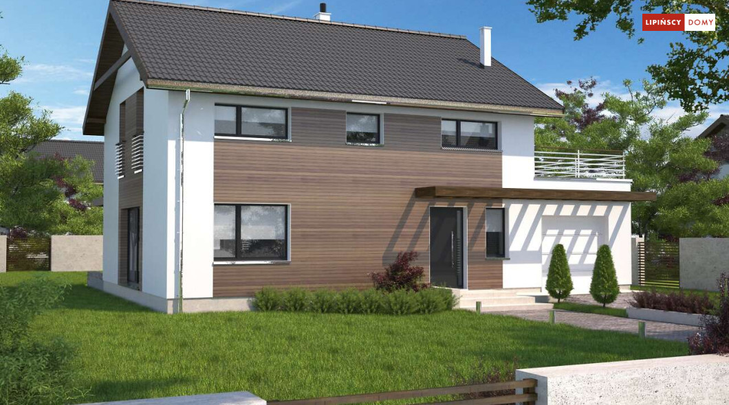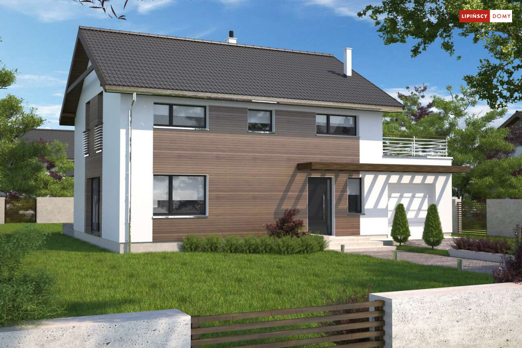 Wygodny dom energooszczędny z użytkowym poddaszem, kolejna wersja Nikko (DCP264), w której zrezygnowaliśmy z wykusza w pokoju dziennym oraz zaplanowaliśmy dodatkową sypialnię na poddaszu. Do dyspozycji mieszkańców jest więc część wspólna na parterze, z salonem z kominkiem, kuchnią ze spiżarnią, gabinetem, łazienką i wc oraz część nocna na poddaszu z czterema sypialniami, dwiema łazienkami i tarasem nad garażem. Zlokalizowana za garażem kotłownia ma niezależne wyjście na zewnątrz, a do garażu można wejść bezpośrednio z domu. Tras od strony ogrodowej został ozdobiony pergolą, która także chroni przed nadmiernym słońcem.