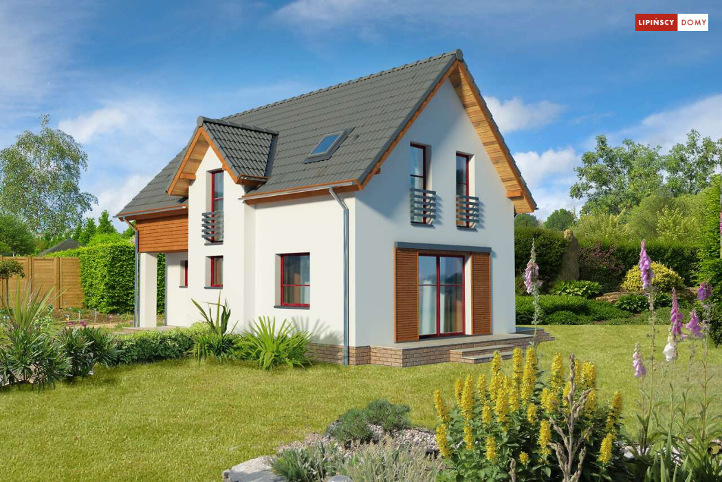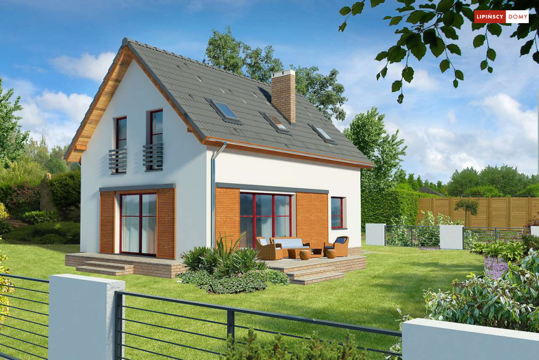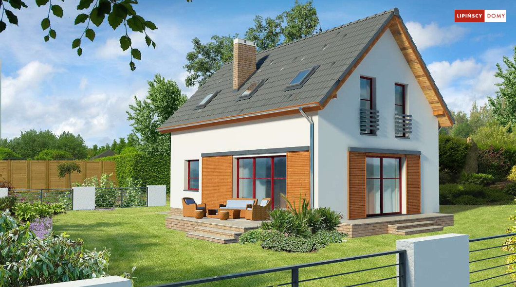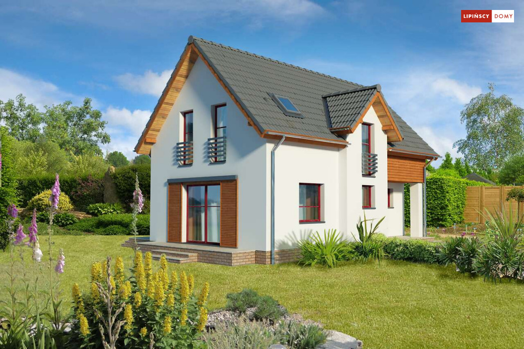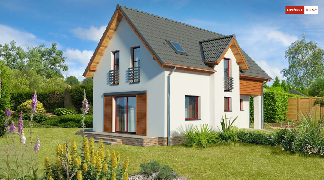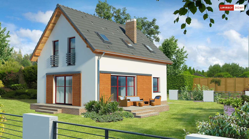 Energooszczędny dom z użytkowym poddaszem, z ciekawymi elementami drewnianymi i metalowymi w elewacji. Na parterze znajduje się kuchnia, wygodny salon, obszerny wiatrołap, wc i kotłownia. Poddasze zajmują trzy ustawne sypialnie i jasna, duża łazienka. Prostą bryłę uatrakcyjnia ciekawe rozwiązanie klatki schodowej. Ten przytulny dom to doskonała propozycja dla osób szukających projektu funkcjonalnego i niedrogiego w późniejszej eksploatacji.