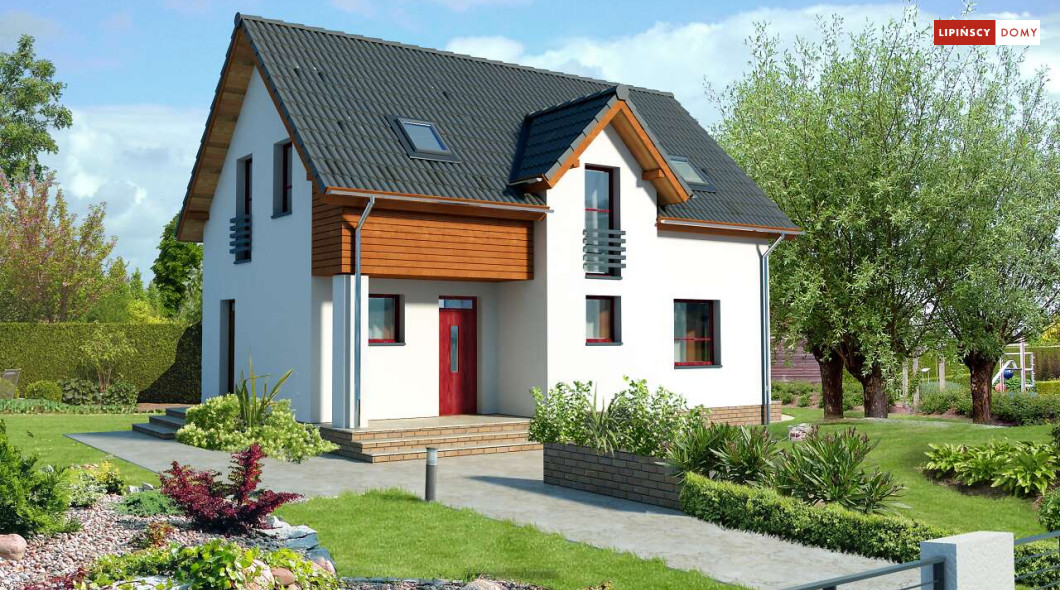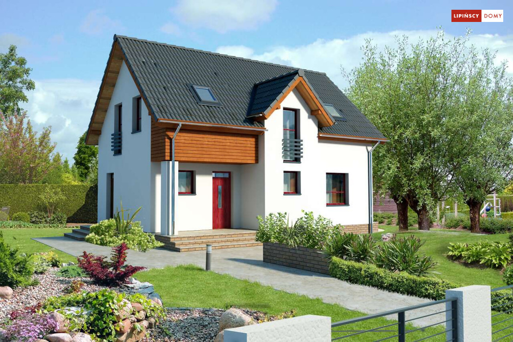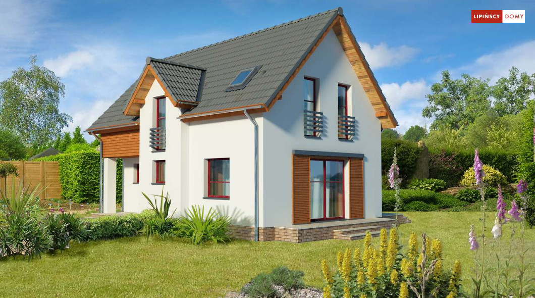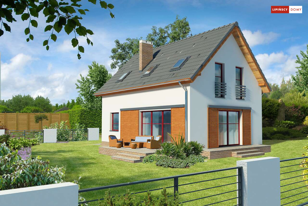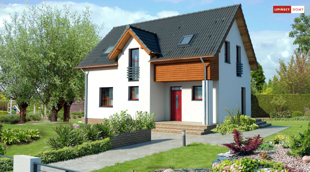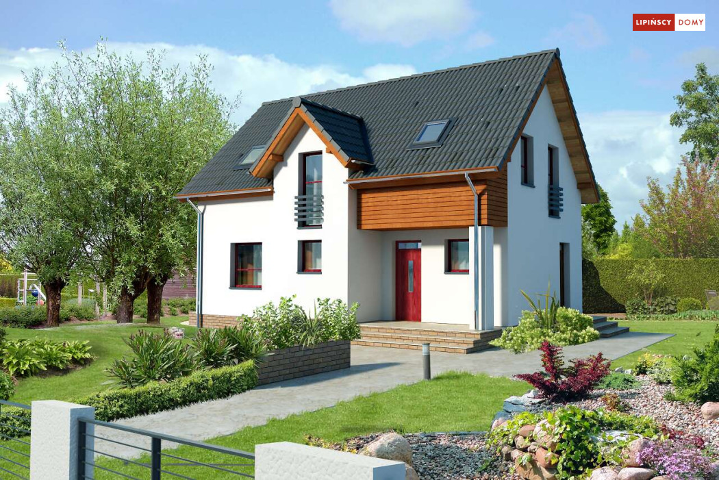 Energooszczędny dom z użytkowym poddaszem, z ciekawymi elementami drewnianymi i metalowymi w elewacji. Na parterze znajduje się kuchnia, wygodny salon, obszerny wiatrołap, wc i kotłownia. Poddasze zajmują trzy ustawne sypialnie i jasna, duża łazienka. Prostą bryłę uatrakcyjnia ciekawe rozwiązanie klatki schodowej. Ten przytulny dom to doskonała propozycja dla osób szukających projektu funkcjonalnego i niedrogiego w późniejszej eksploatacji.
