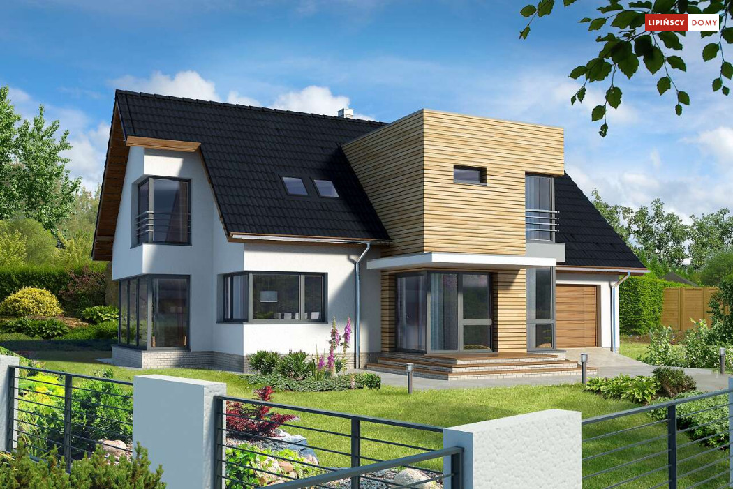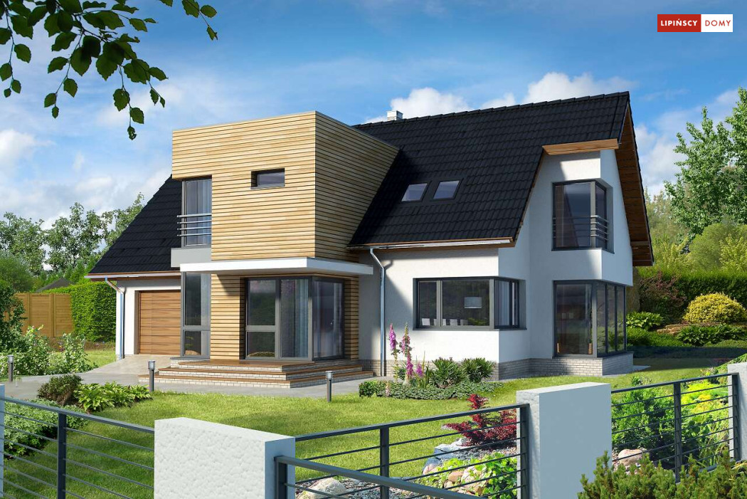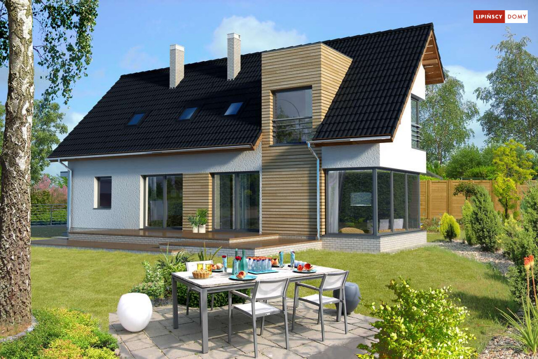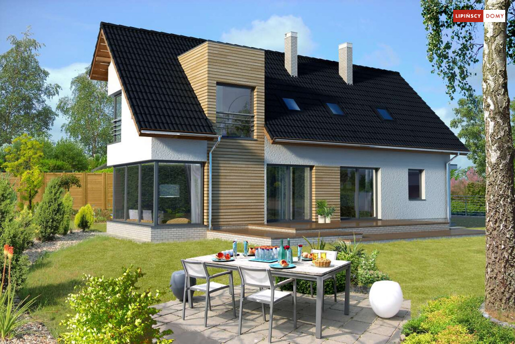 W tym energooszczędnym domu jednym z głównych architektów wnętrza jest światło. Salon jest praktycznie tylko w kilku miejscach osłonięty pełnymi ścianami – reszta to otwarta na ogród przestrzeń. Wnętrze tego domu będzie pięknie wyglądać wieczorem, gdy rozświetlone będzie kojarzyć się z oazą rodzinnego ciepła i eleganckich przyjęć. Strefa prywatna została usytuowana na poddaszu, którego sercem jest sypialnia rodziców z własną łazienką. Ciekawie rozrzeźbiona bryła domu nadaje mu wyjątkowego charakteru, którego dominantą jest kubistyczna bryła schodów.