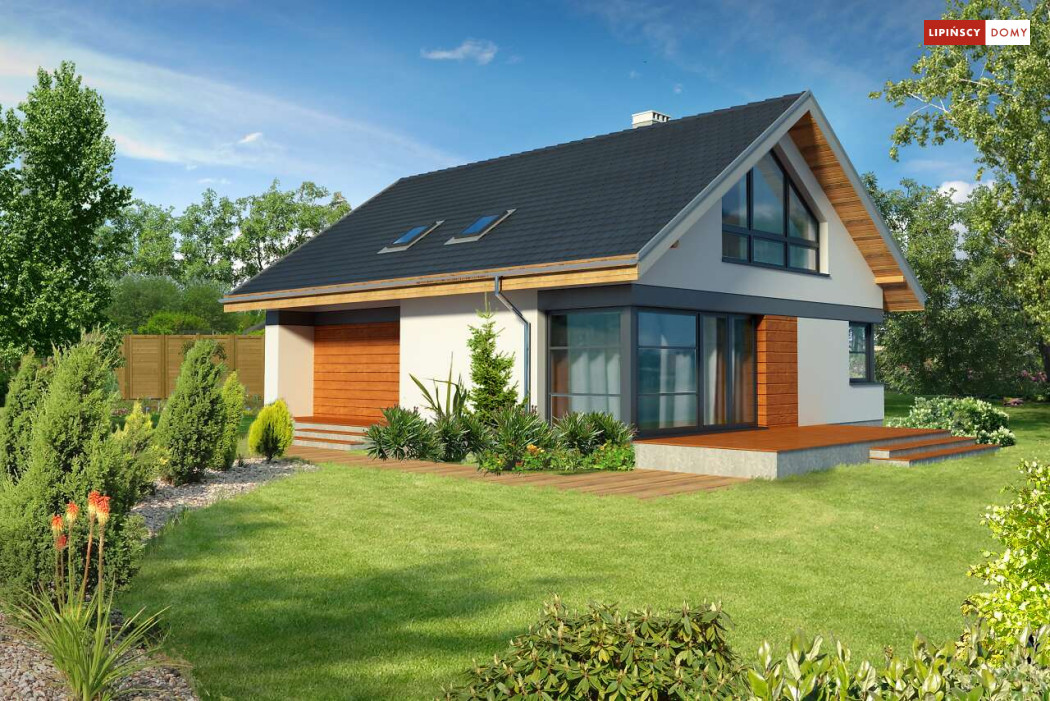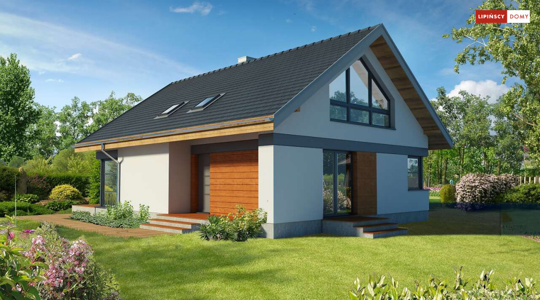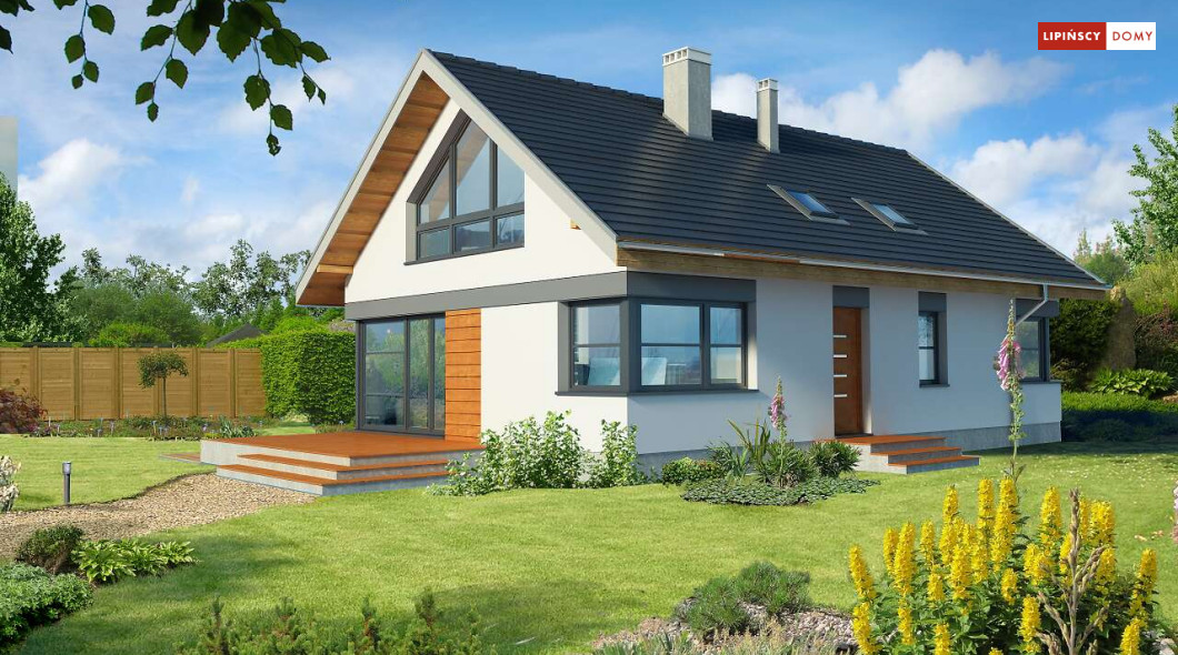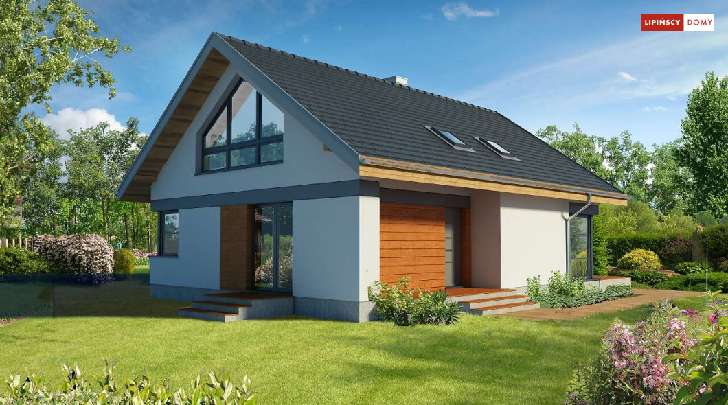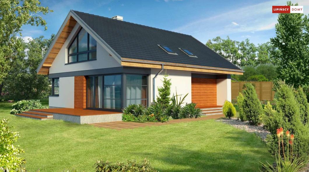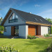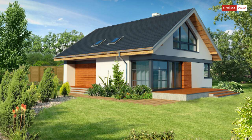 Ten projekt wyraźnie pasuje na działki z wjazdem od południa. Nowoczesny styl i prosto zarysowana bryła spodobają się miłośnikom czytelnych i prostych rozwiązań. Harmonijnie skomponowana elewacja z dodatkiem drewnianych elementów wykończenia jest lekka i czysta w odbiorze. Układ pomieszczeń to przestronna część dzienna, pięknie doświetlona oknami narożnymi. Dwie sypialnie na parterze pozwalają na etapową budowę domu. Plusem tego domu jest także to, że wszystkie pomieszczenia sanitarne są usytuowane w jednej części domu, co pozwala zaoszczędzić na instalacjach.
