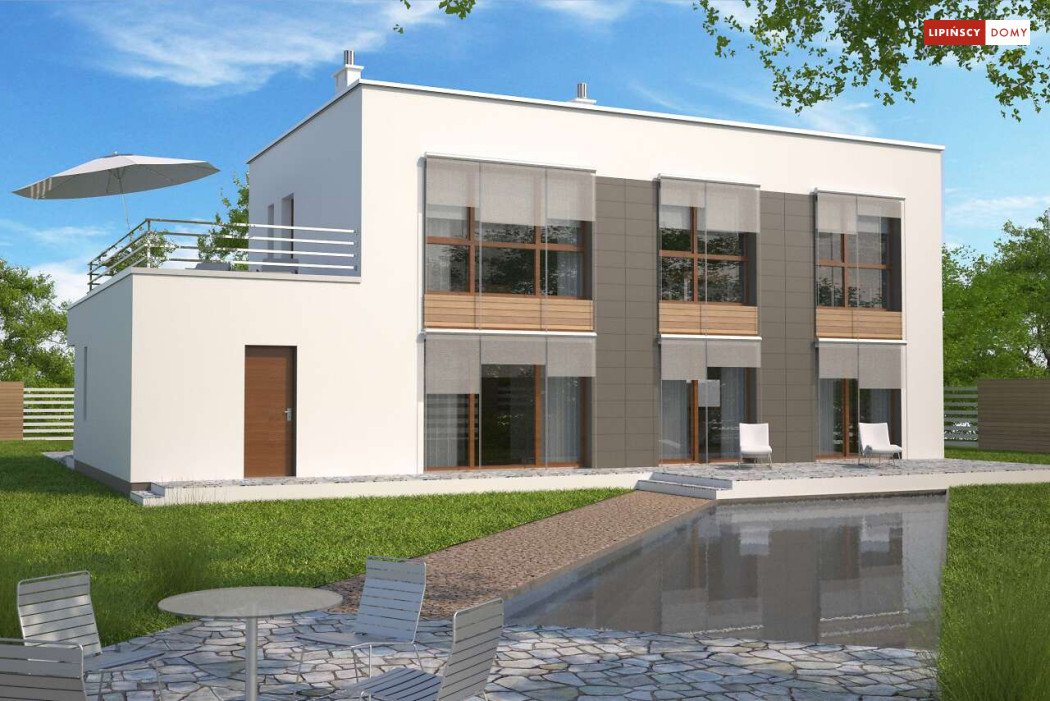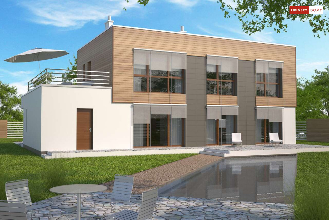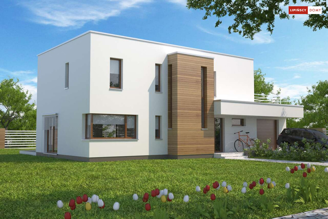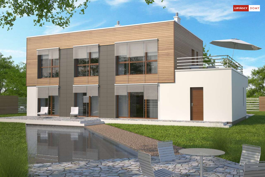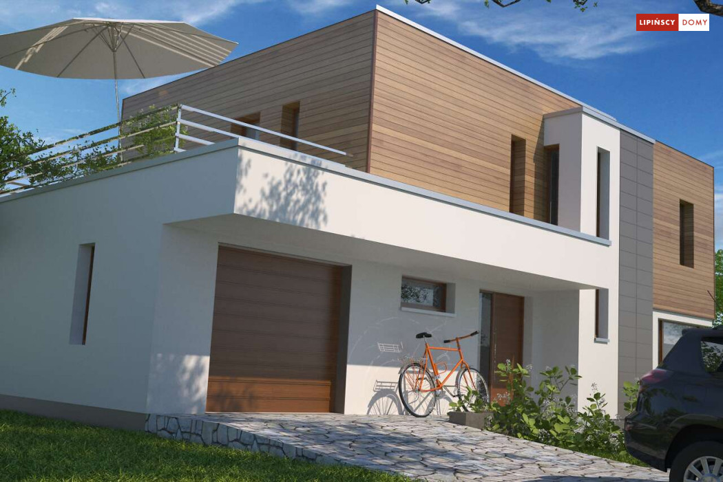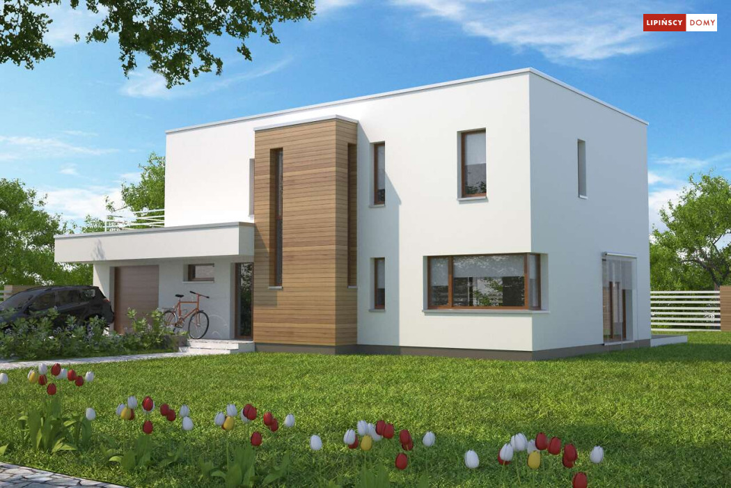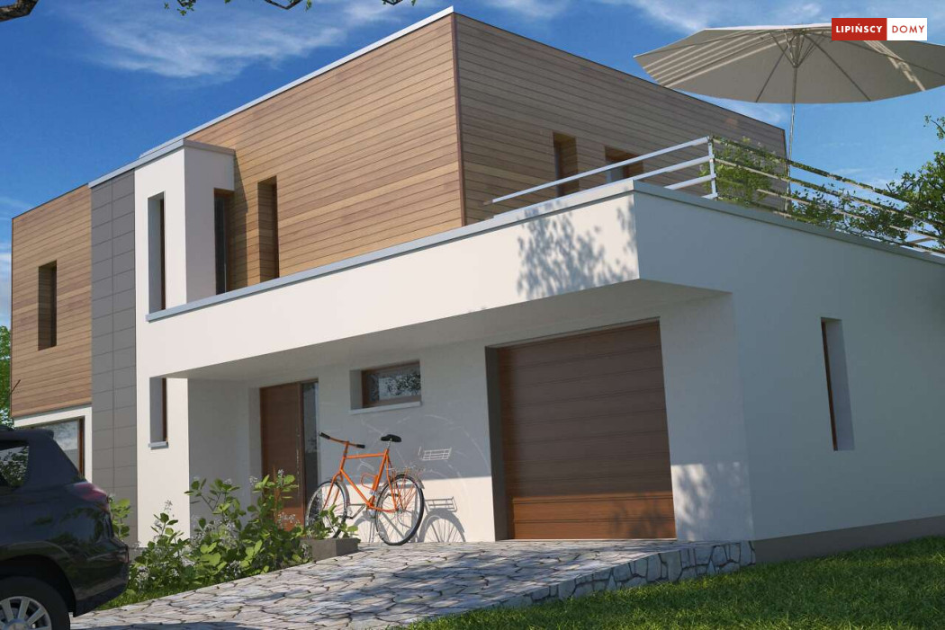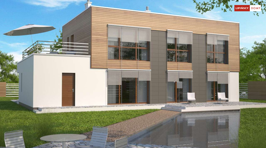 Nowoczesny dom energooszczędny z pełnym piętrem o bardzo funkcjonalnie zaplanowanych pomieszczeniach. Na uwagę zasługuje osobny apartament rodziców z własną garderobą i łazienką – obie oświetlone naturalnym światłem. Z apartamentu dostępny jest taras nad garażem. Przestronna część dzienna z salonem i jadalnią, a także dodatkowy pokój na parterze otwiera się na ogród, dzięki dużym przeszkleniom. Do garażu można przejść bezpośrednio z ładnie doświetlonego wiatrołapu z dużą szafą.