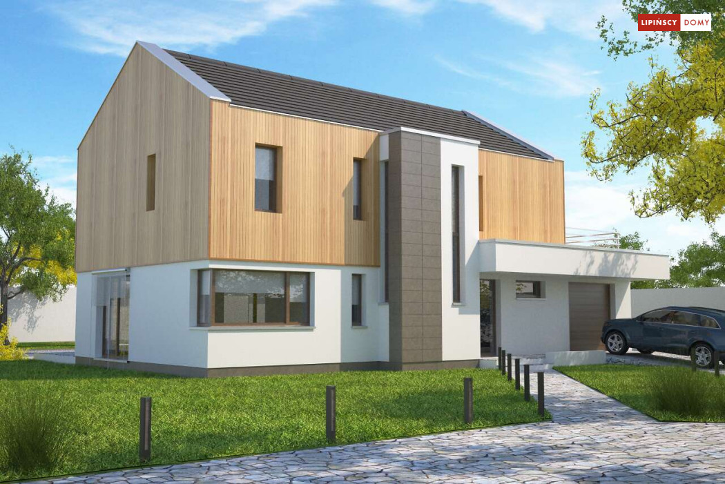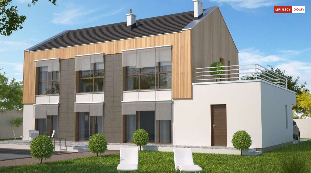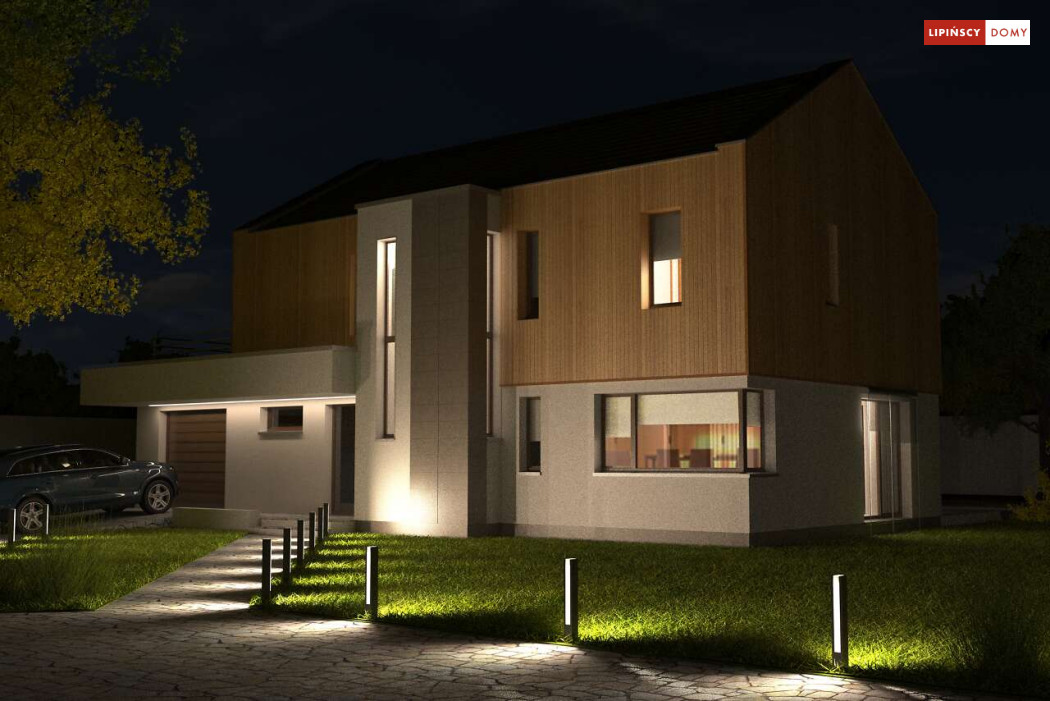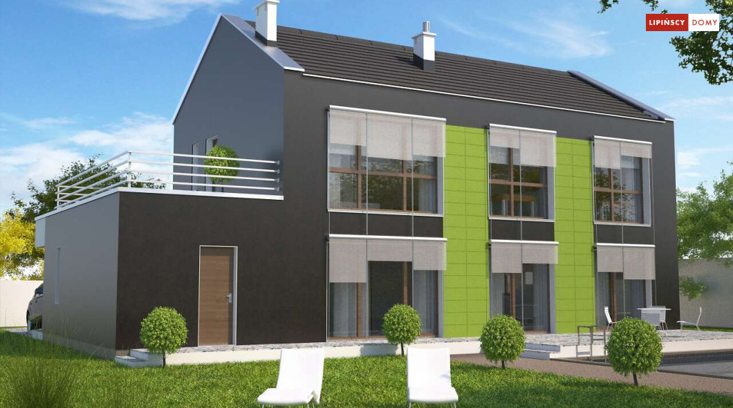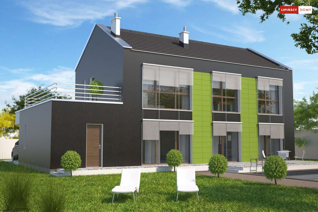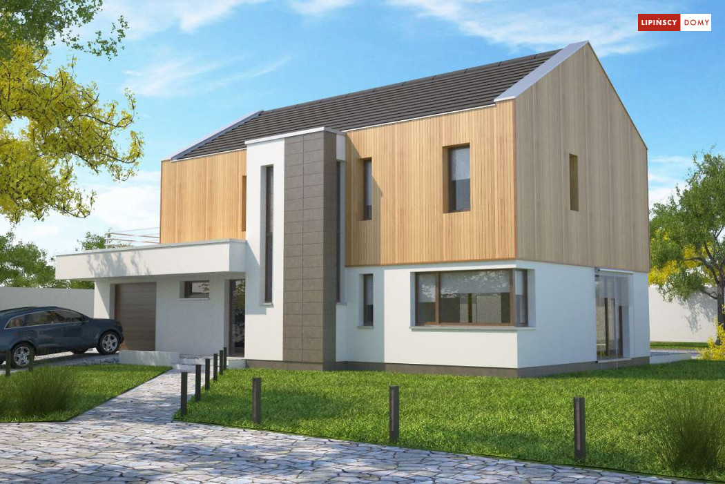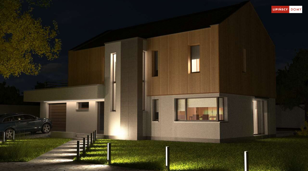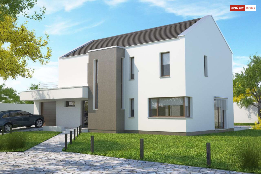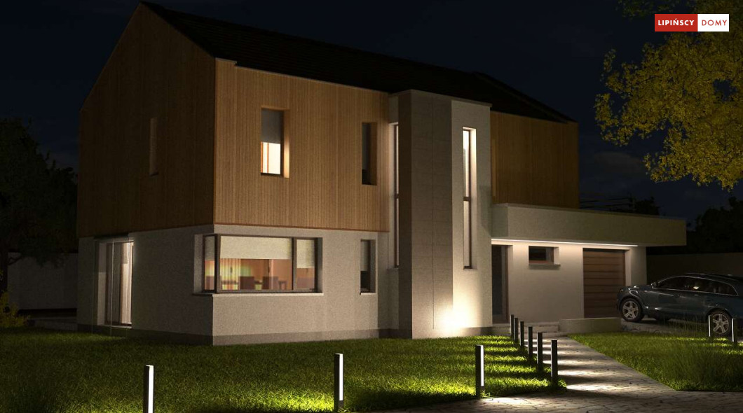 Kolejna, ciekawa odsłona projektu Santos, w którym wprowadzono dach spadzisty i przykuwającą wzrok czarną elewację, urozmaiconą zielonymi wstawkami. Wnętrza natomiast to bardzo funkcjonalny układ części dziennej, z nowoczesnym, otwartym salonem i dodatkowym pokojem, mogącym pełnić funkcję gabinetu. Na piętrze znajdują się trzy sypialnie, usytuowane od strony południowej. Największa z nich posiada osobną łazienkę i garderobą, a także wyjście na taras nad garażem. W domu znajduje się także szereg praktycznych pomieszczeń, jak pralnia spiżarnia, czy pomieszczenie techniczne za garażem. Dostępna jest również wersja projektu z podwójnym garażem, na wąska działkę.