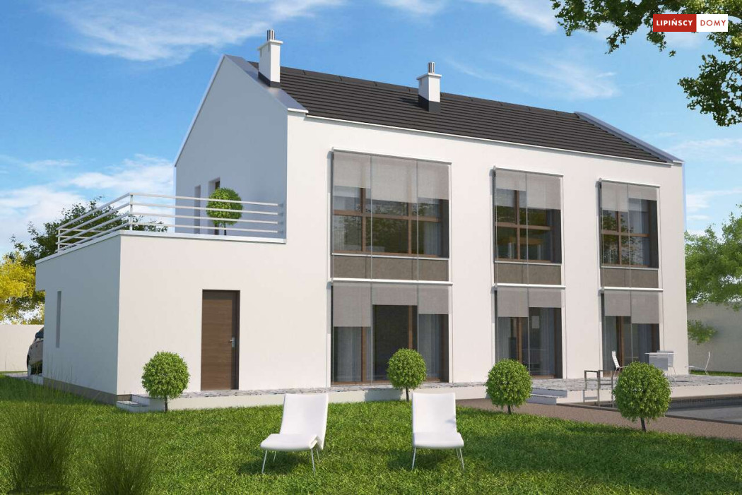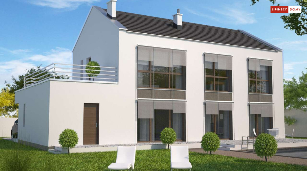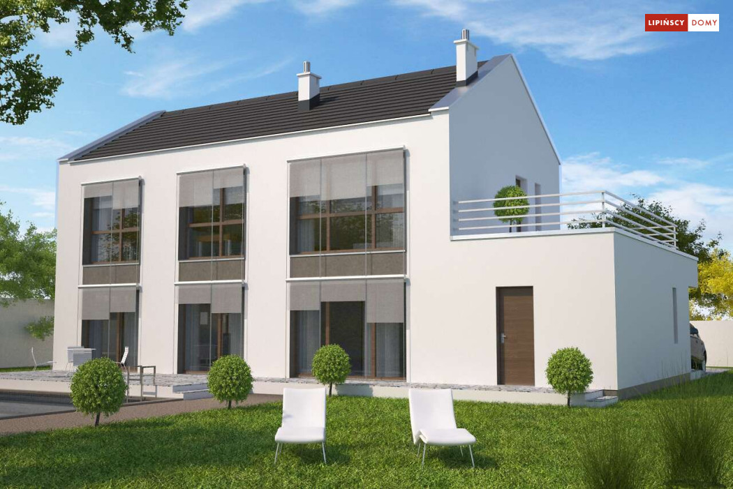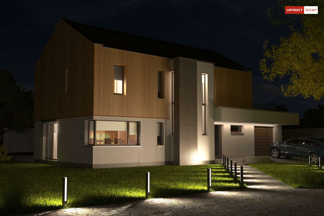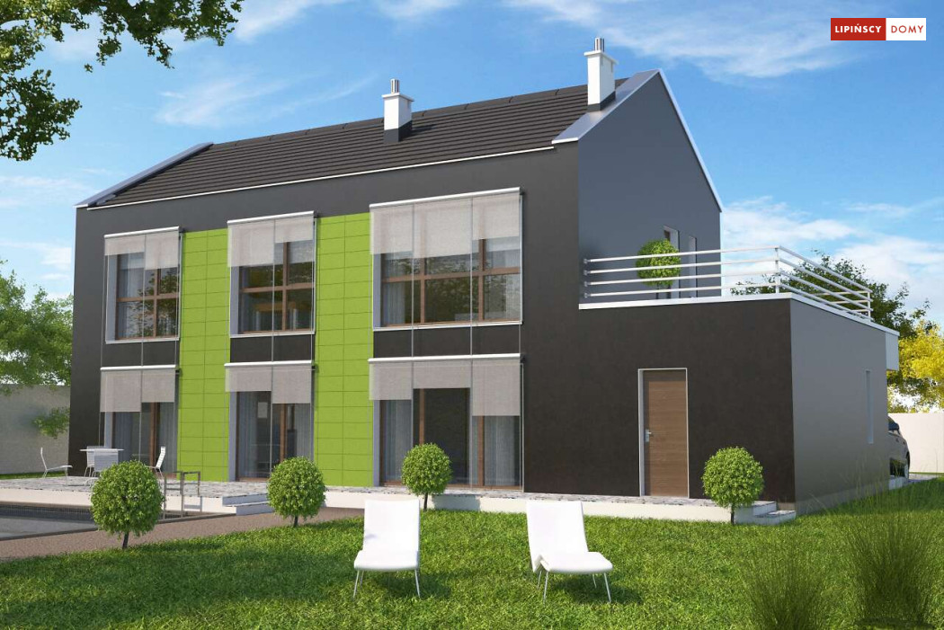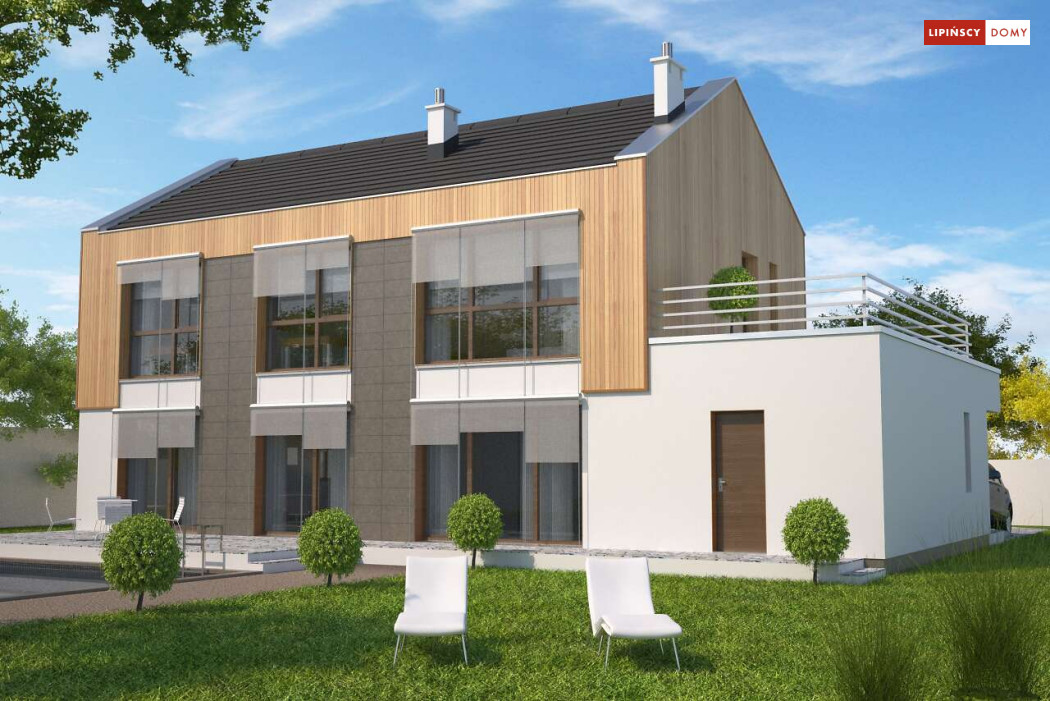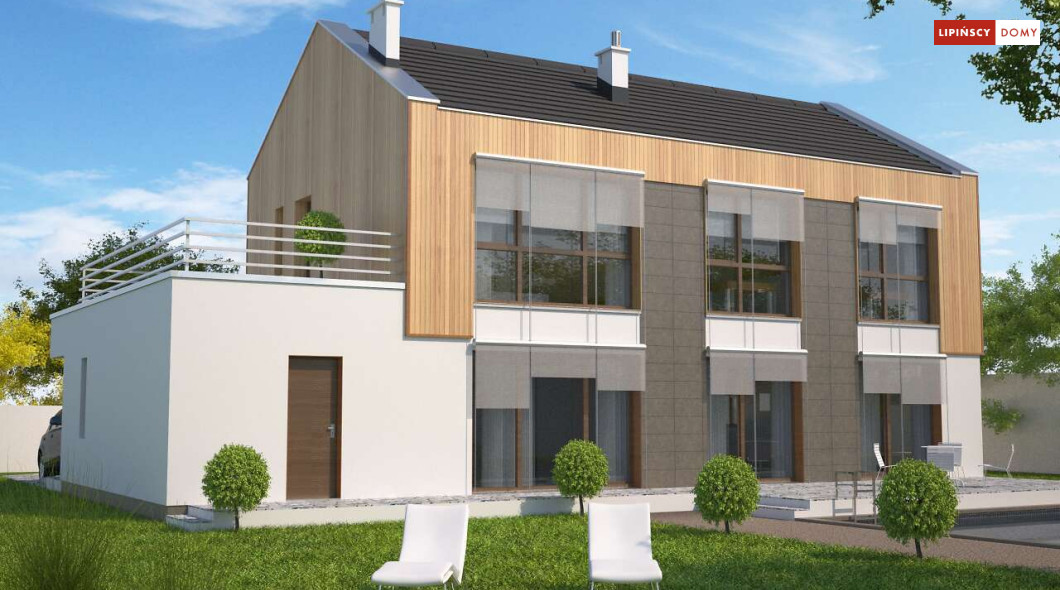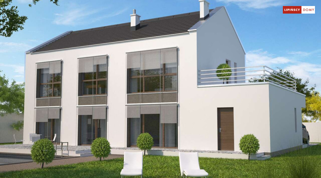 Kolejna, ciekawa odsłona projektu Santos, w którym wprowadzono dach spadzisty i przykuwającą wzrok czarną elewację, urozmaiconą zielonymi wstawkami. Wnętrza natomiast to bardzo funkcjonalny układ części dziennej, z nowoczesnym, otwartym salonem i dodatkowym pokojem, mogącym pełnić funkcję gabinetu. Na piętrze znajdują się trzy sypialnie, usytuowane od strony południowej. Największa z nich posiada osobną łazienkę i garderobą, a także wyjście na taras nad garażem. W domu znajduje się także szereg praktycznych pomieszczeń, jak pralnia spiżarnia, czy pomieszczenie techniczne za garażem. Dostępna jest również wersja projektu z podwójnym garażem, na wąska działkę.