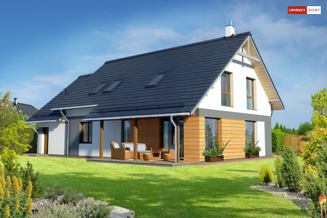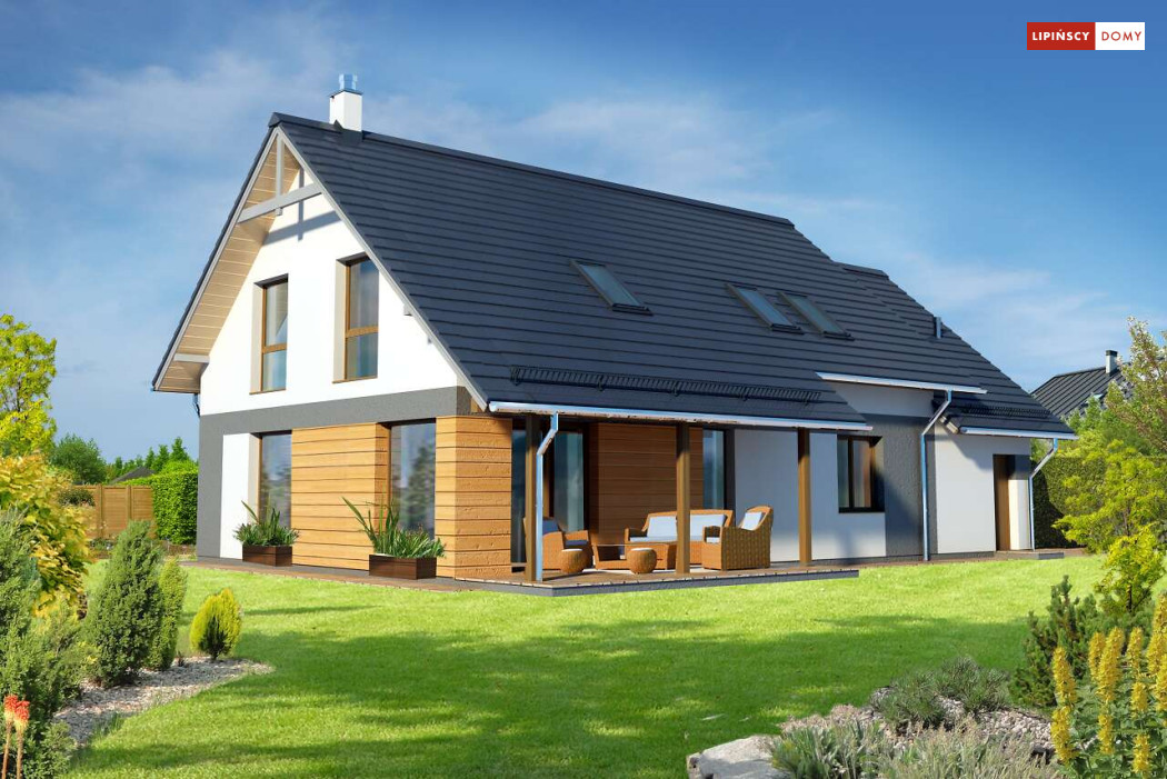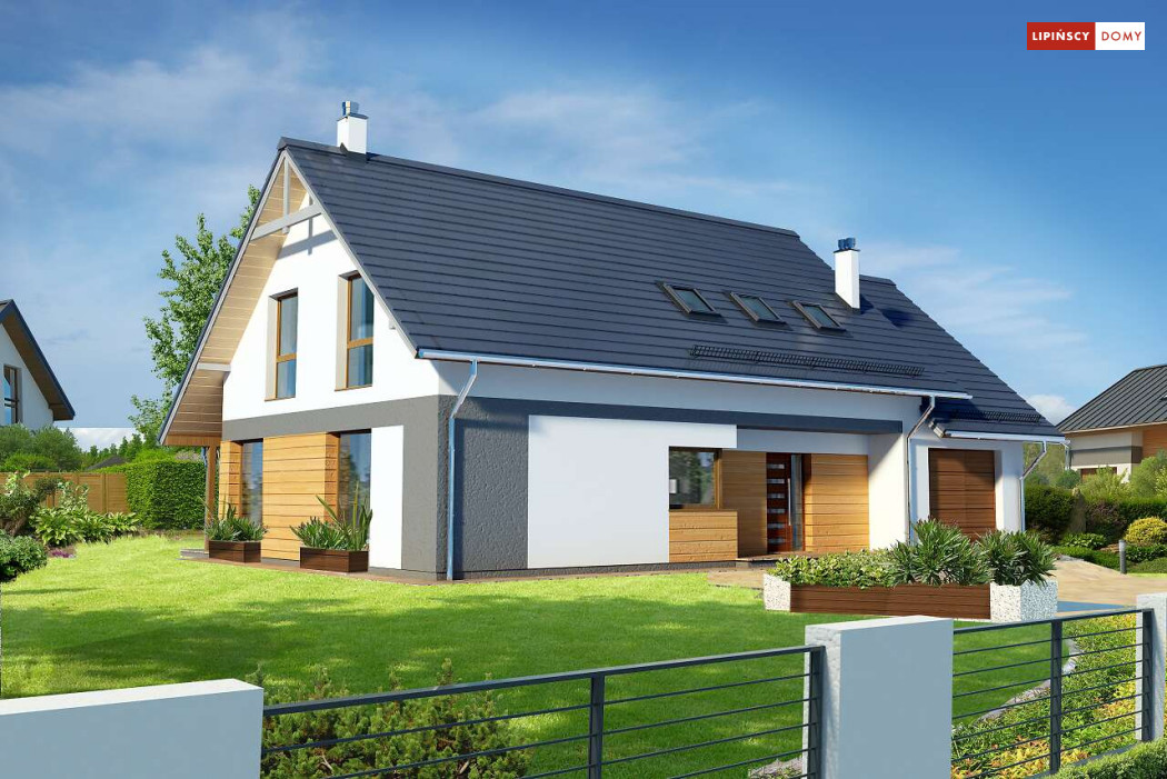 Lennox to nowoczesny, energooszczędny dom skrojony na miarę, aby jednocześnie zapewnić mieszkańcom ponad standardowy układ wnętrz, powiększony np. o osobną łazienkę i dużą garderobę przy sypialni rodziców, czy wygodną pralnię, przy zachowaniu niskich kosztów budowy. W części dziennej jest miejsce na osobną jadalnię i nieco osłoniętą kuchnię. Proporcje elewacji i prosta bryła dachu sprawiają, że dom wygląda zarówno elegancko i nowocześnie.