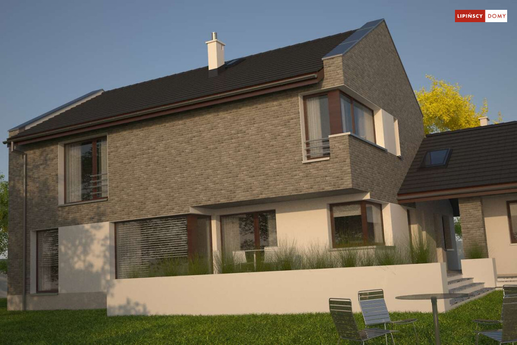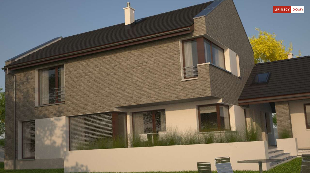Quimper to dom energooszczędny o nowoczesnej bryle i ciekawie rozwiązanym układzie funkcjonalnym. Do domu przylega garaż, połączony z domem bryłą dachu, natomiast fizycznie jest od oddzielony od niego szerokim pasażem. Z pasażu można wejść do domu, a także bezpośrednio do osobnego pokoju, pełniącego funkcję pracowni. Część dzienna to duży salon z oknem narożnym, wychodzącym na duży taras. Przenikające się bryły, przejścia, podcienia i tarasy urozmaicają dom i sprawiają, że dom nadaje się na wąskie działki z wjazdem od zachodu, zapewniając odpowiednie naświetlenie i zachowując przy tym prywatność mieszkańców.