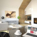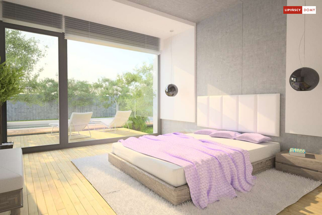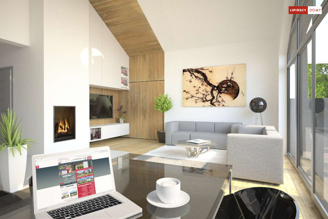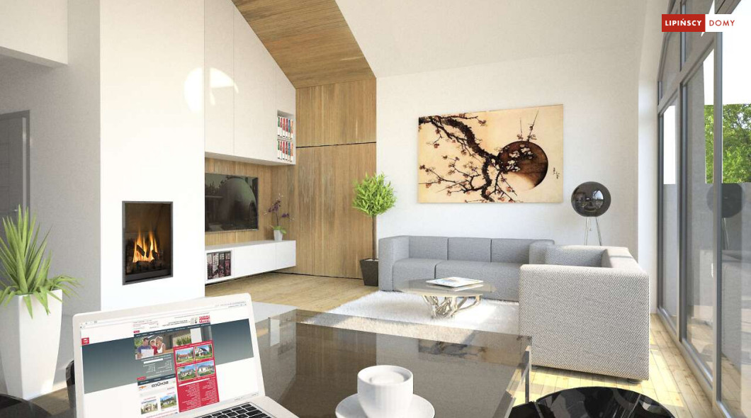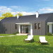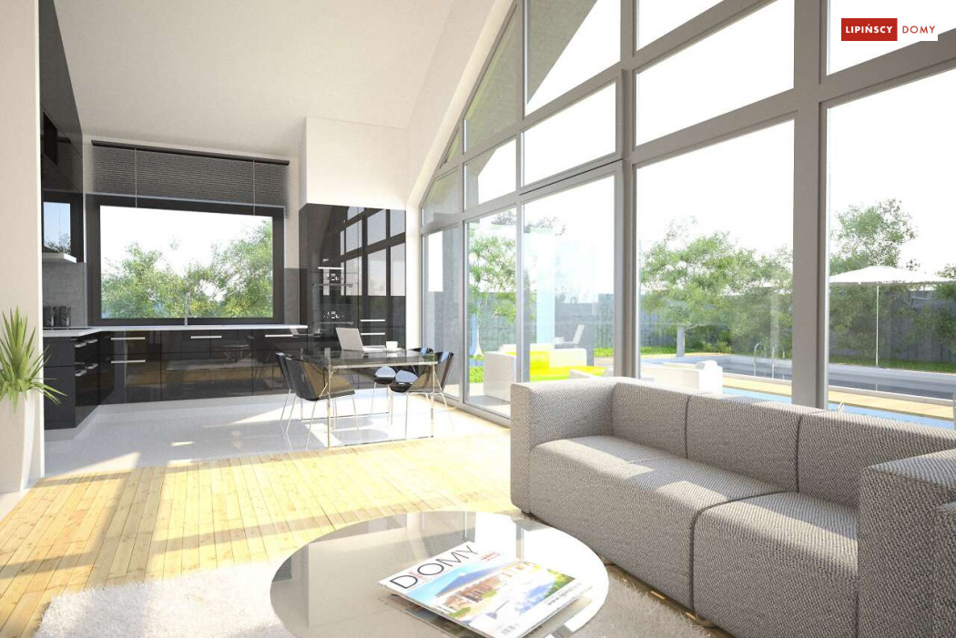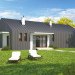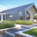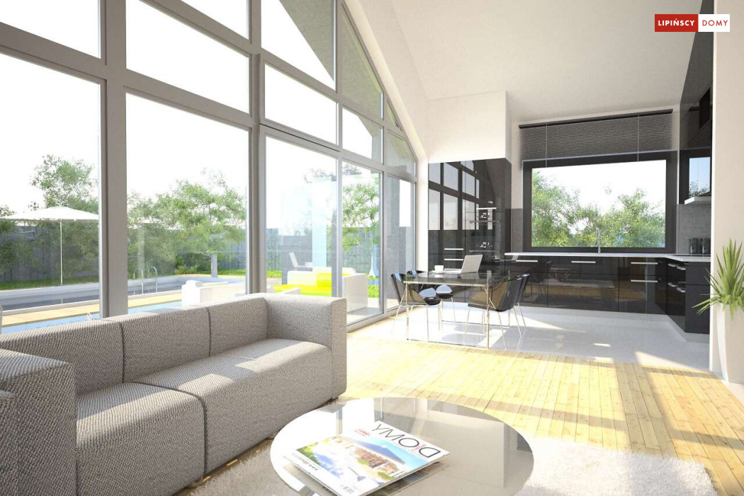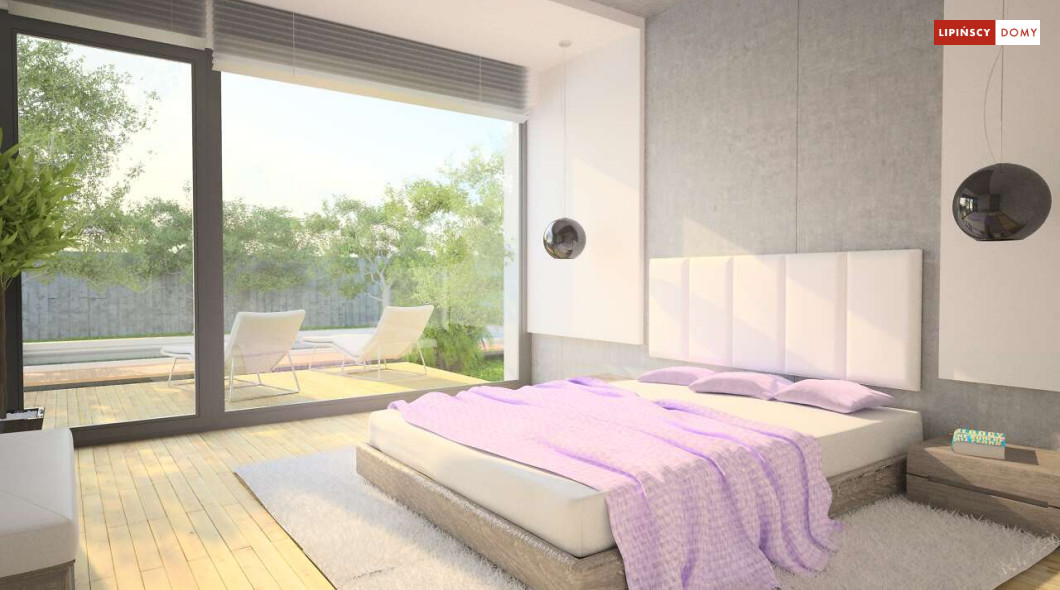 Kompaktowy parterowy dom o wyrazistym, nowoczesnym charakterze. Jest doskonały na działki z wjazdem od wschodu. Taras tego domu jest usytuowany z boku i tworzy wraz z zadaszeniem pokrytym drewnem intrygującą, przestronną przestrzeń. Stylistyka domu jest skierowana do osób o niestandardowych potrzebach estetycznych, dla tych którzy chcą się wyróżnić i podkreślić swoją oryginalność. Jednocześnie jest to dom o niewielkich parametrach powierzchniowych przez co jest atrakcyjny dla ludzi młodych i dla niewielkich rodzin. Wygodnie rozplanowany dom mieści w sobie przestrzeń pokoju dziennego, kuchnię z jadalnia i spiżarką, łazienkę i dwa pokoje, przy czym sypialnia większa ma niepowtarzalny charakter, dzięki dużym przeszkleniom. Dostępna jest również wersja tego projektu z płaskim dachem.
