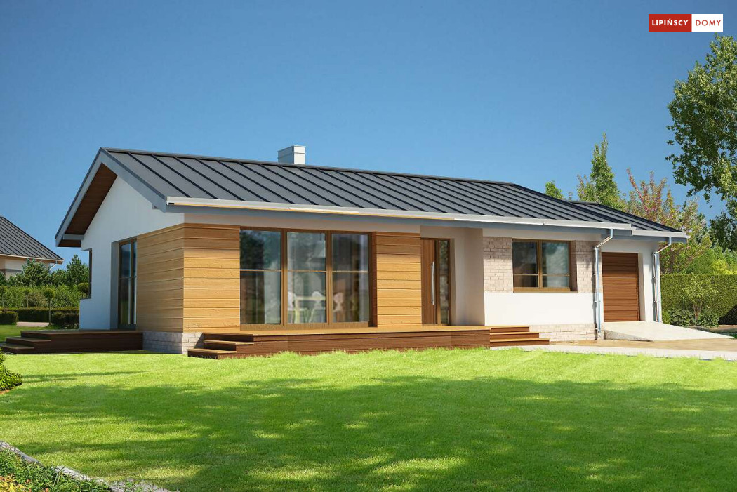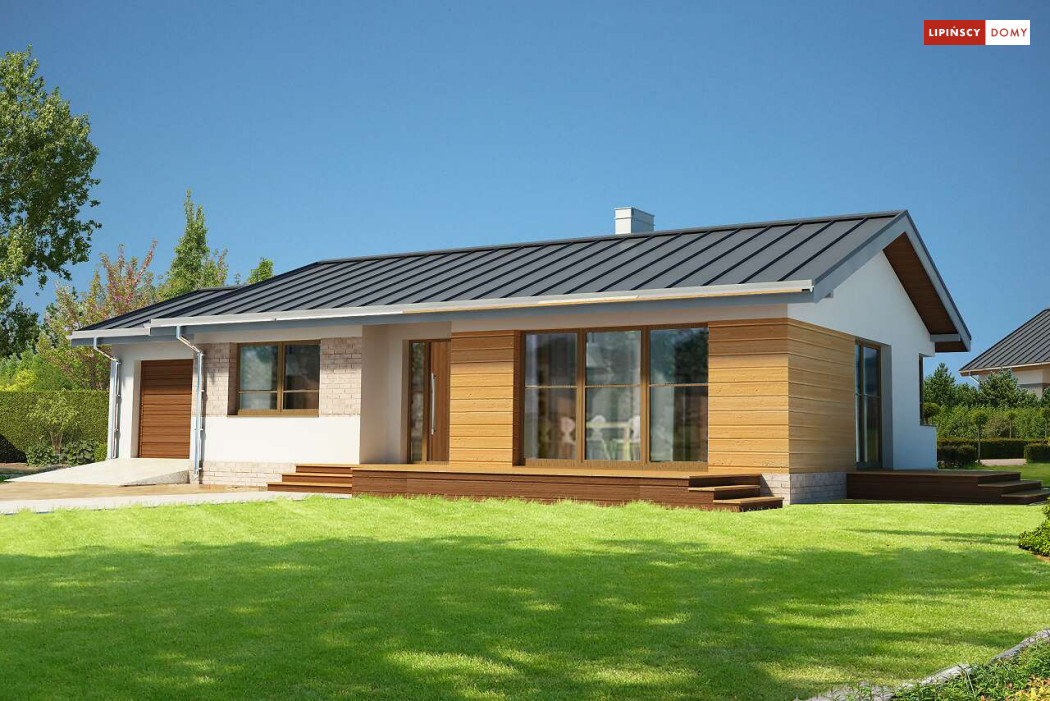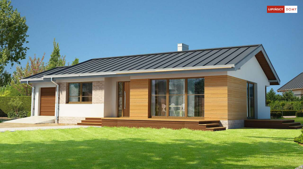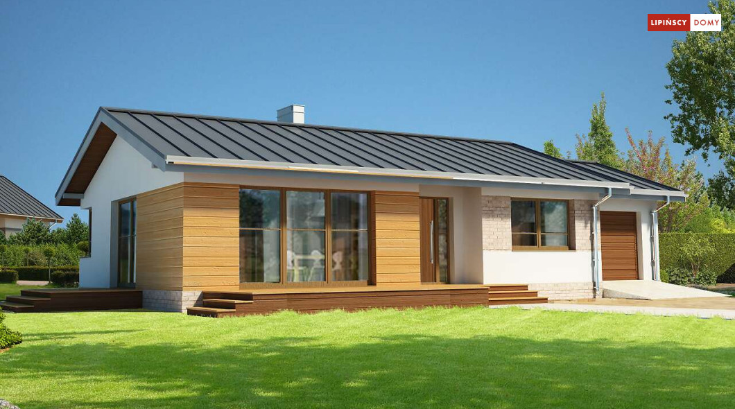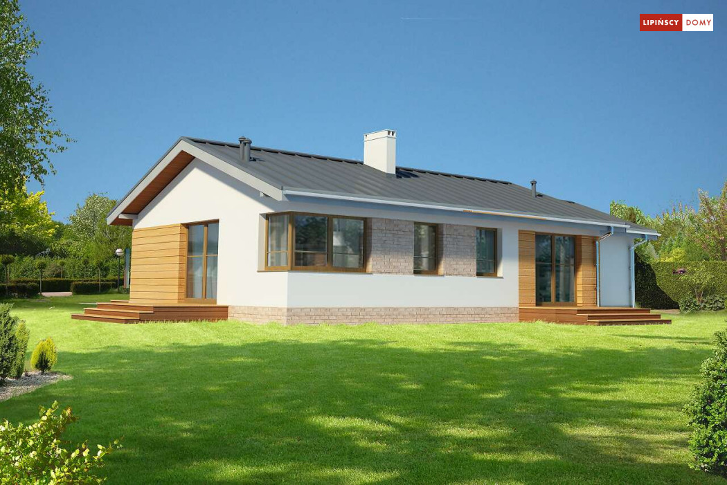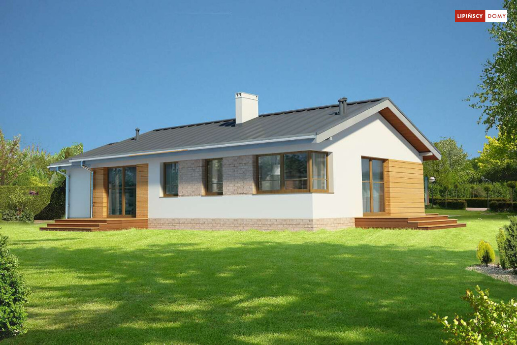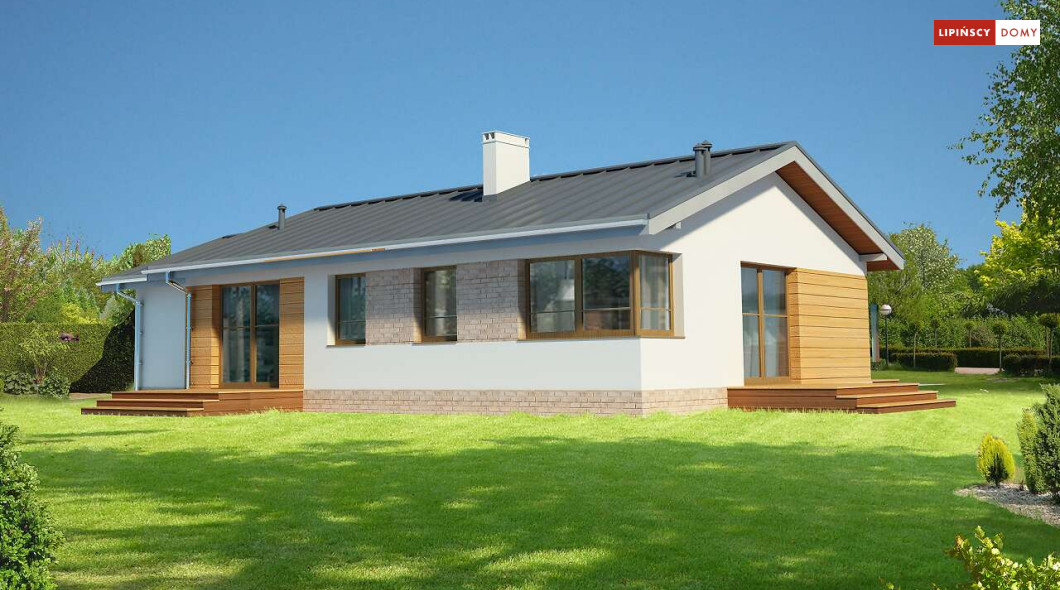 Olbia to wdzięczny domek parterowy o prostej bryle, dedykowany na działki z wjazdem od południa, oferujący na stosunkowo niedużej powierzchni całkiem spore pomieszczenia. Zarówno dwie sypialnie, które mają odpowiednio 12 i 14m², duża łazienka z wanną, prysznicem i miejscem na pralkę. Salon połączony jest optycznie z kuchnią, a kominek usytuowany tak, by nie zajmował miejsca. Jego komin jest połączony praktycznie z kominem pieca usytuowanego w sąsiednim pomieszczeniu gospodarczym. Wejście do niego jest od strony kuchni, więc może ono pełnić także rolę podręcznej spiżarki. W wiatrołapie jest sporo miejsca na dużą szafę – garderobą oraz miejscem na szafki na buty.