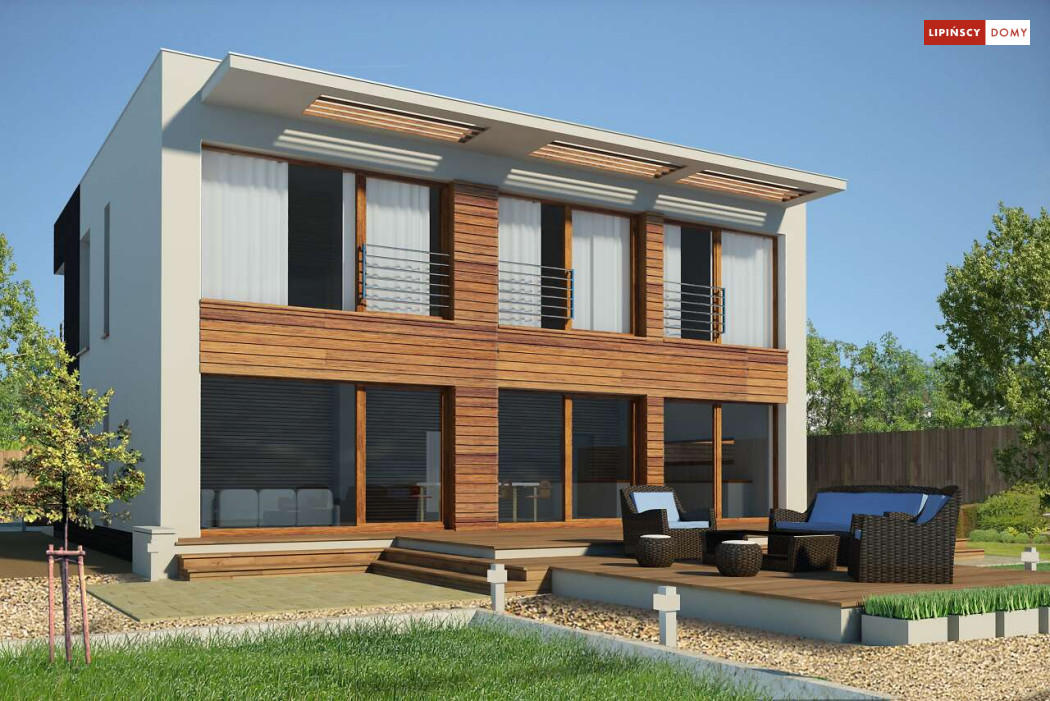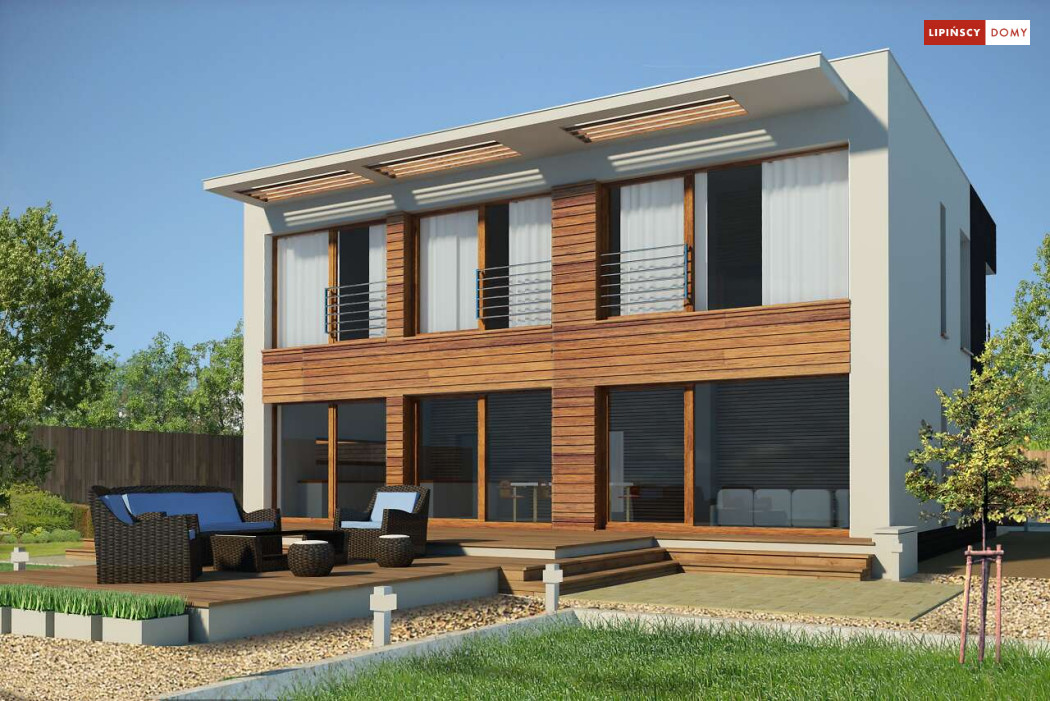 Carrara to dom stworzony na tereny położone w malowniczym miejscu, z pięknym widokiem na jezioro, las, czy góry. Dzięki dużym przeszkleniom domownicy mogą napawać się tym widokiem przez cały dzień – czy to z sypialni, czy też z otwartej strefy dziennej, na którą składa się prawie 50-cio metrowa przestrzeń, podzielona funkcjonalnie na salon z kominkiem, jadalnię, która pomieści nawet największą liczbę gości oraz kuchnię z nowoczesną wyspą. Taka kuchnia będzie rajem dla miłośników gotowania, ponieważ dodatkowo jest wyposażona w wyjątkowo dużą spiżarnię. Sąsiadujący taras będzie zachęcał do wypoczynku. Na piętrze z powodzeniem może mieszkać większa rodzina, bo są tam aż cztery sypialnie, a dodatkowy pokój na parterze może być pokojem do pracy, czy przeznaczony dla seniorów.