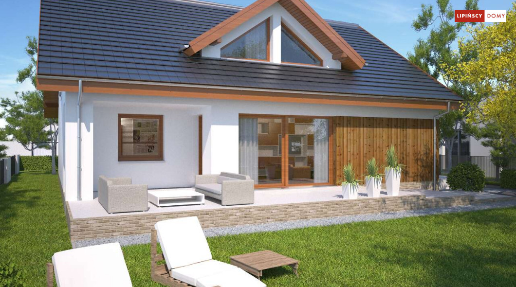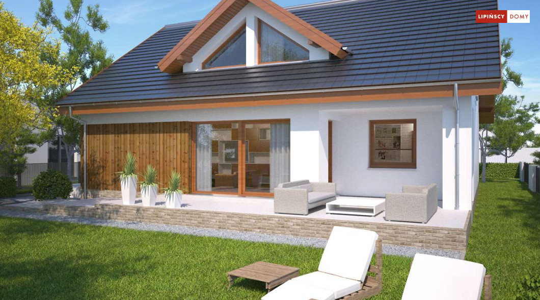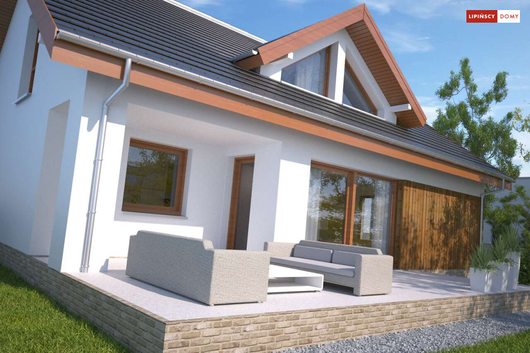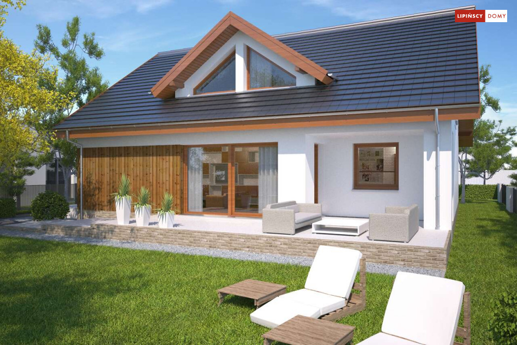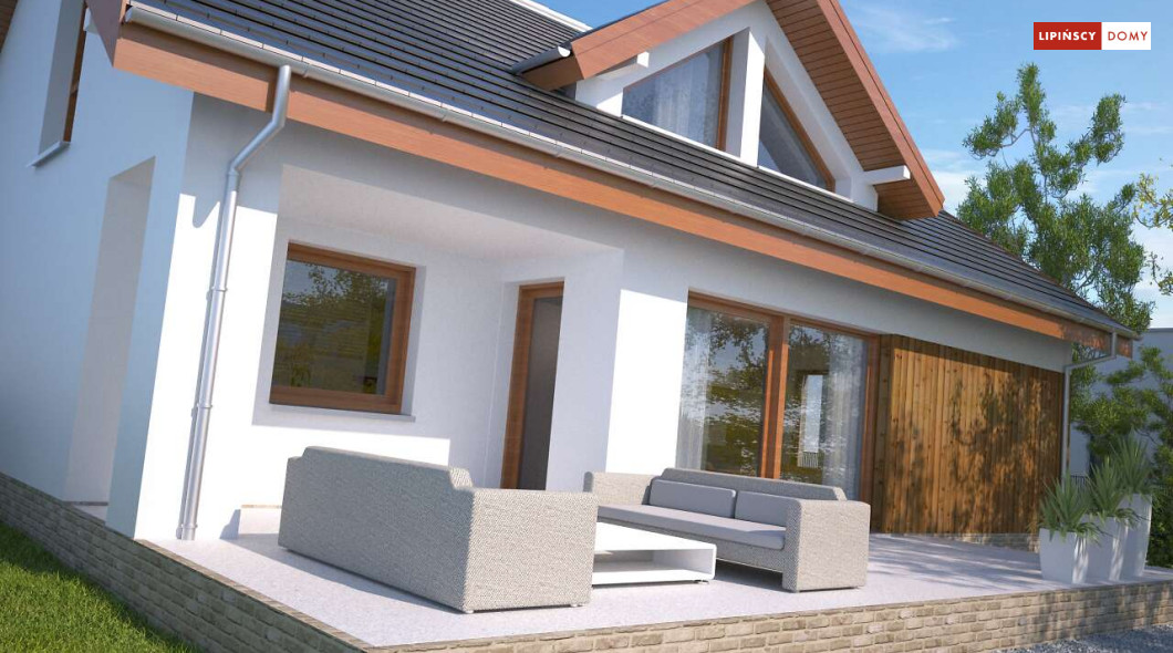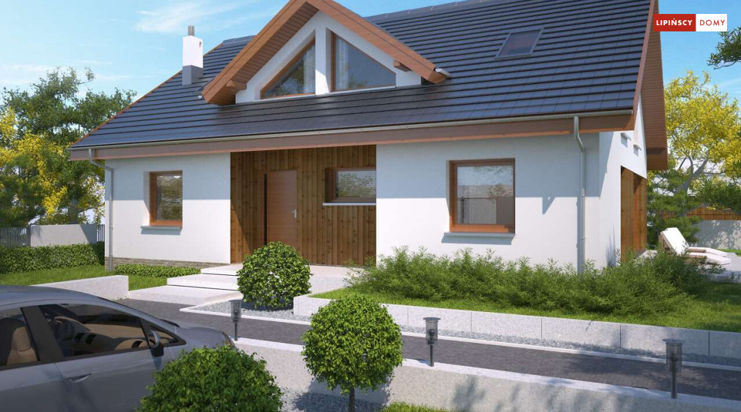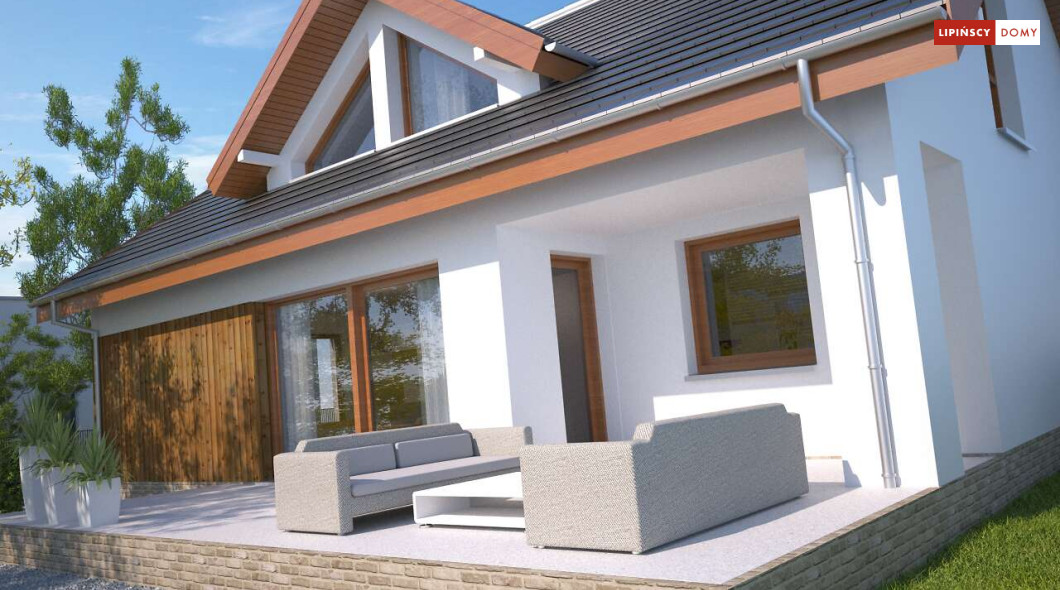 Nowoczesny dom energooszczędny, z częścią wspólną na parterze i wyraźnie wydzieloną częścią prywatną na poddaszu. W części dziennej mieszkańcy mają do dyspozycji duży, jasny salon z częścią jadalną i otwartą na niego kuchnią i podręczną spiżarnią, a także dodatkowy pokój, mogący służyć jako gabinet lub pokój gościnny. Jest tu też łazienka i pomieszczenie gospodarcze z kotłem gazowym. Poddasze podzielono na trzy ustawne sypialnie i dużą łazienkę. Znajduje się tu także antresola, gdzie można zlokalizować kącik wypoczynkowy.