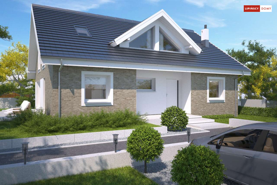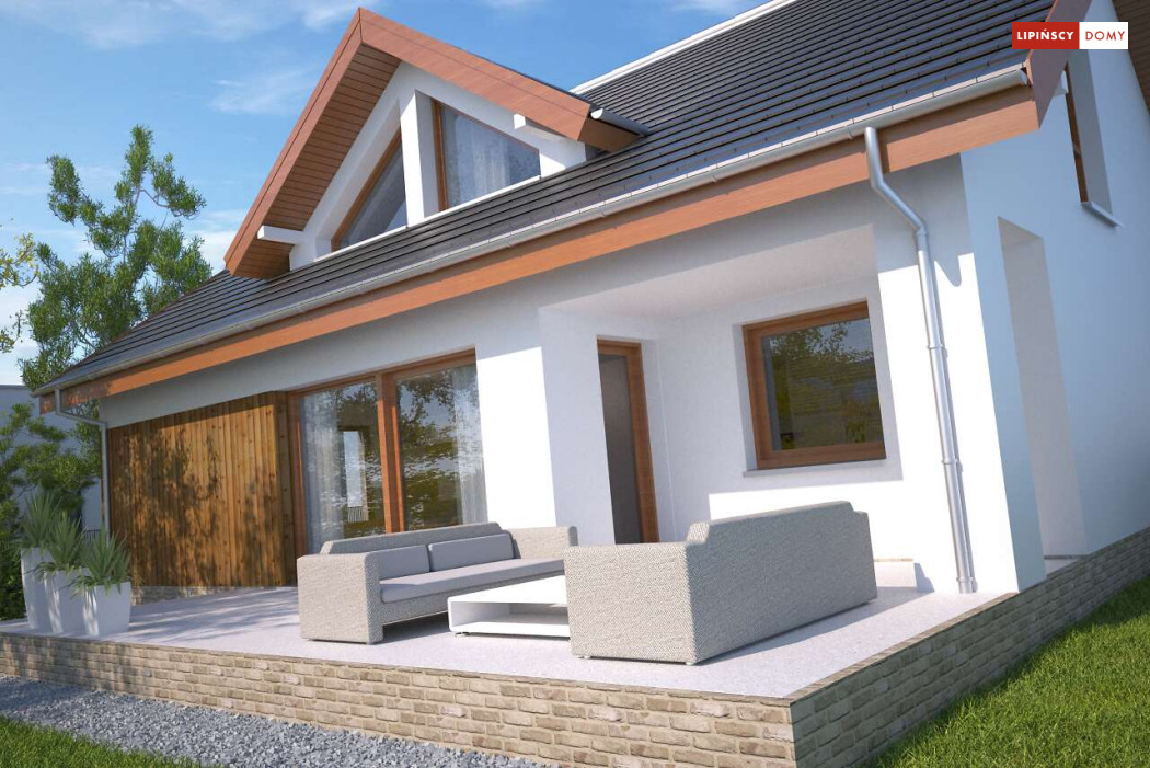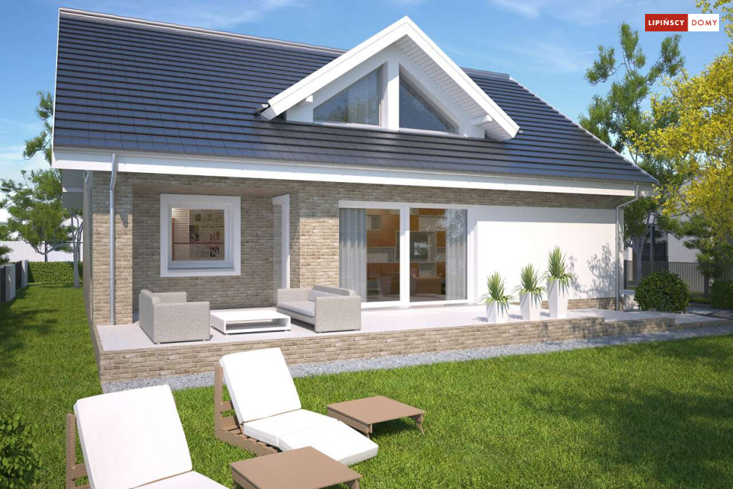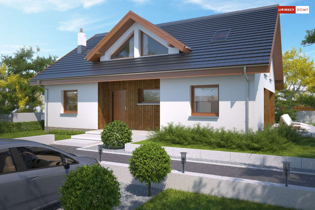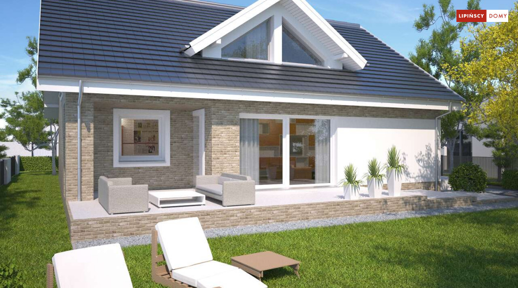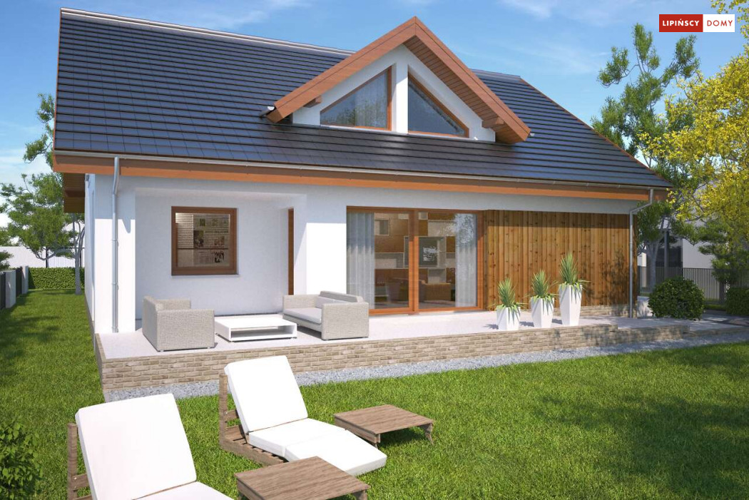 Nowoczesny dom energooszczędny, z częścią wspólną na parterze i wyraźnie wydzieloną częścią prywatną na poddaszu. W części dziennej mieszkańcy mają do dyspozycji duży, jasny salon z częścią jadalną i otwartą na niego kuchnią i podręczną spiżarnią, a także dodatkowy pokój, mogący służyć jako gabinet lub pokój gościnny. Jest tu też łazienka i pomieszczenie gospodarcze z kotłem gazowym. Poddasze podzielono na trzy ustawne sypialnie i dużą łazienkę. Znajduje się tu także antresola, gdzie można zlokalizować kącik wypoczynkowy.