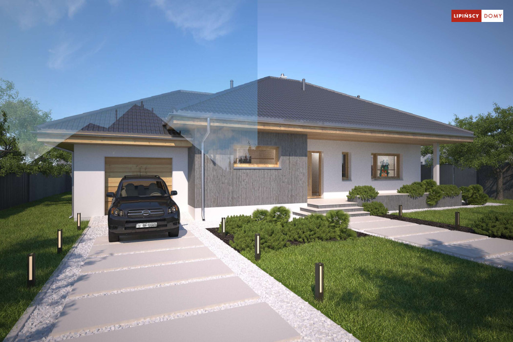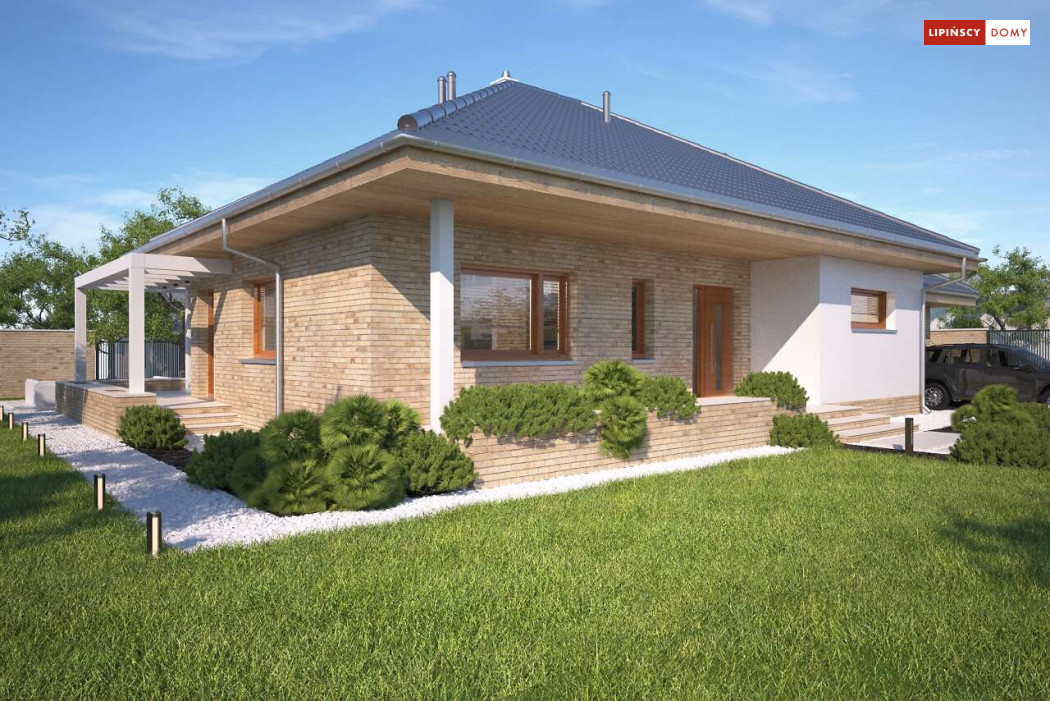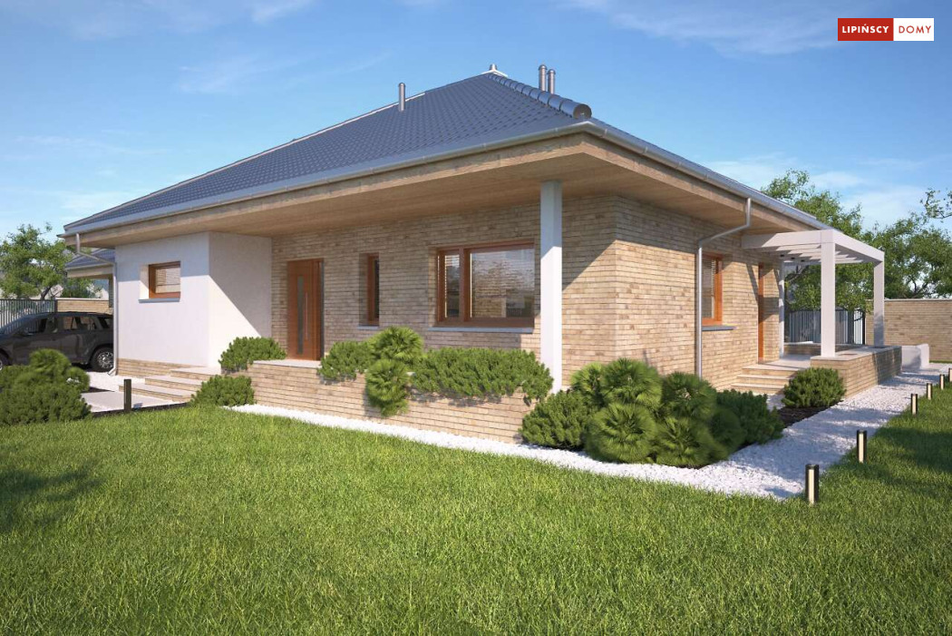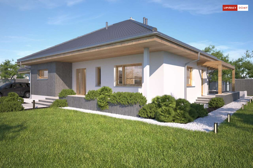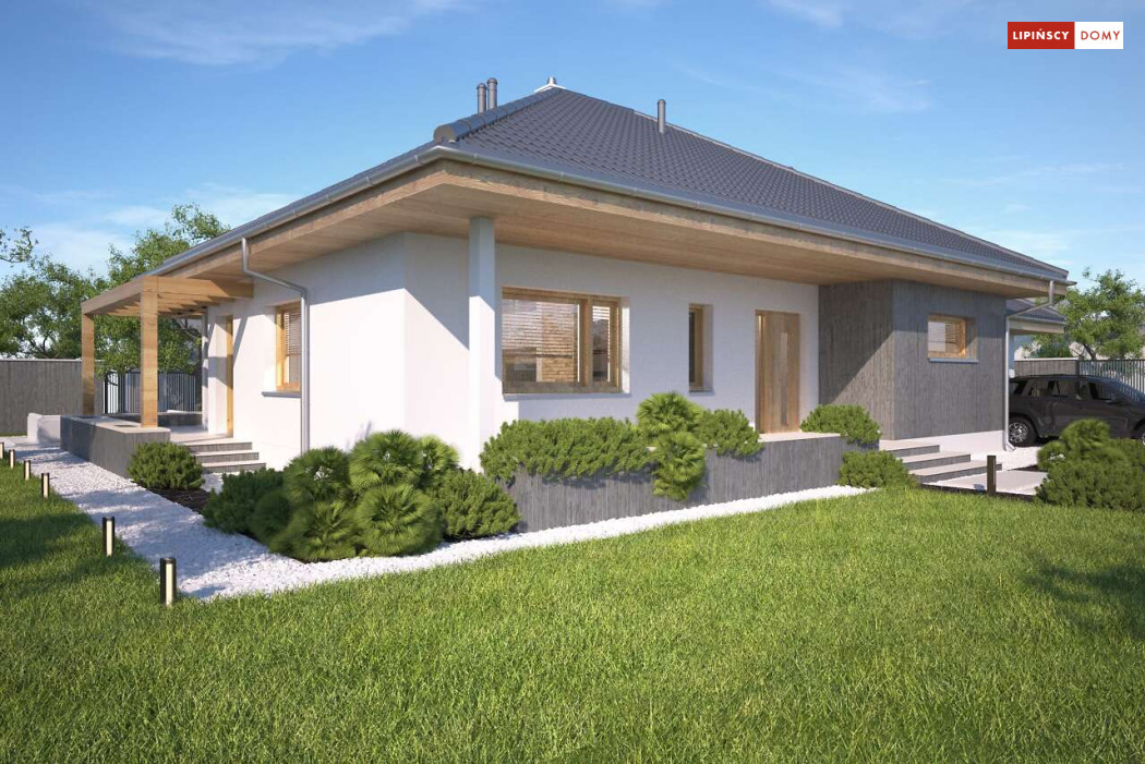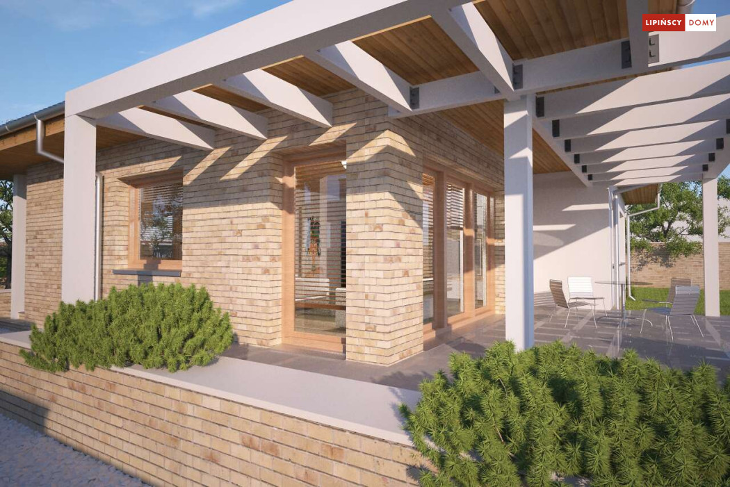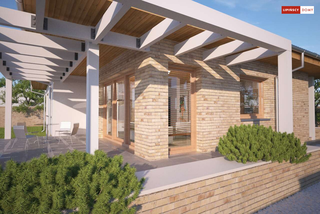 Prosty, elegancki i niewielki dom parterowy, z garażem. W projekcie przewidziano dwie ustawne sypialnie oraz obszerny salon połączony z kuchnią, w której zmieści się funkcjonalna wyspa oraz stół, doskonały do rodzinnego spożywania posiłków. Z salonu można wyjść na częściowo zadaszony taras, który dzięki dużym oknom, wydaje się niemal na wyciągnięcie ręki. Dużym atutem tego wygodnego domu jest duża, doświetlona naturalnym światłem łazienka, którą – dzięki sporym rozmiarom – można bardzo ciekawie zaaranżować.