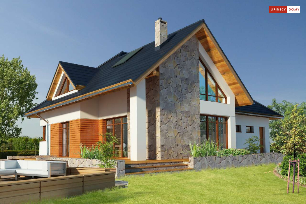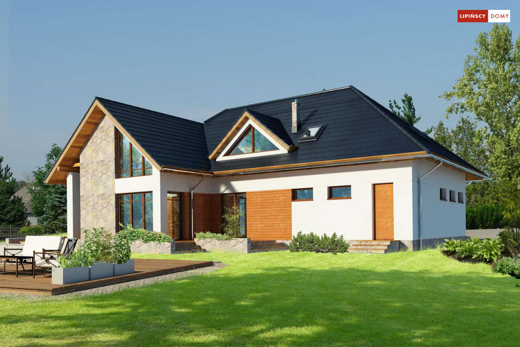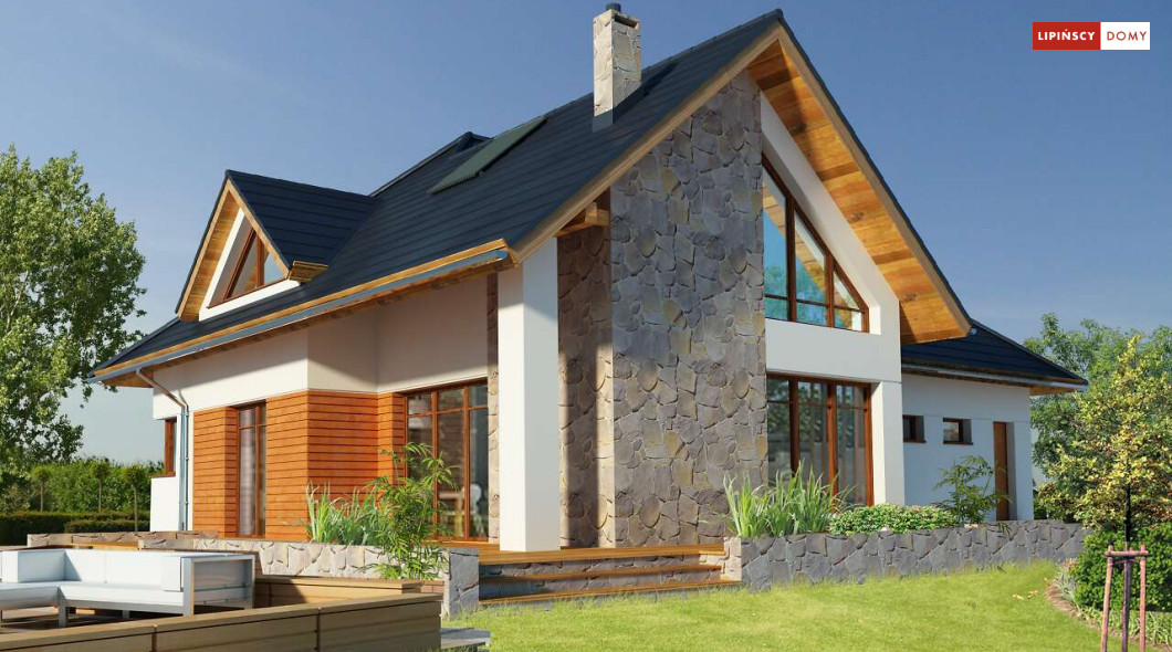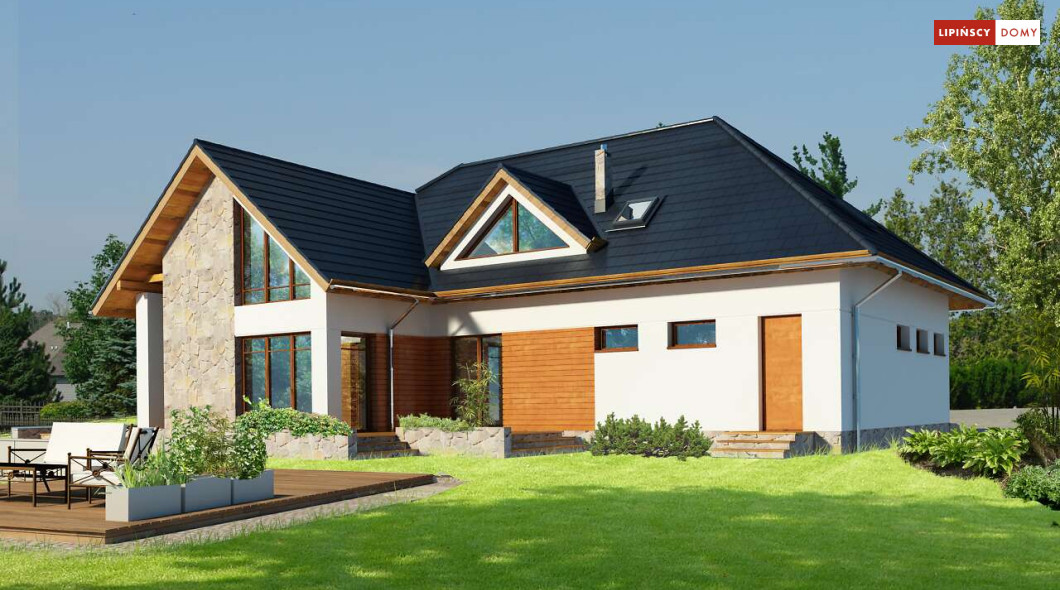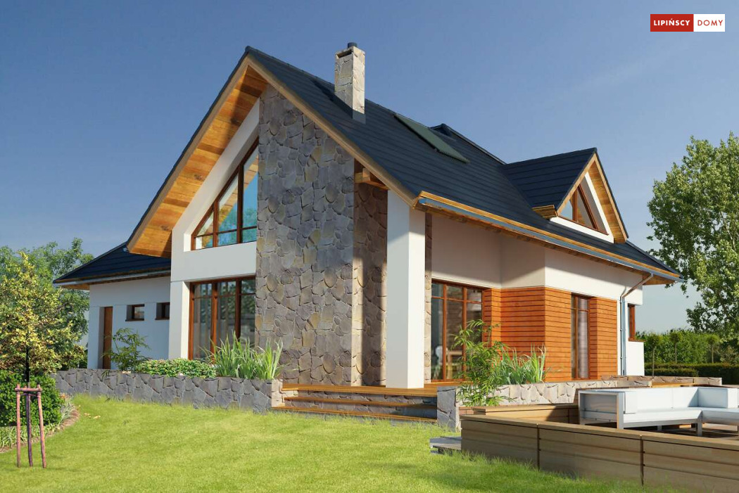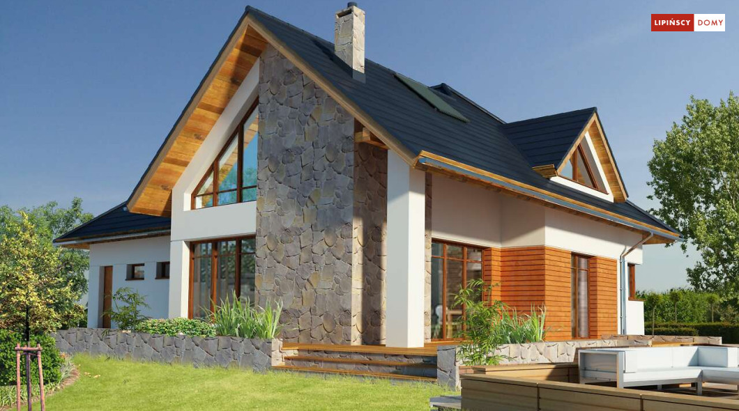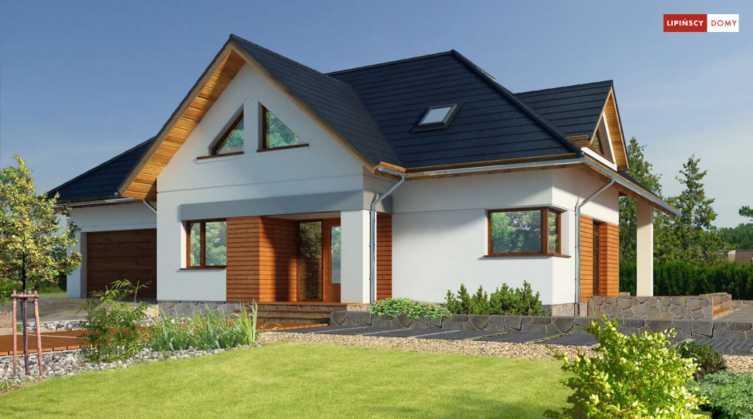 Kolejna wersja popularnego projektu Avalon, tym razem z garażem dwustanowiskowym i dużą kotłownią za nim oraz z przeniesionym kominkiem. Do dyspozycji mieszkańców jest funkcjonalna kuchnia, płynnie przechodząca w część jadalną i salon, wygodna sypialnia z własną łazienką oraz dodatkowa toaleta. Na poddaszu zaplanowano dwie sypialnie, w tym jedną z niezależną łazienką, dwie garderoby, duży gabinet i wspólną, dużą łazienkę. Ozdobą i cechą charakterystyczną domu jest antresola, nadająca wnętrzu lekkości i przestrzenności. Harmonijna i elegancka bryła, z drewnianymi elementami elewacji zadowoli inwestorów, szukających niebanalnego i wygodnego projektu.