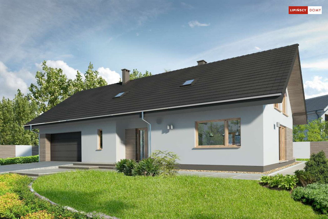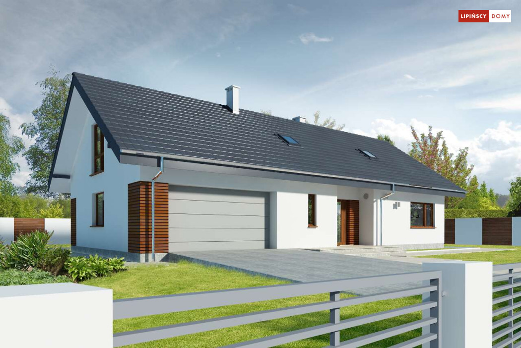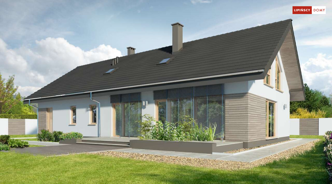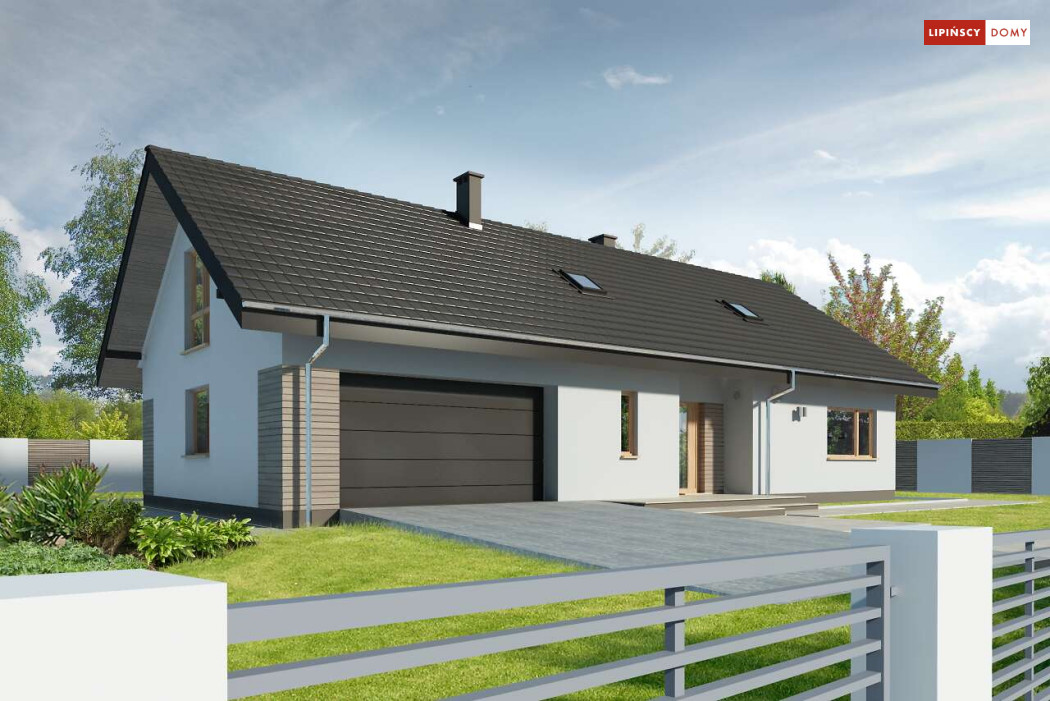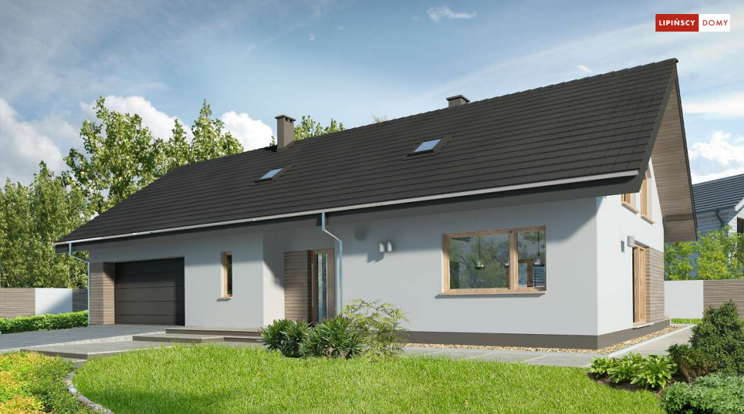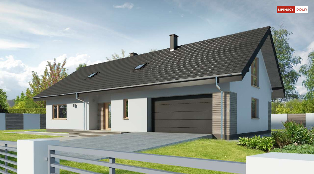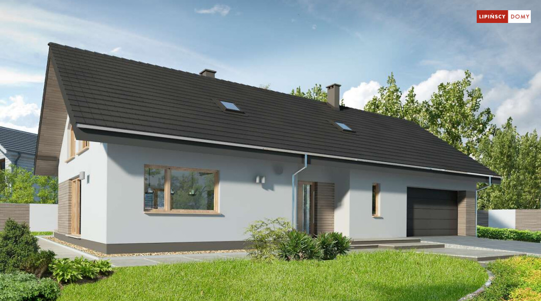 Piękny, prosty i funkcjonalny dom przeznaczony dla czteroosobowej rodziny. Sypialnia rodziców znajduje się na dole i posiada własną łazienkę, natomiast sypialnie dzieci zlokalizowane są na poddaszu. Na parterze mamy również przestronny salon połączony z kuchnią, spiżarnię i toaletę dla gości. Część gospodarczą stanowi dwustanowiskowy garaż, kotłownia i pralnia oraz strych nad garażem. W projekcie przewidziano ogrzewanie kotłem na gaz. Możliwa jest zmiana ogrzewania na pompę ciepła.