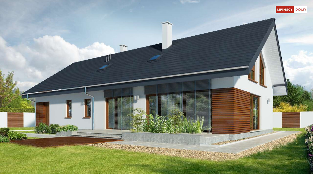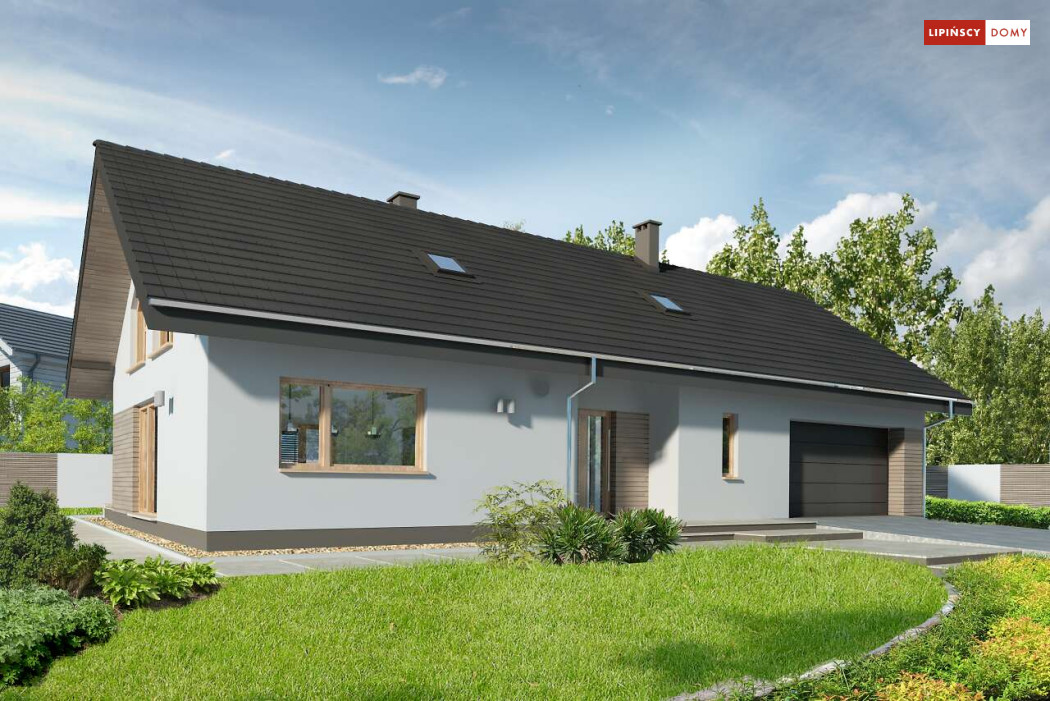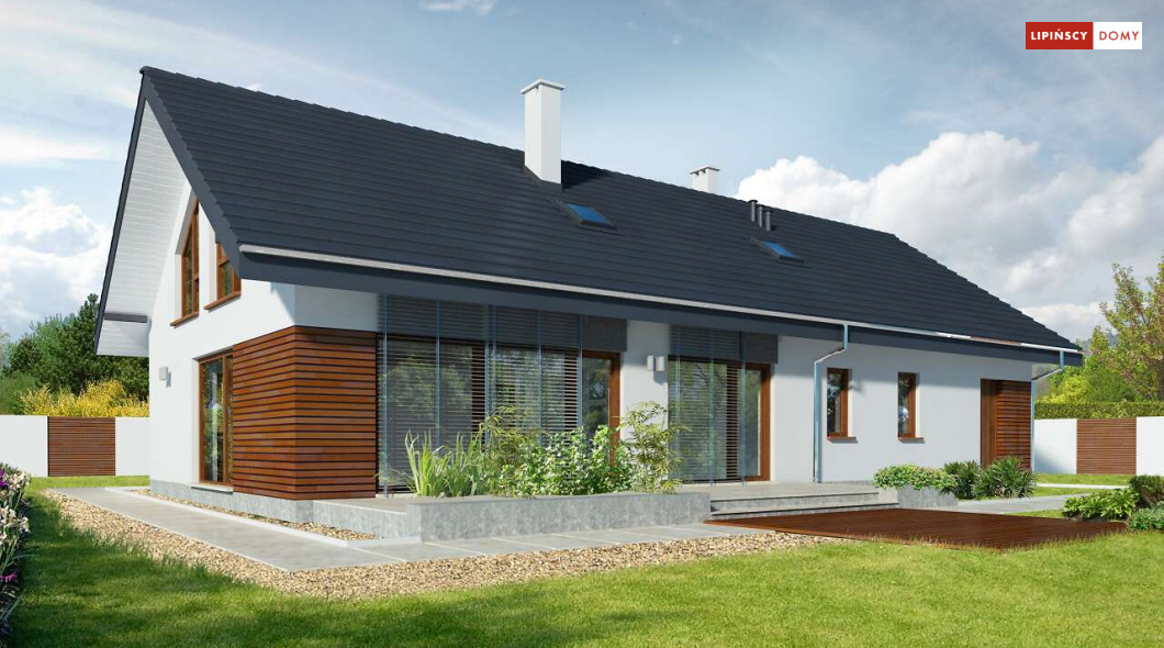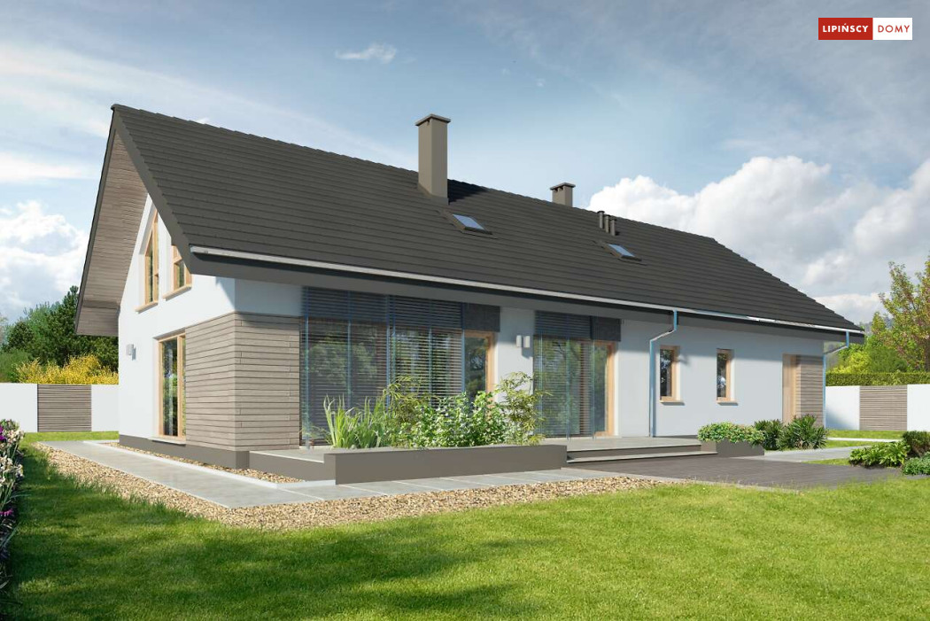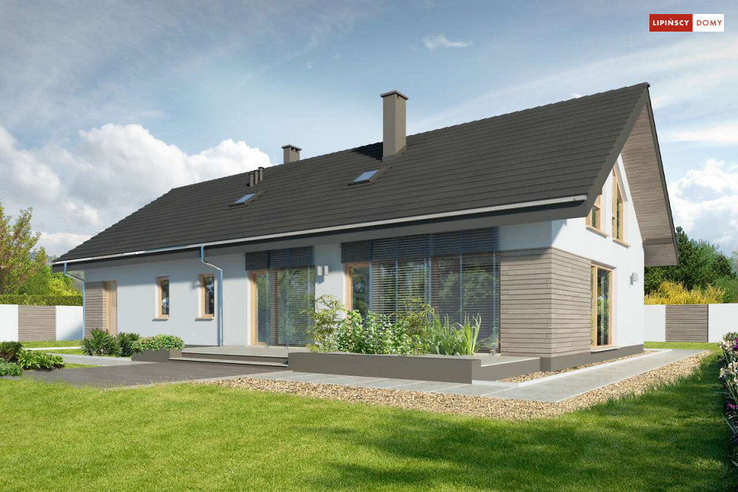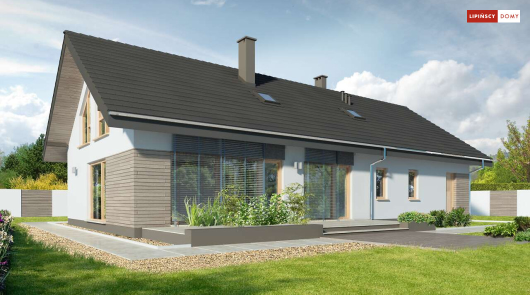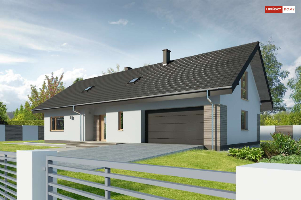 Piękny, prosty i funkcjonalny dom przeznaczony dla czteroosobowej rodziny. Sypialnia rodziców znajduje się na dole i posiada własną łazienkę, natomiast sypialnie dzieci zlokalizowane są na poddaszu. Na parterze mamy również przestronny salon połączony z kuchnią, spiżarnię i toaletę dla gości. Część gospodarczą stanowi dwustanowiskowy garaż, kotłownia i pralnia oraz strych nad garażem. W projekcie przewidziano ogrzewanie kotłem na gaz. Możliwa jest zmiana ogrzewania na pompę ciepła.