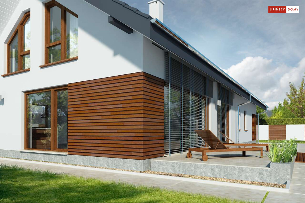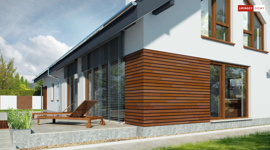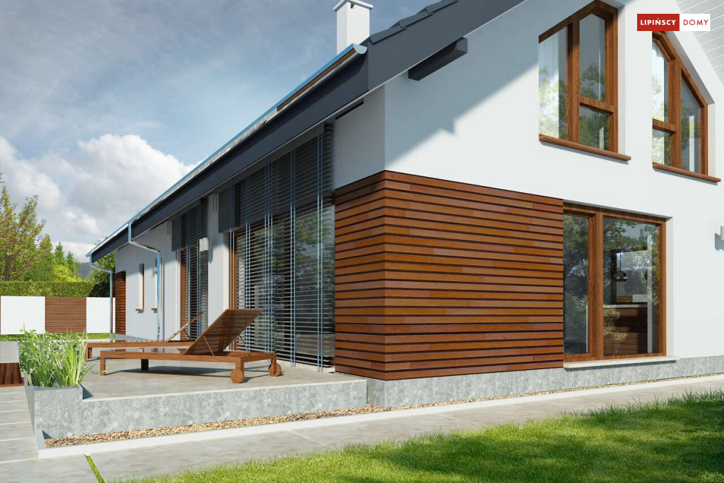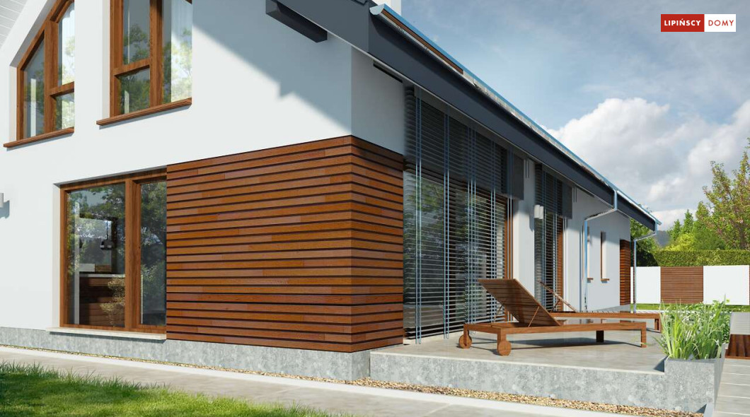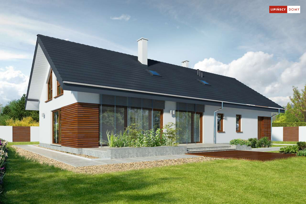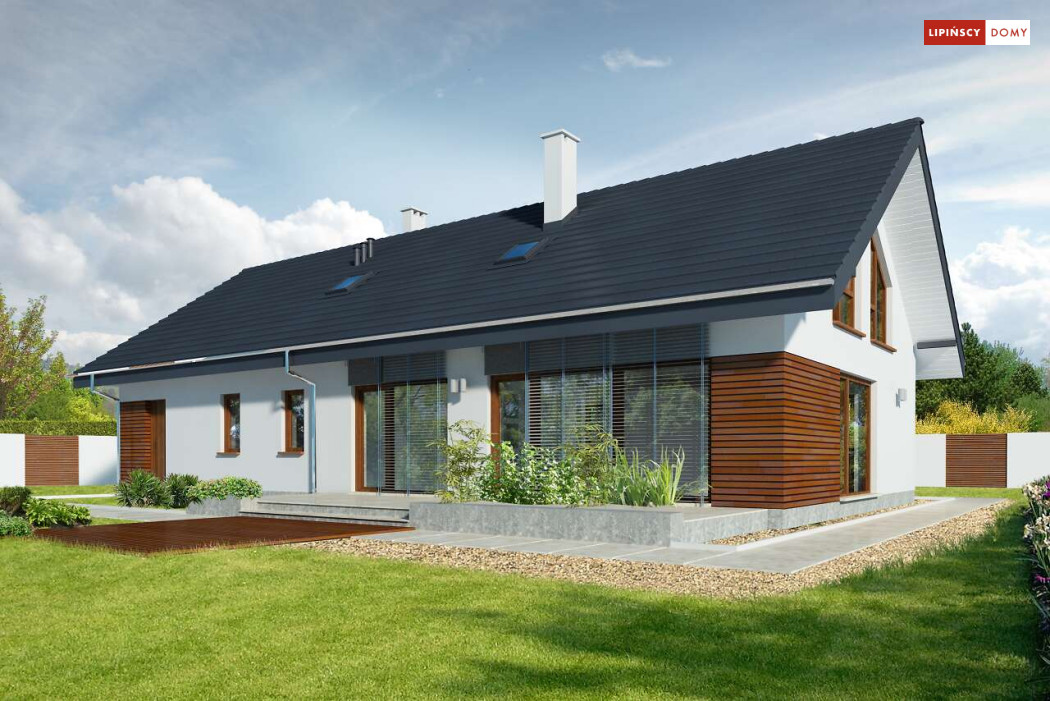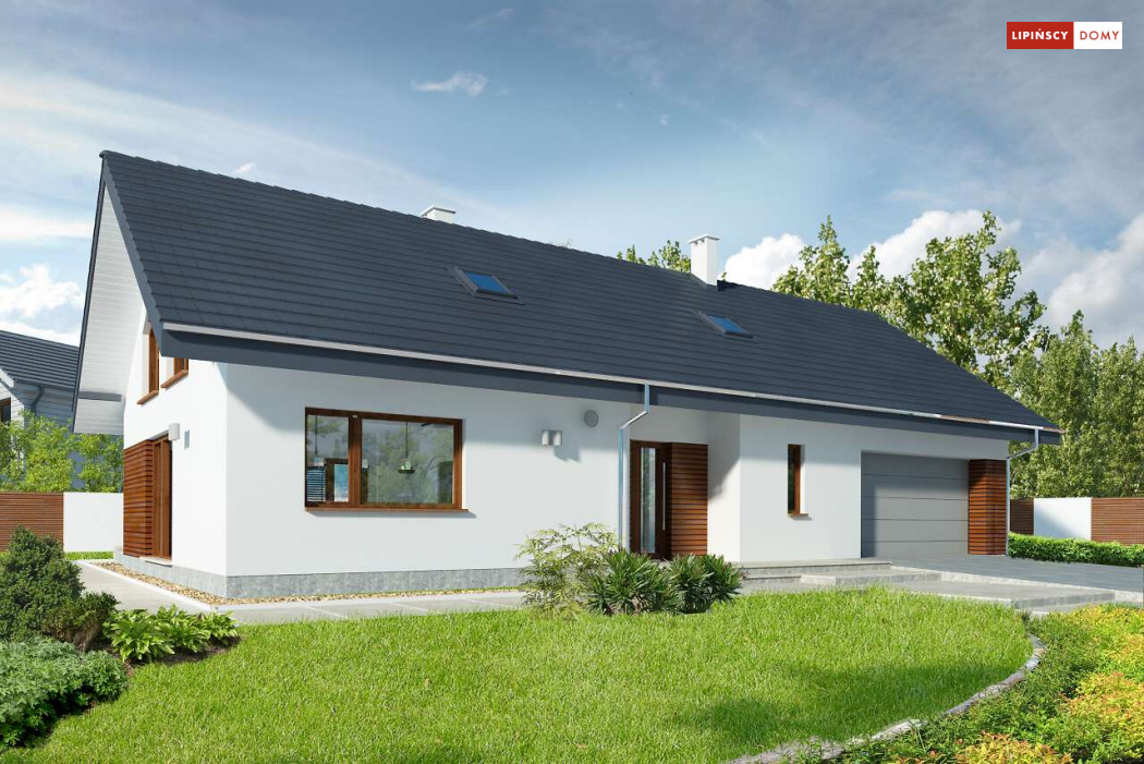 Piękny, prosty i funkcjonalny dom przeznaczony dla czteroosobowej rodziny. Sypialnia rodziców znajduje się na dole i posiada własną łazienkę, natomiast sypialnie dzieci zlokalizowane są na poddaszu. Na parterze mamy również przestronny salon połączony z kuchnią, spiżarnię i toaletę dla gości. Część gospodarczą stanowi dwustanowiskowy garaż, kotłownia i pralnia oraz strych nad garażem. W projekcie przewidziano ogrzewanie kotłem na gaz. Możliwa jest zmiana ogrzewania na pompę ciepła.