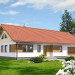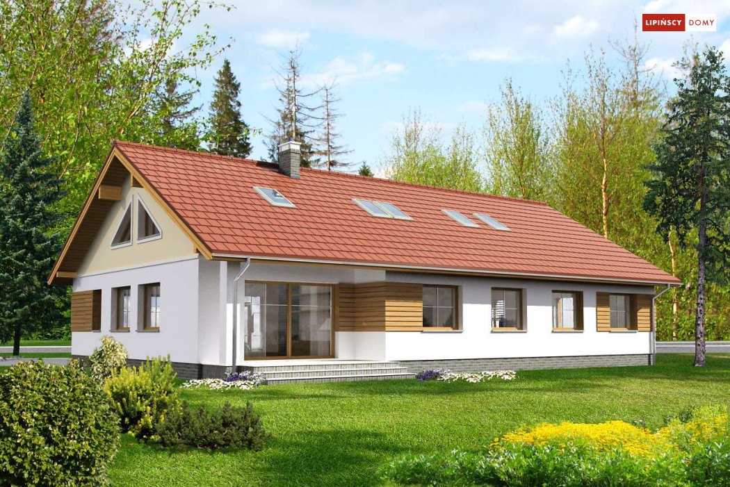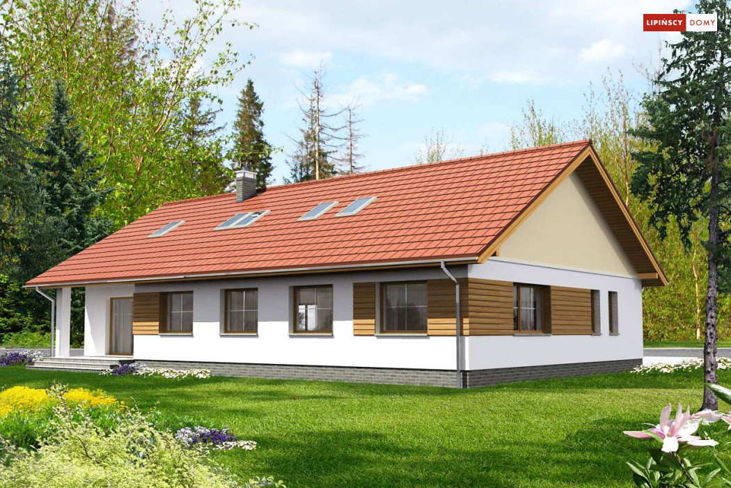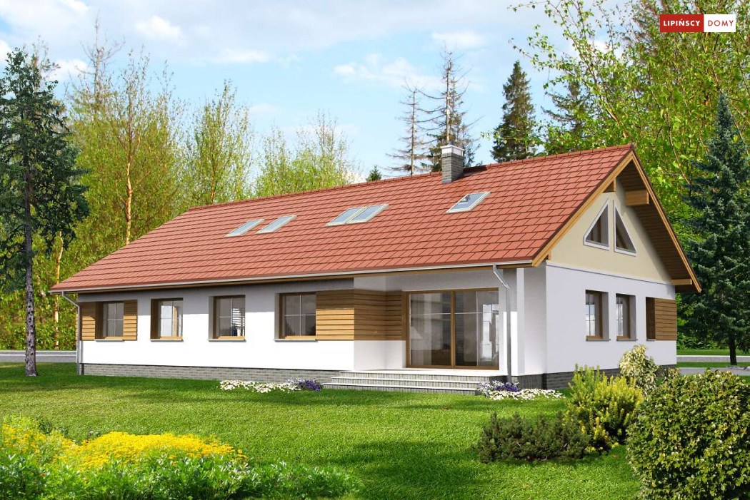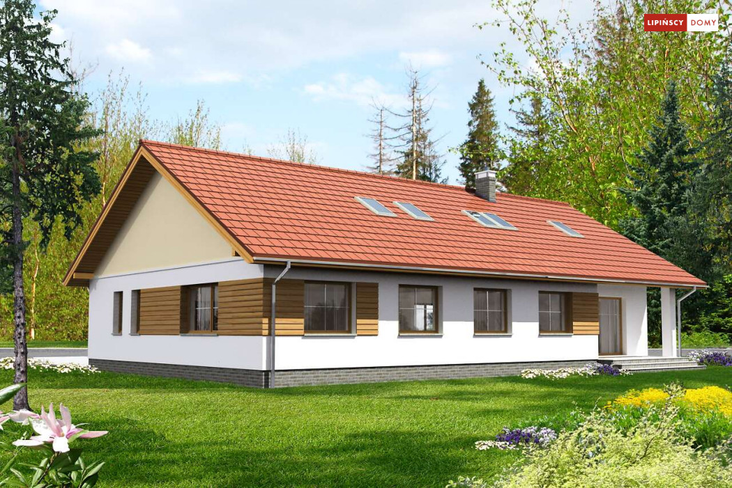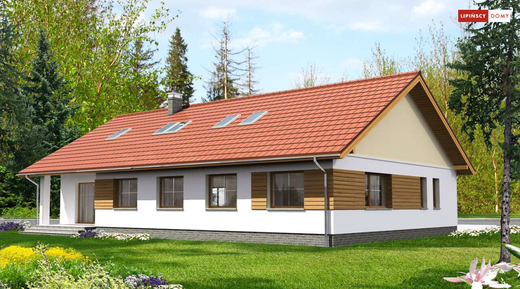 Energooszczędny dom parterowy idealny dla 5-osobowej rodziny. Część nocną stanowią cztery sypialnie i komfortowa łazienka. Część dzienna to imponujący, słoneczny salon, nad którym nie ma stropu oraz kuchnia ze spiżarnią i toaleta dla gości. Część gospodarczą stanowi garaż, z którego można wejść na strych oraz duża kotłownia, która może być również pralnią. W projekcie przewidziano ogrzewanie pompą ciepła.