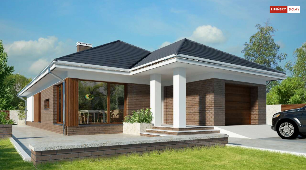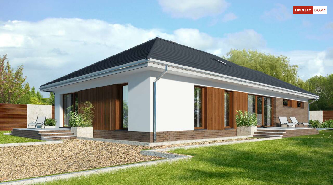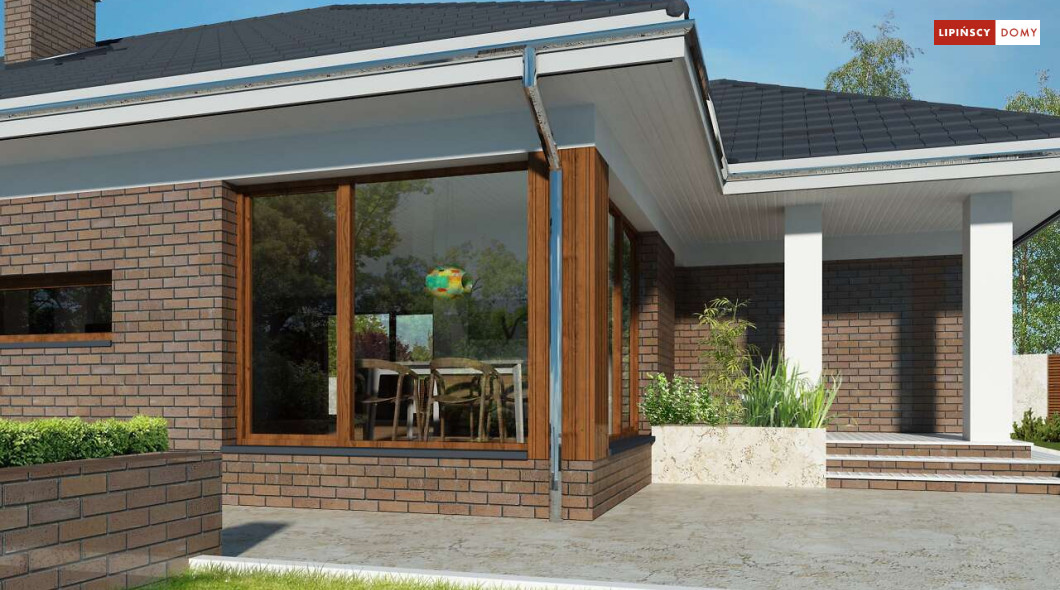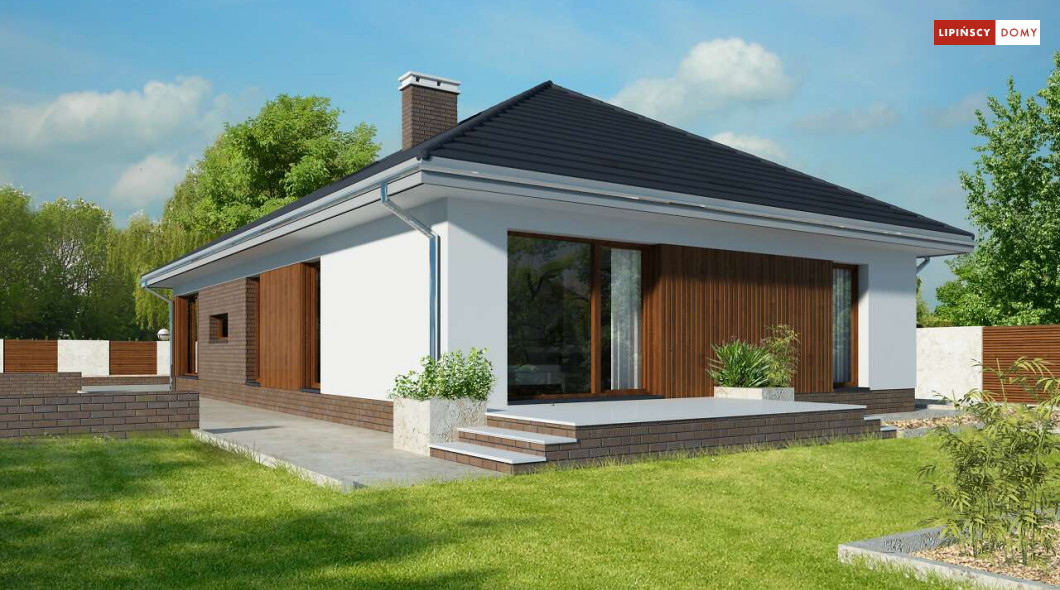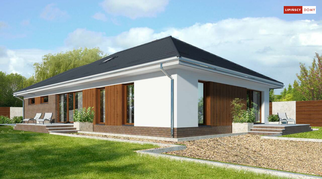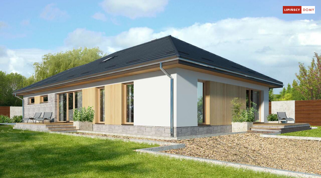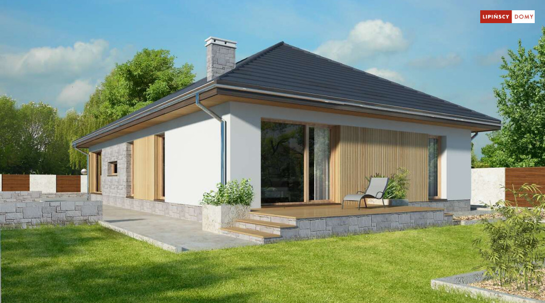 Wygodny dom parterowy, w standardzie energooszczędnym. Dzięki frontowemu usytuowaniu wjazdu do garażu, dom można postawić na działce o niewielkiej szerokości. Centrum domu stanowi duży salon, graniczący z obszerną kuchnią z wyspą, obok której – w ciekawie zaaranżowanej przestrzeni - stworzono kącik jadalniany. Część prywatna domu to trzy sypialnie, jedna z własną łazienką i garderobą. Dla wygody mieszkańców zaprojektowano osobną pralnię, gdzie umieszczony został kocioł gazowy. W projekcie przewidziano ogrzewanie kotłem na gaz. Możliwa jest zmiana ogrzewania na pompę ciepła.