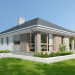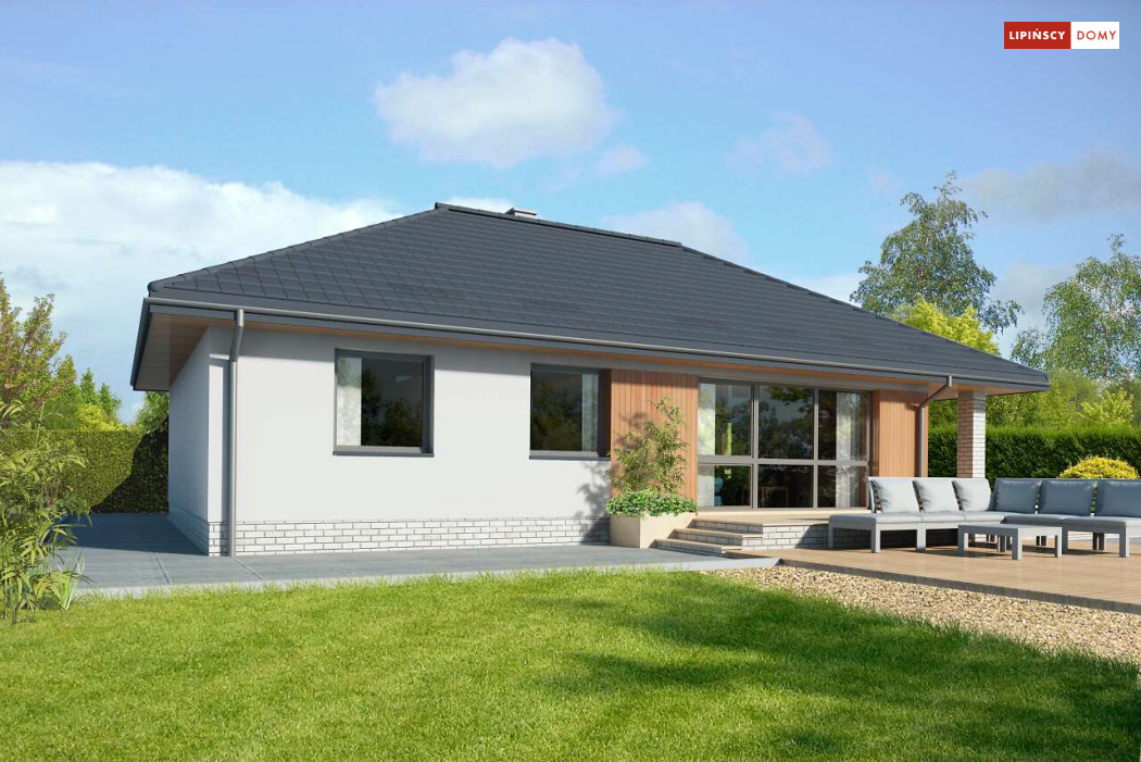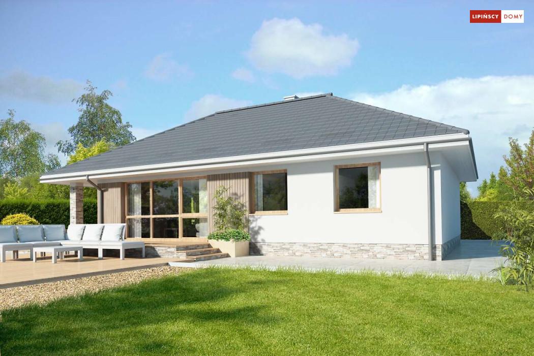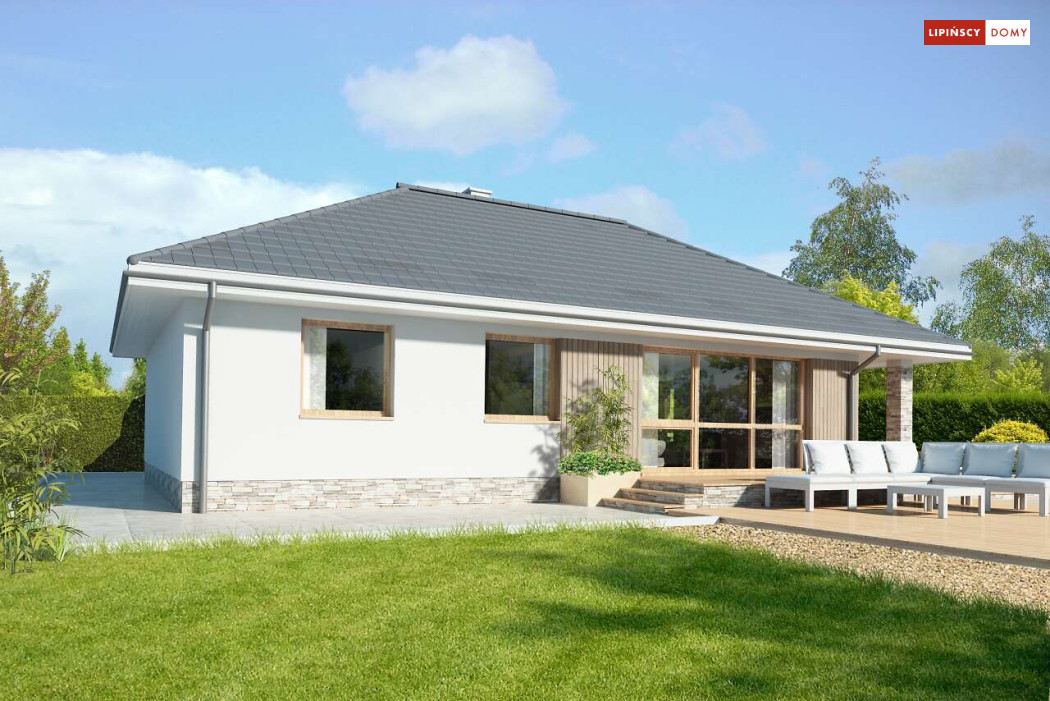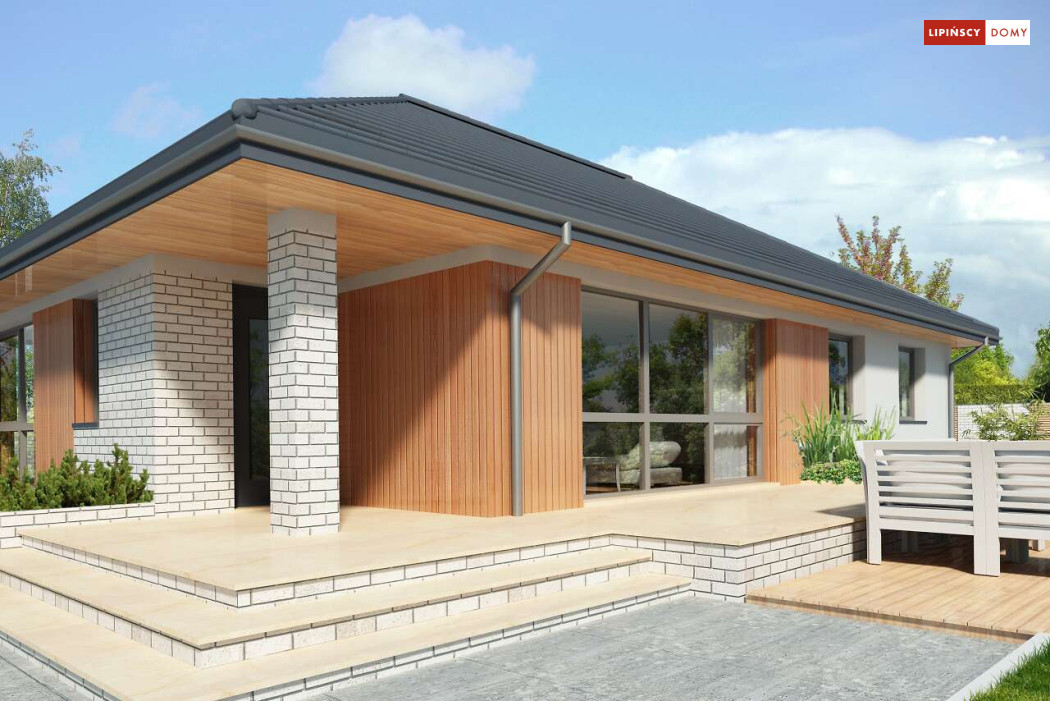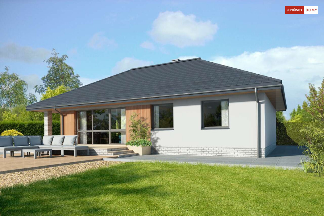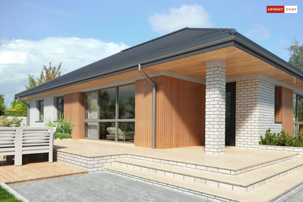 Niewielki dom parterowy z wejściem od strony szczytowej, co pozwala zlokalizować go na wąskiej działce. Do części dziennej należy duży salon, z wydzielonym miejscem do pracy. Obok salonu znajduje się kuchnia z wyspą i kącik z jadalnią. Przy kuchni jest kotłownia z gazowym kotłem grzewczym. Pomieszczenie to może również służyć jako spiżarnia lub pralnia. W części wspólnej zaplanowano również osobną toaletę. W części prywatnej znajdują się trzy sypialnie oraz wygodna, doświetlona oknem łazienka. Atutem domu jest prosta i elegancka bryła. Możliwa jest zmiana ogrzewania na pompę ciepła.