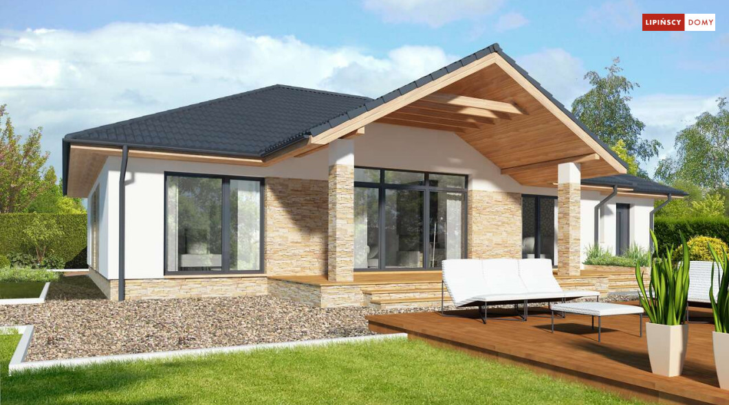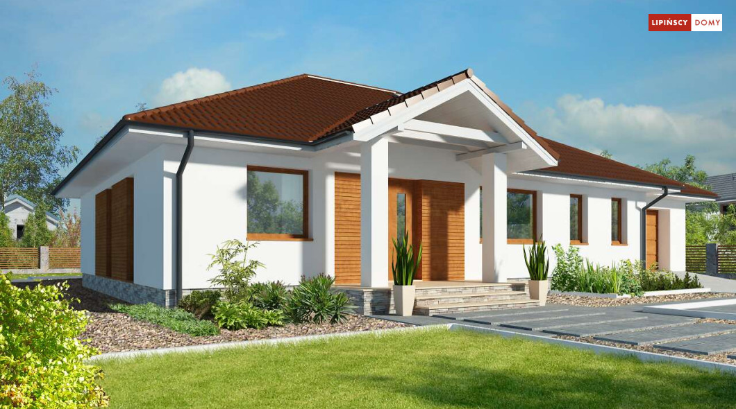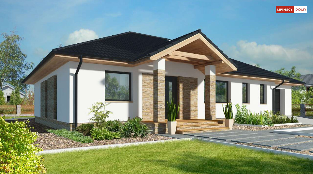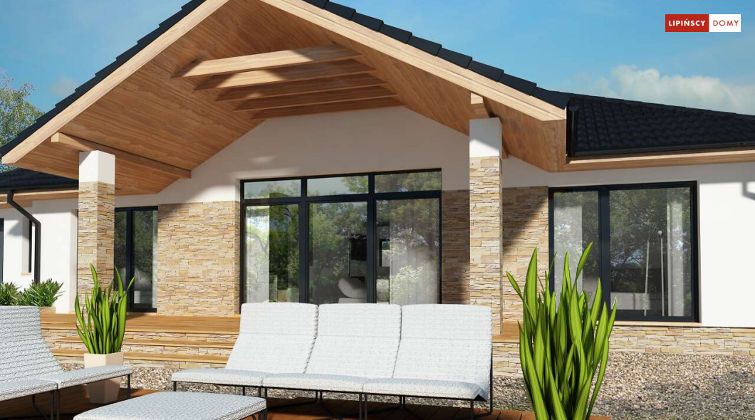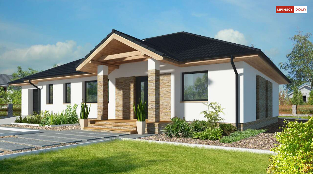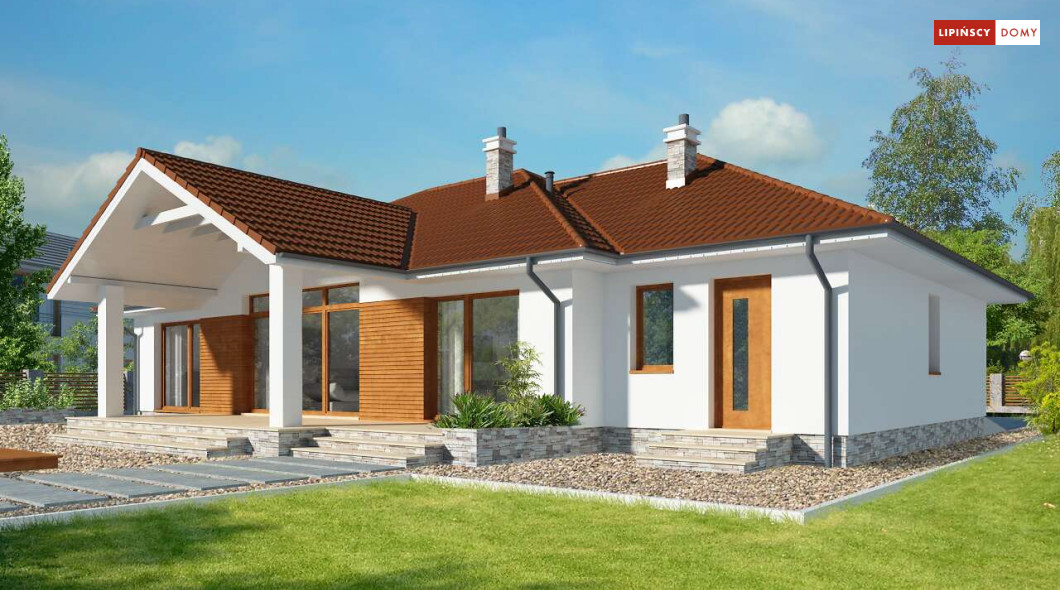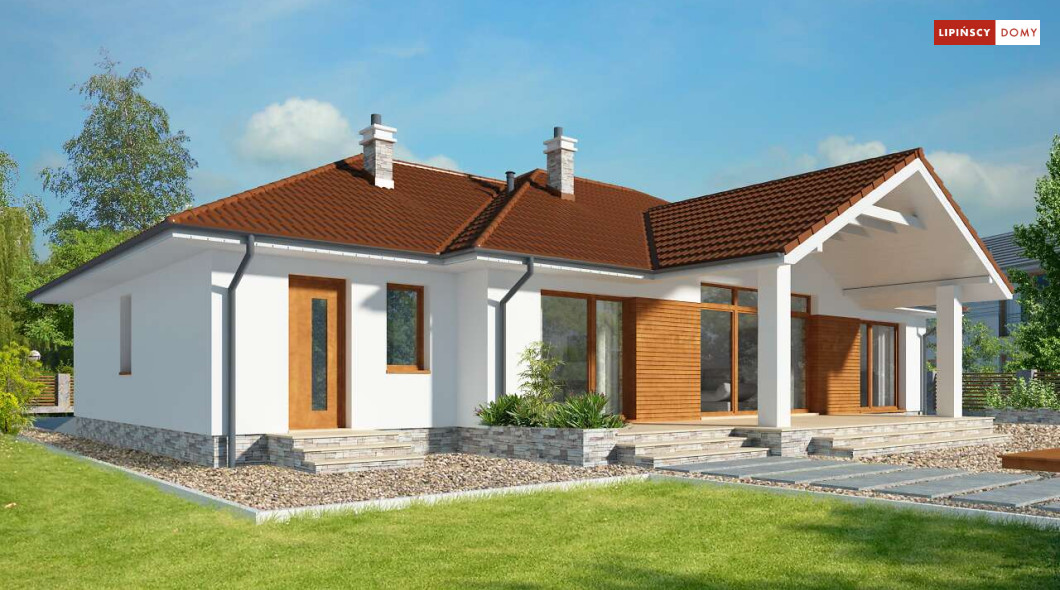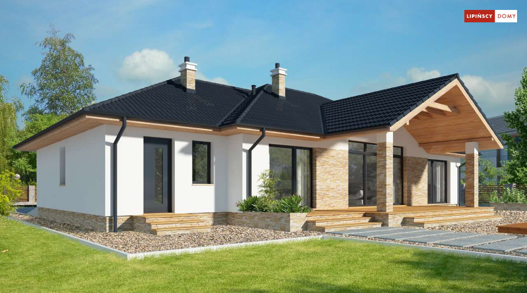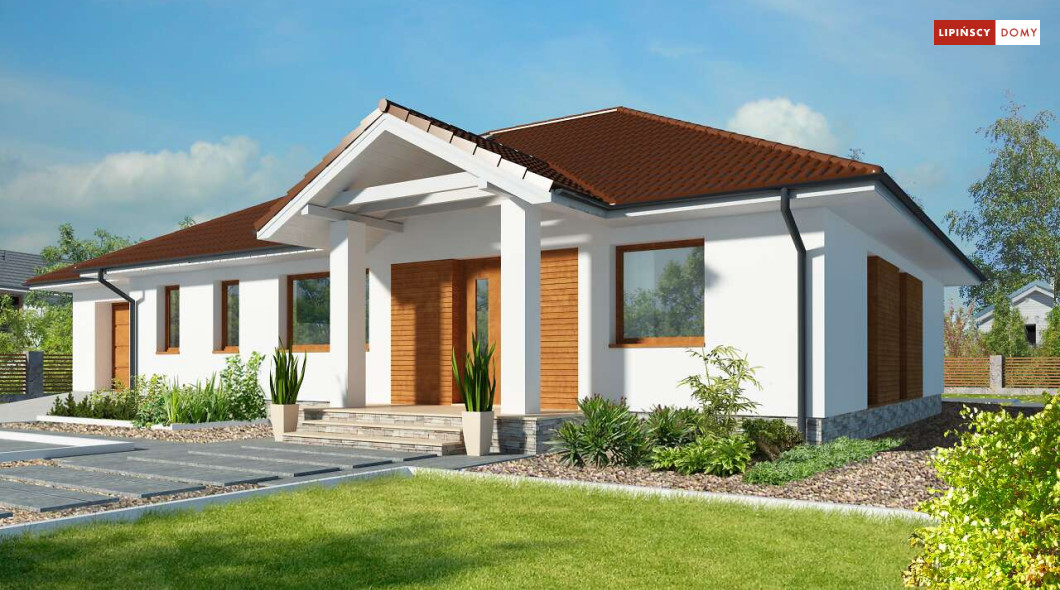 Piękny, parterowy dom energooszczędny, w którym główny nacisk przy projektowaniu położono na wygodę mieszkańców – wnętrze rozplanowane więc zostało z najwyższą starannością i dbałością o szczegóły. Sercem domu jest piękny salon z kominkiem, z którego można wyjść na zadaszony taras. W jednym ciągu komunikacyjnym z salonem zaplanowano jadalnię, a obok niej kuchnię. Można z niej przez pomieszczenie gospodarcze przejść do garażu. Za garażem znajduje się kotłownia, z niezależnym wejściem. Jedna ze stref prywatnych to duża sypialnia z własną łazienką i garderobą – idealne miejsce dla rodziców. Druga strefa to królestwo dzieci – dwie sypialnie i duża łazienka. W bryłę domu wpisany został garaż na 1 auto, który stanowi harmonijną całość z całym budynkiem. W projekcie przewidziano ogrzewanie kotłem na gaz. Możliwa jest zmiana ogrzewania na pompę ciepła.