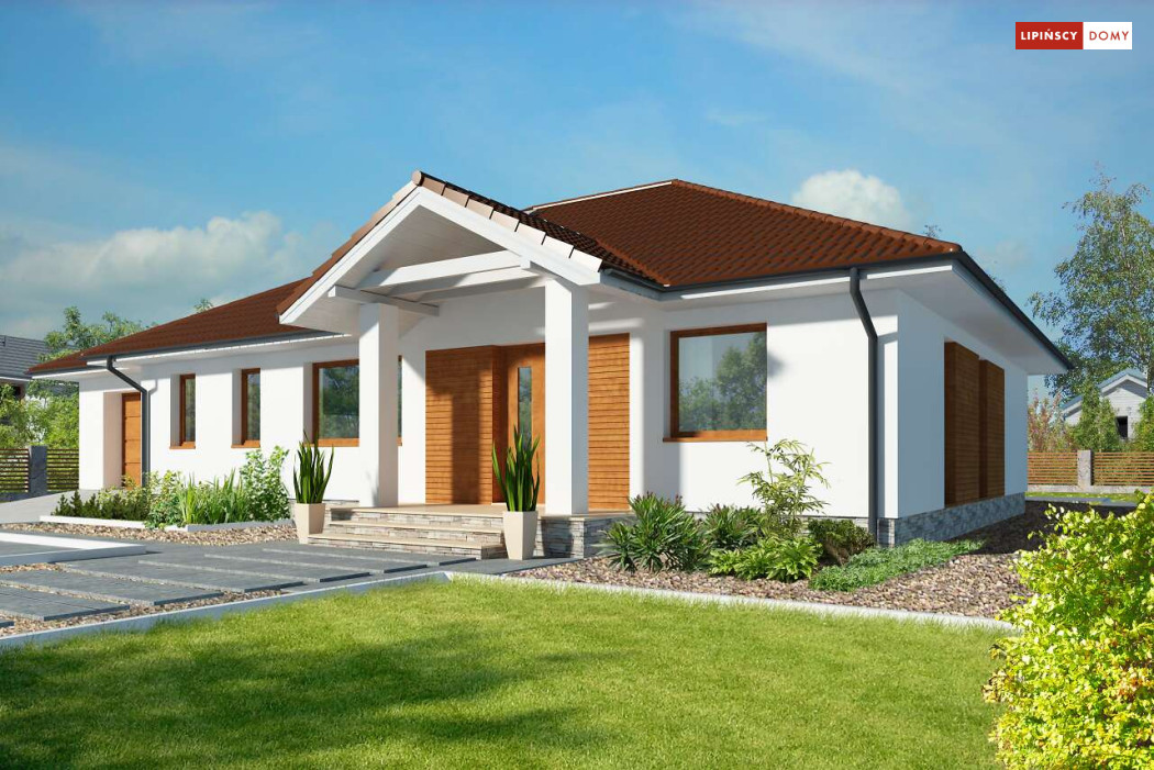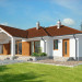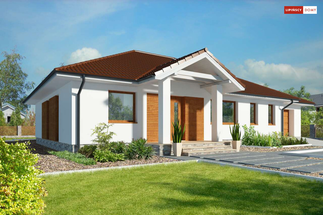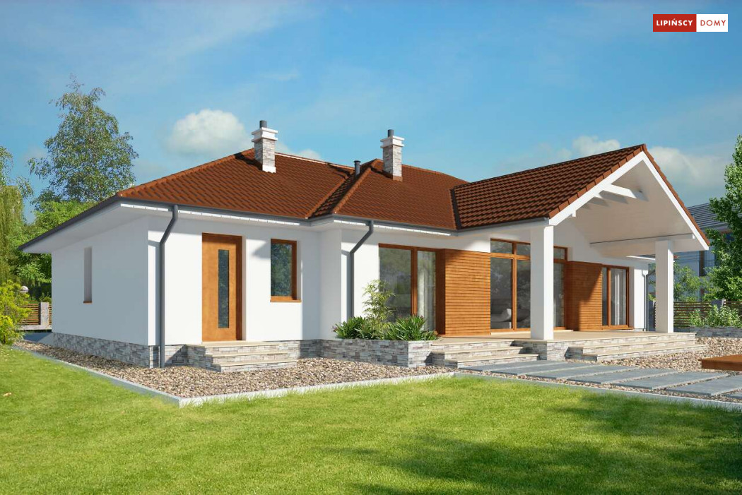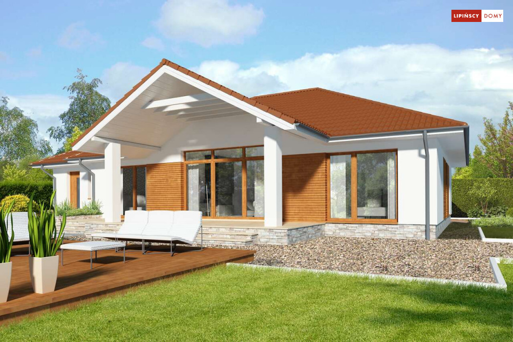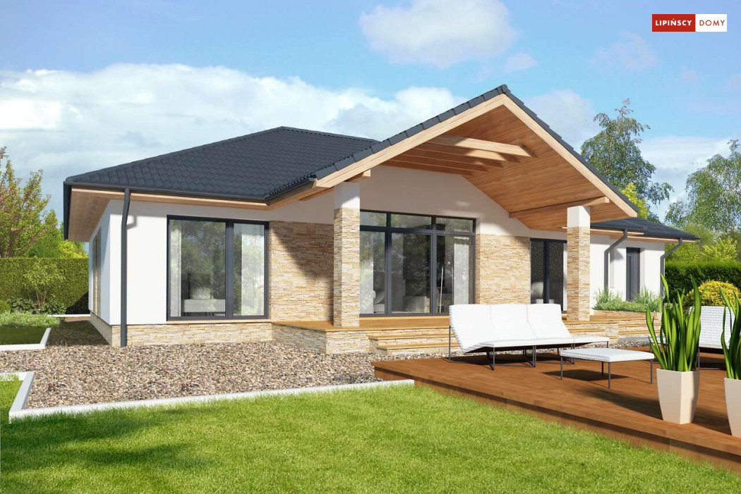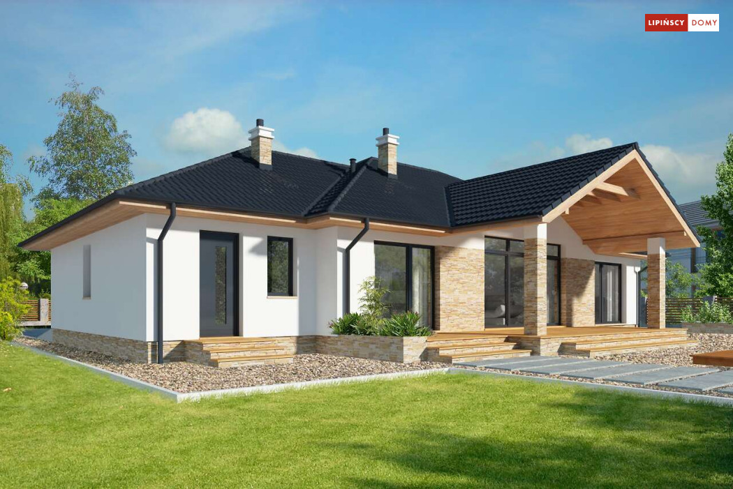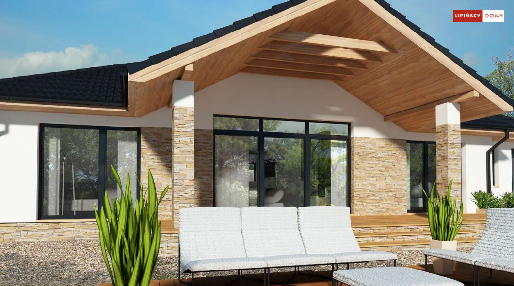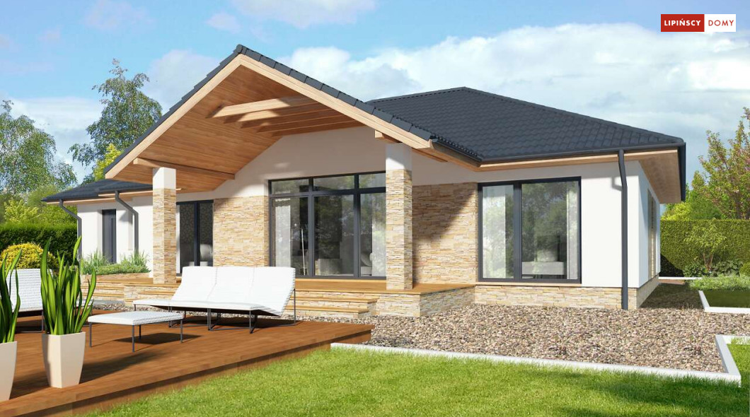 Piękny, parterowy dom energooszczędny, w którym główny nacisk przy projektowaniu położono na wygodę mieszkańców – wnętrze rozplanowane więc zostało z najwyższą starannością i dbałością o szczegóły. Sercem domu jest piękny salon z kominkiem, z którego można wyjść na zadaszony taras. W jednym ciągu komunikacyjnym z salonem zaplanowano jadalnię, a obok niej kuchnię. Można z niej przez pomieszczenie gospodarcze przejść do garażu. Za garażem znajduje się kotłownia, z niezależnym wejściem. Jedna ze stref prywatnych to duża sypialnia z własną łazienką i garderobą – idealne miejsce dla rodziców. Druga strefa to królestwo dzieci – dwie sypialnie i duża łazienka. W bryłę domu wpisany został garaż na 1 auto, który stanowi harmonijną całość z całym budynkiem. W projekcie przewidziano ogrzewanie kotłem na gaz. Możliwa jest zmiana ogrzewania na pompę ciepła.